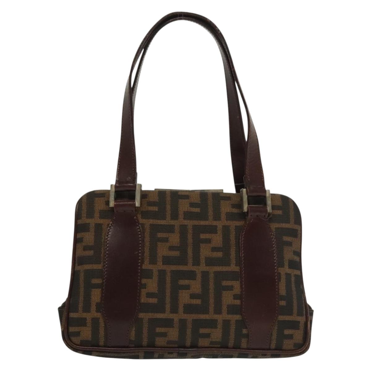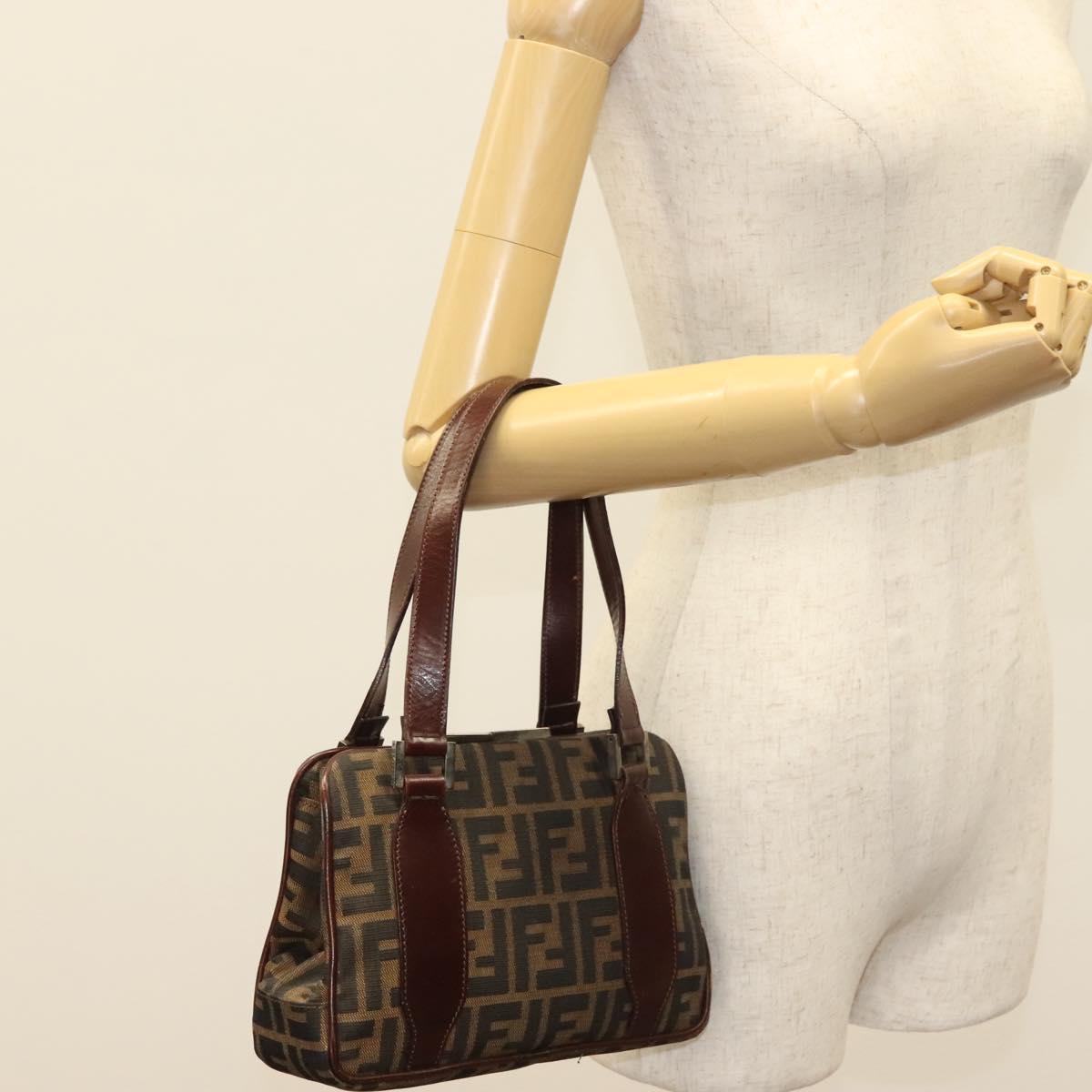 FENDI Zucca Canvas Hand Bag Black Brown Auth 139279