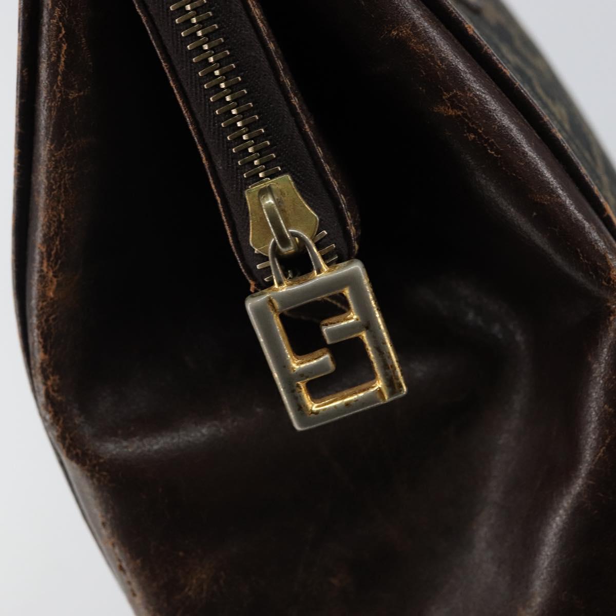 FENDI Zucca Canvas Hand Bag Black Brown Auth 144516