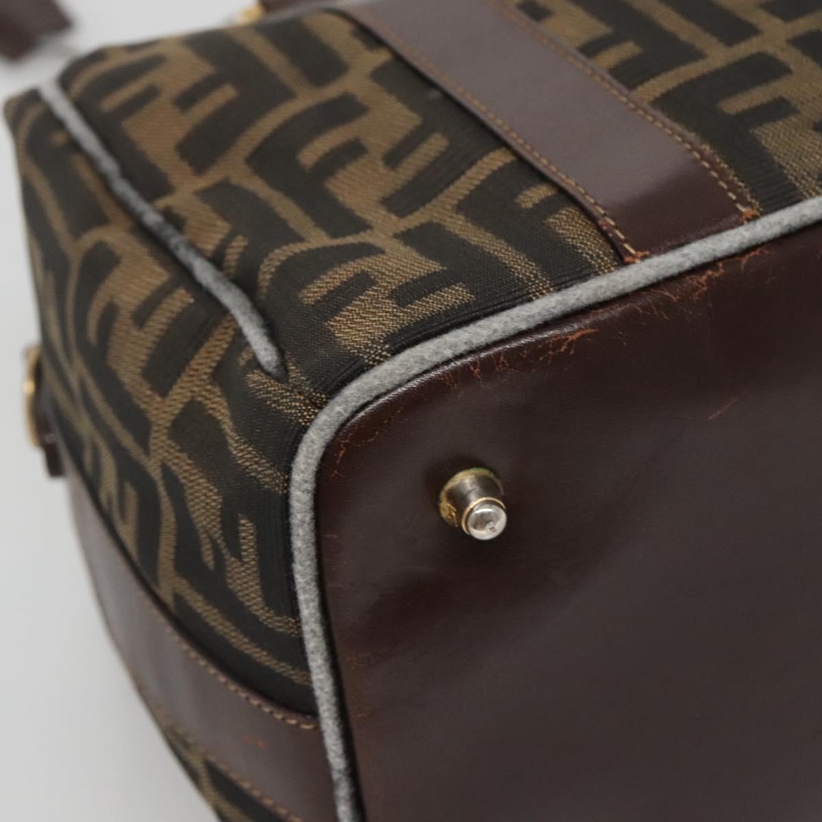 FENDI Zucca Canvas Hand Bag Black Brown gold Auth 140964