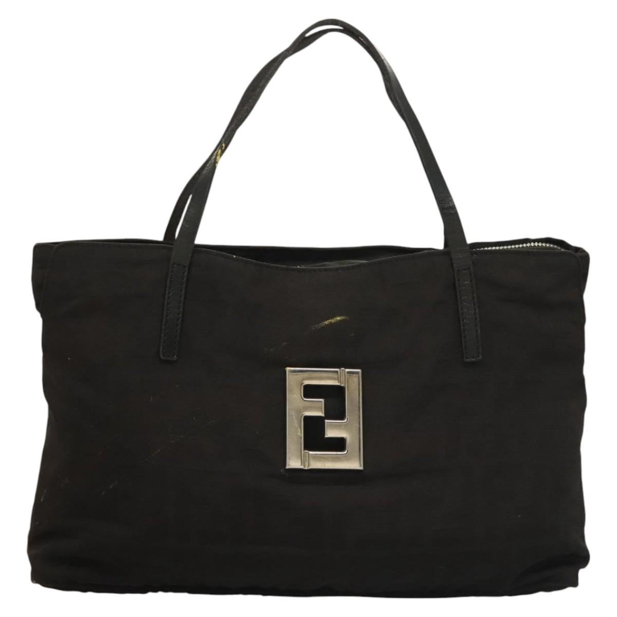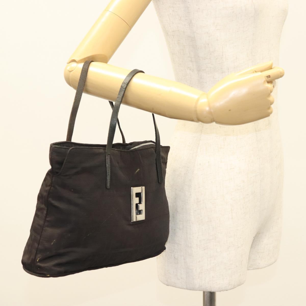 FENDI Zucca Canvas Hand Bag Black Silver Auth hk2785