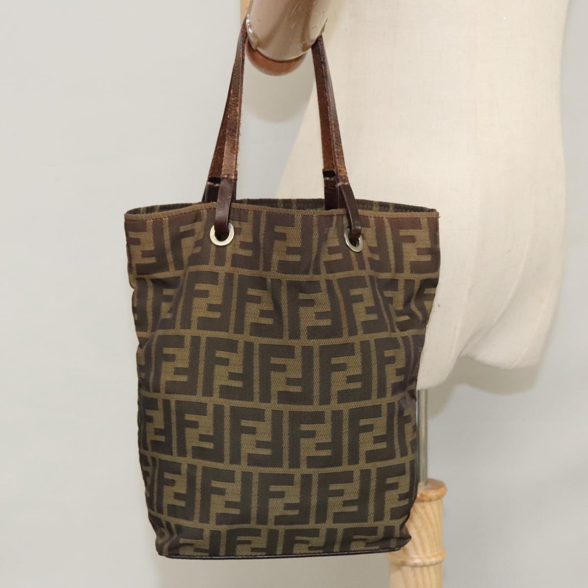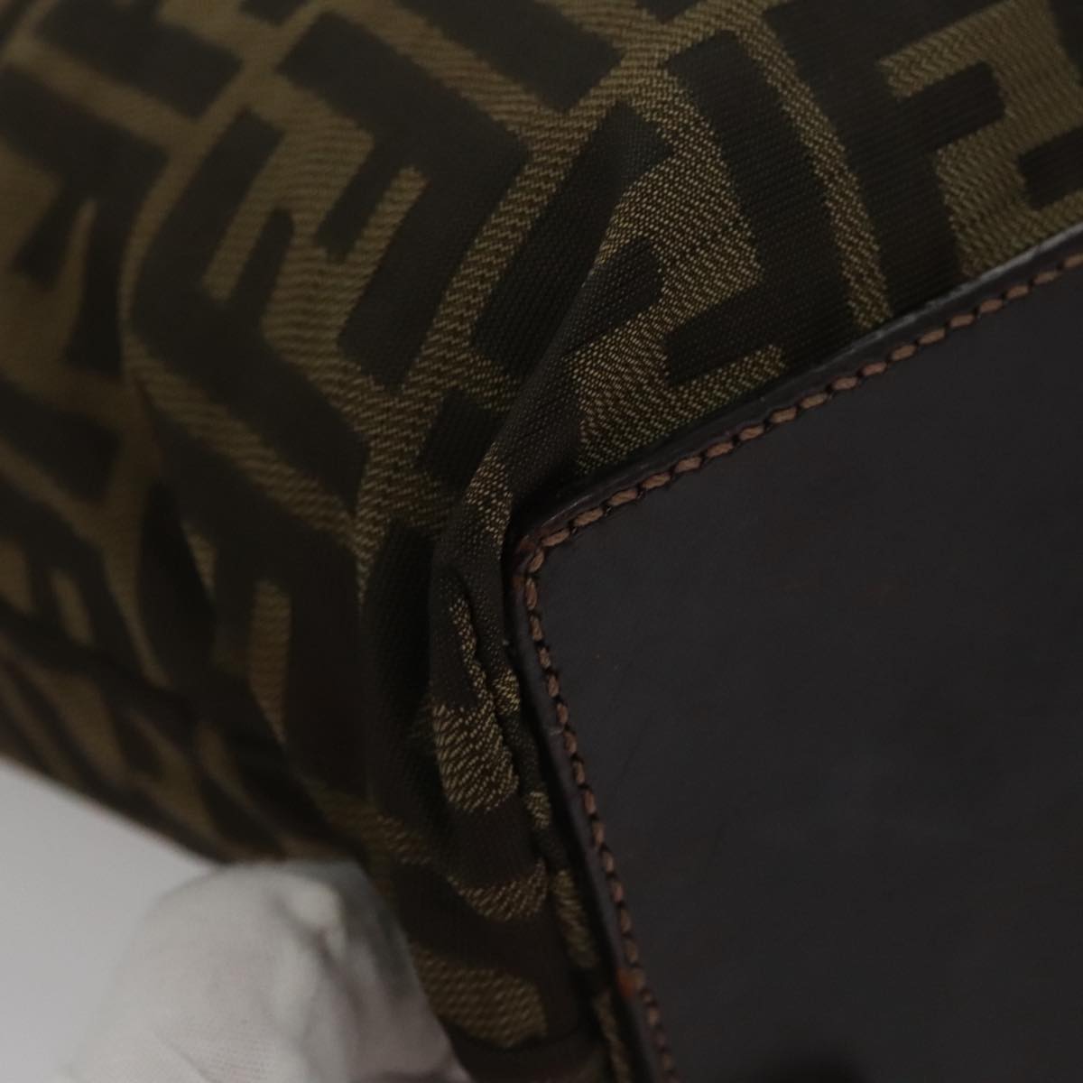 FENDI Zucca Canvas Hand Bag Brown Black Auth yk16907