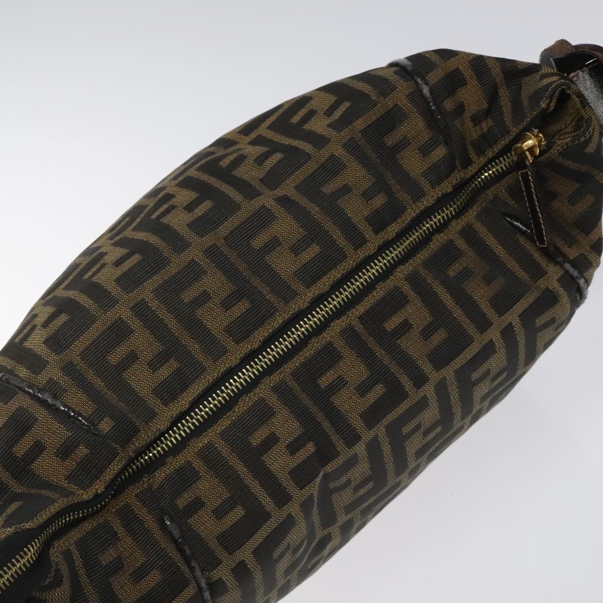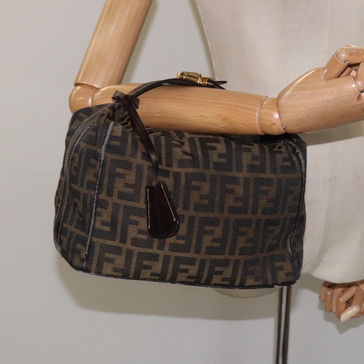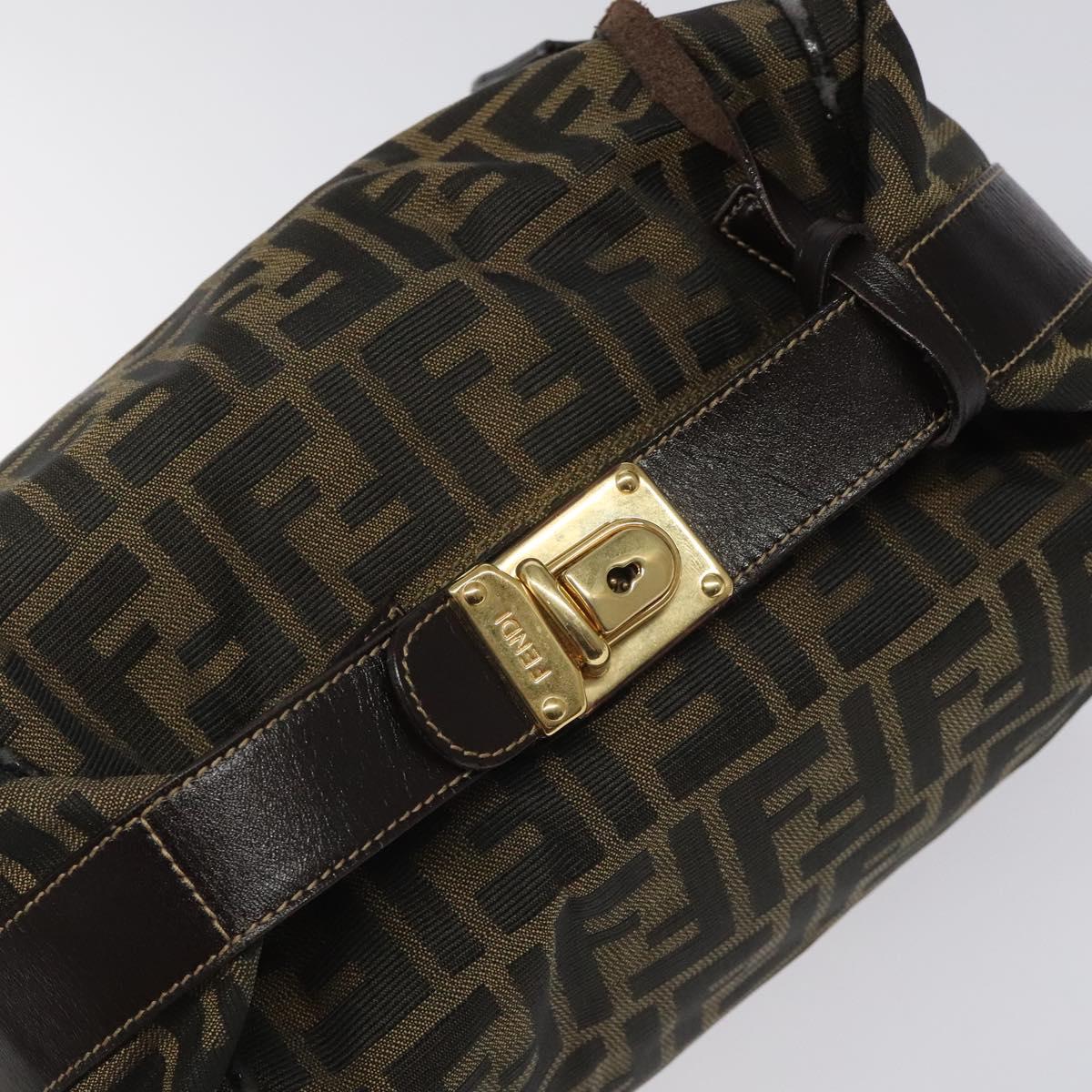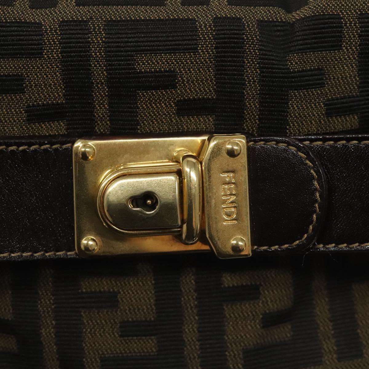FENDI Zucca Canvas Hand Bag Brown Black gold Auth 114781