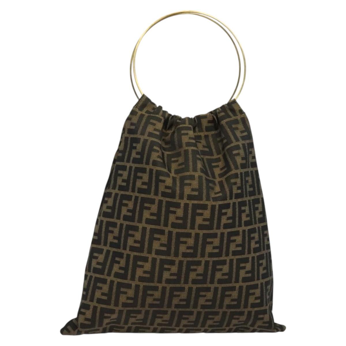 FENDI Zucca Canvas Hand Bag Brown Black gold Auth 124687