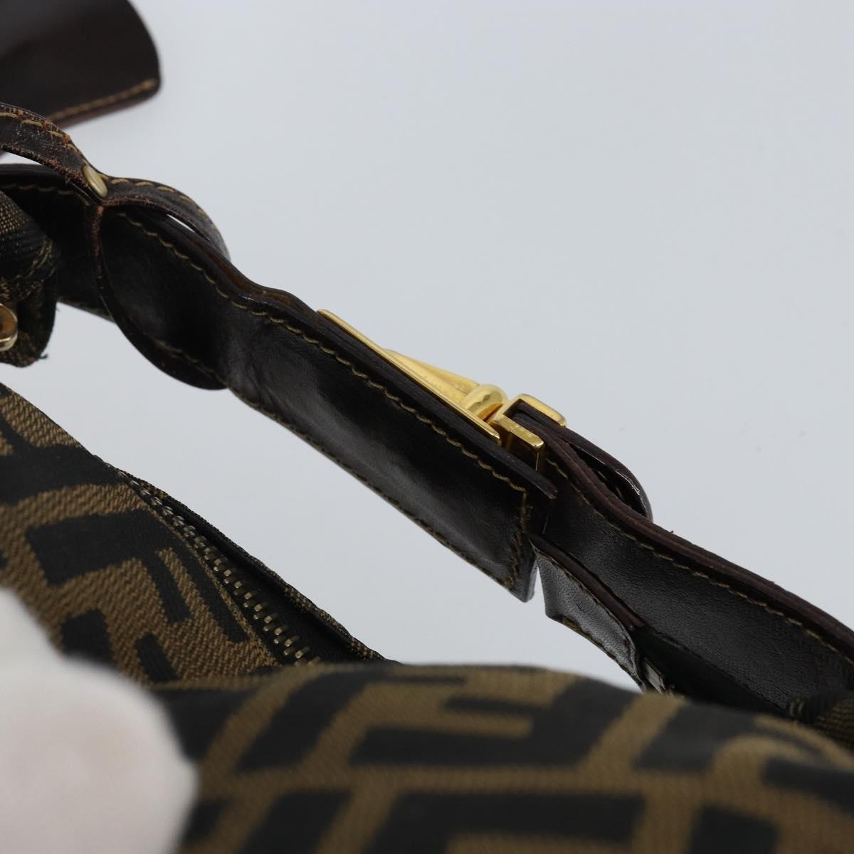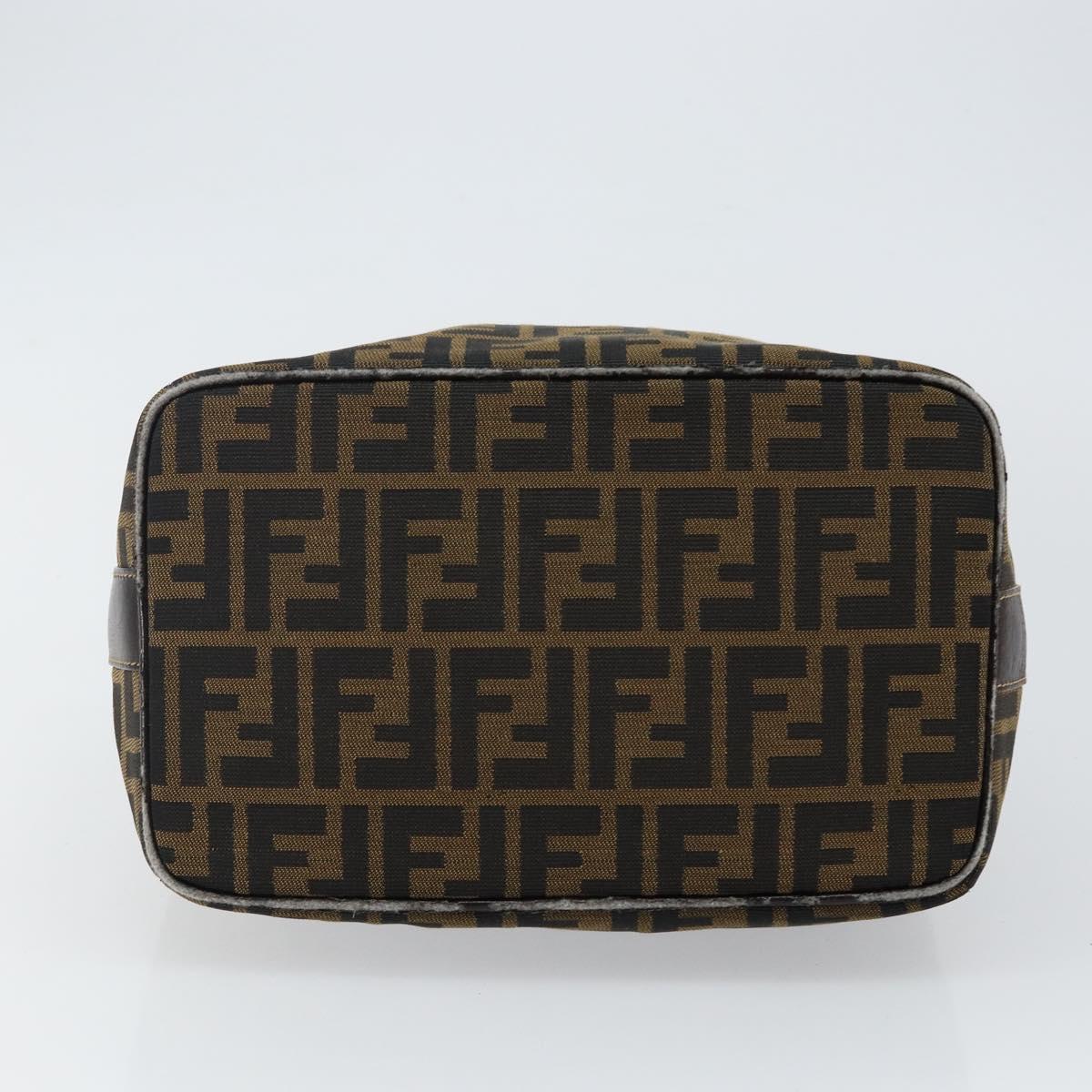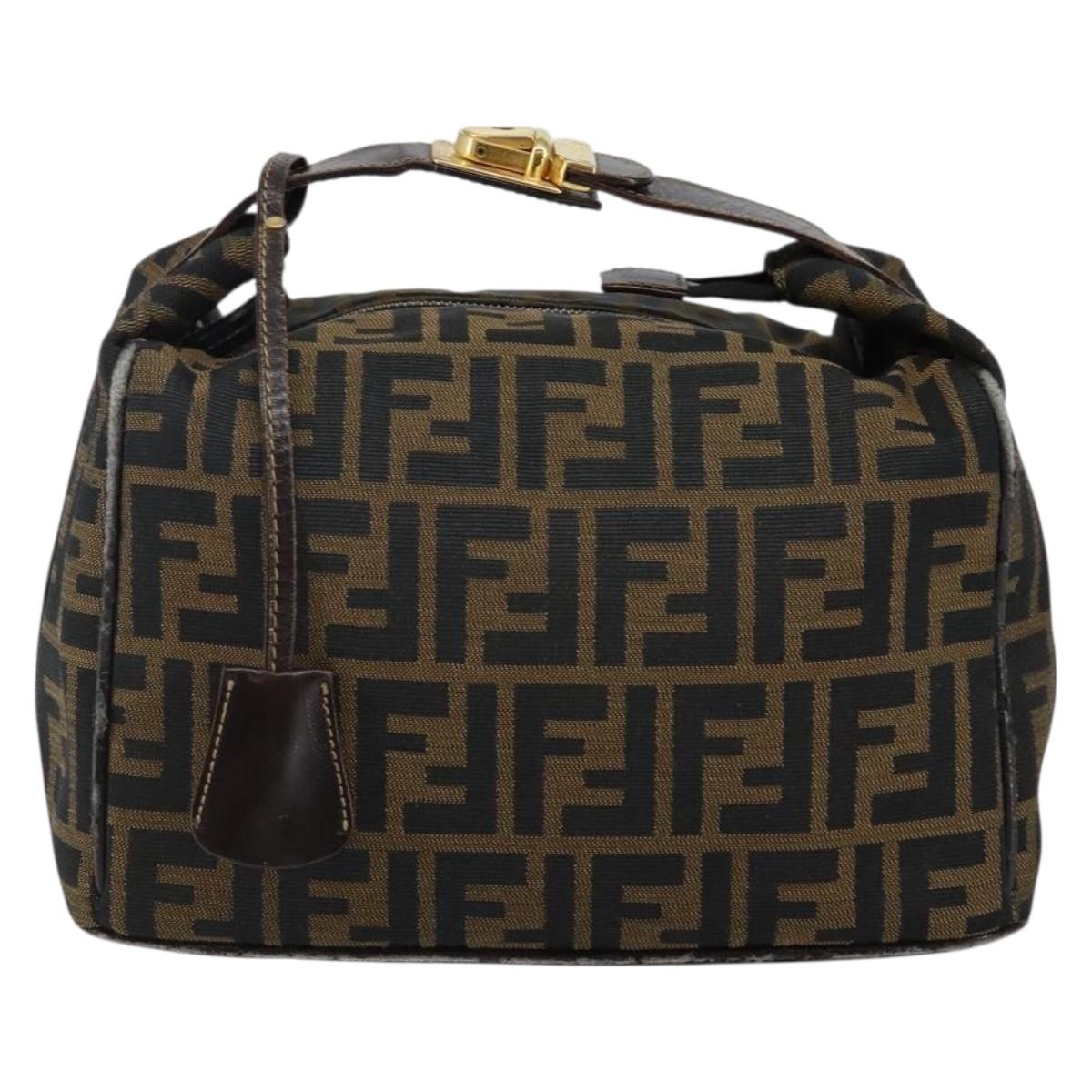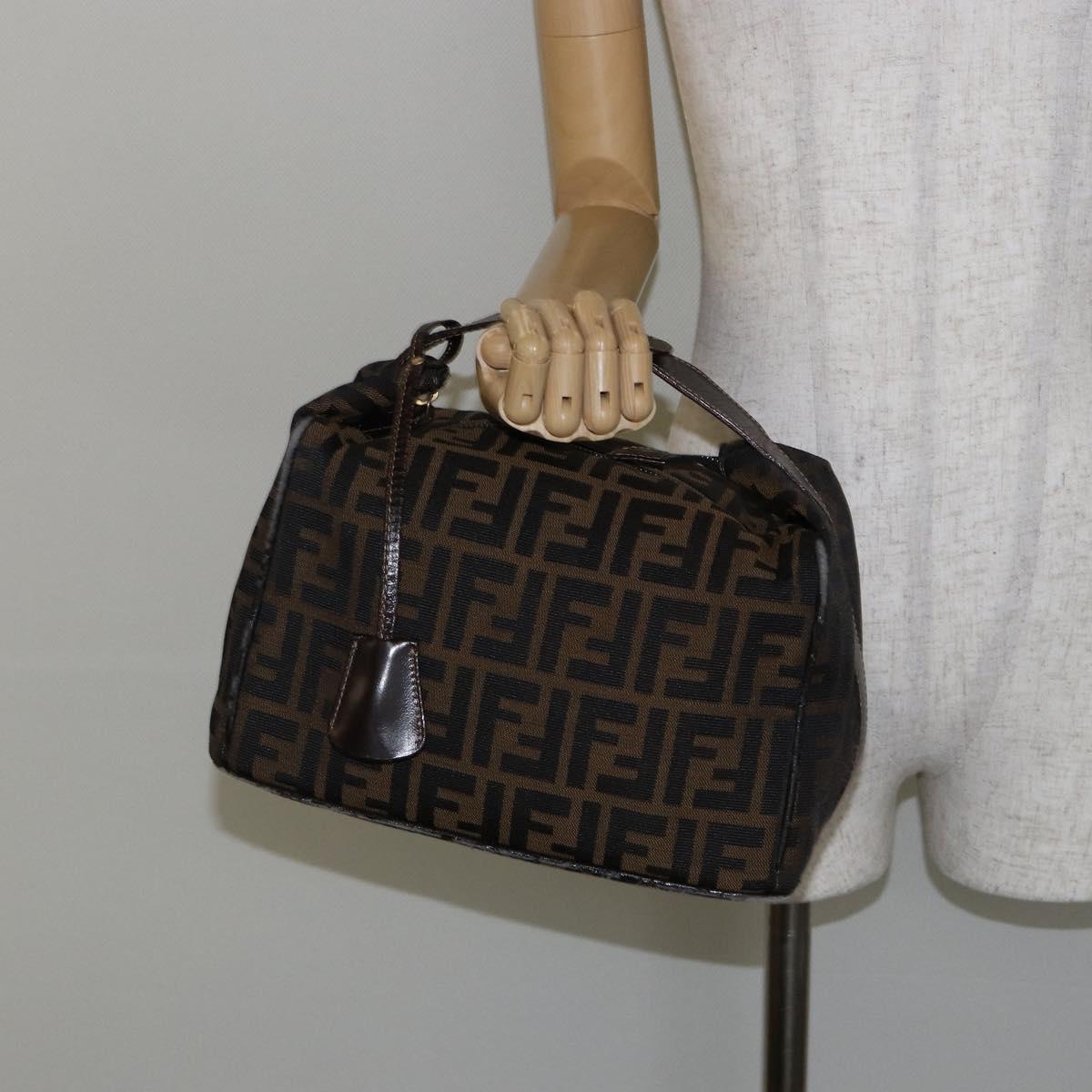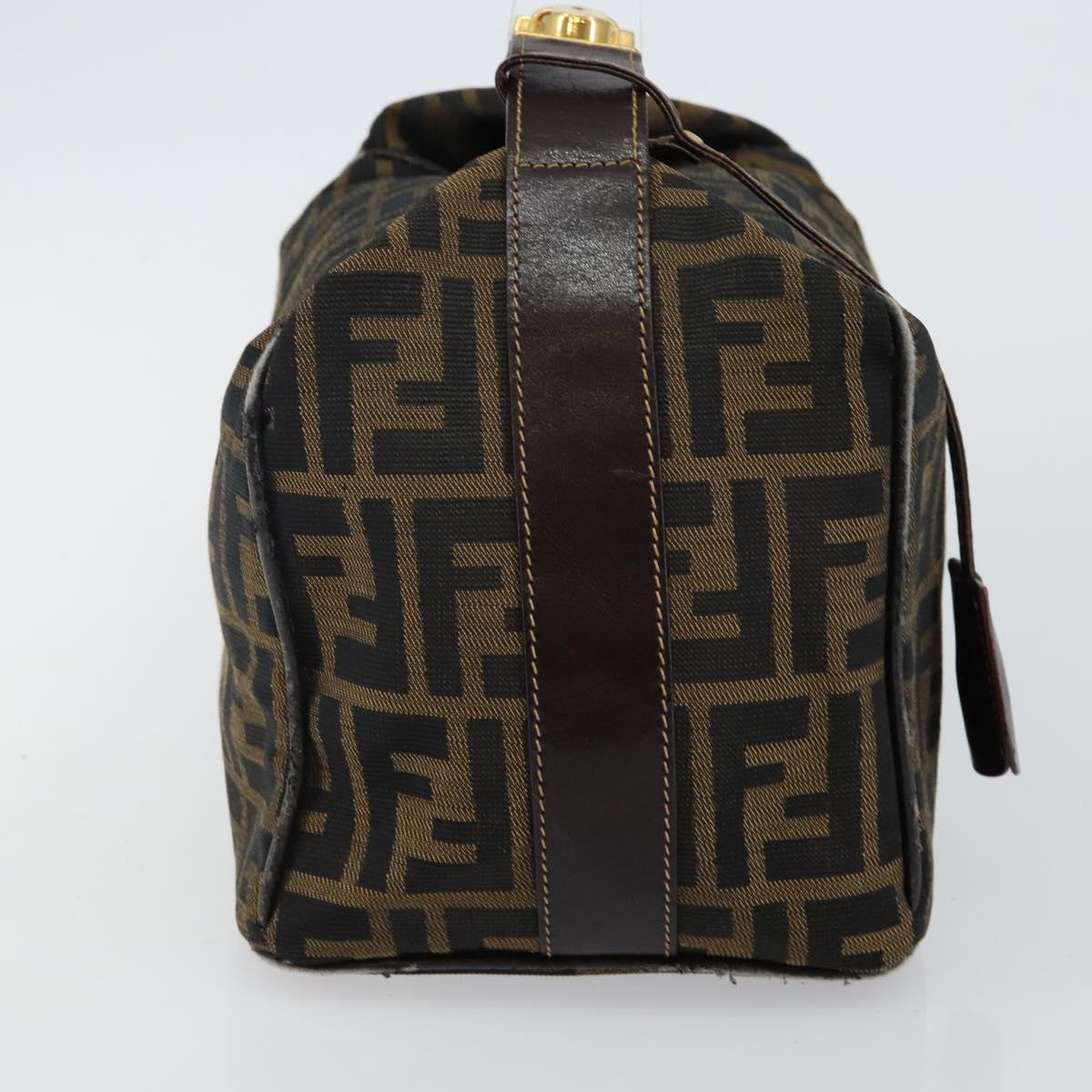 FENDI Zucca Canvas Hand Bag Brown Black gold Auth 143970