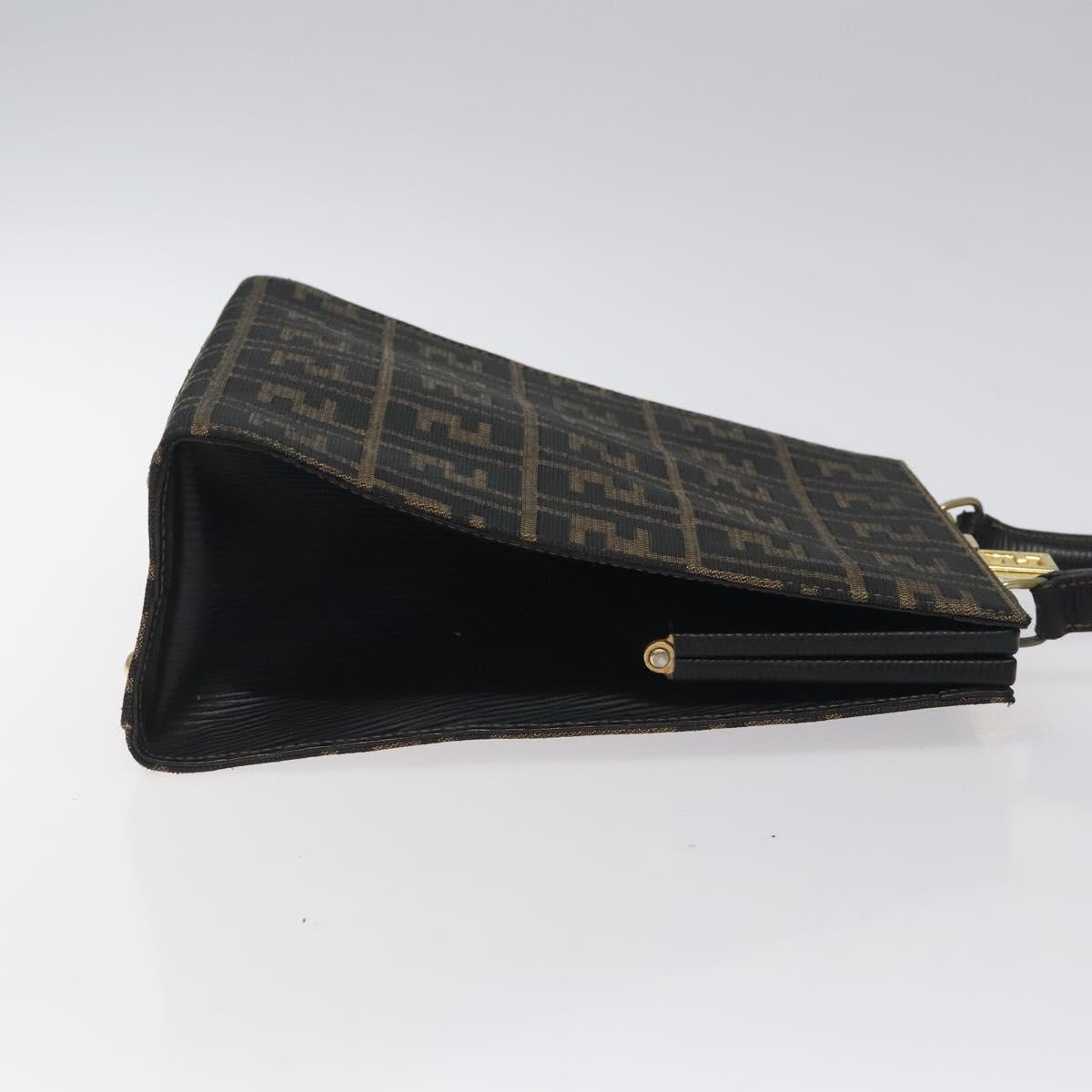 FENDI Zucca Canvas Hand Bag Brown Black gold Auth BD1571V