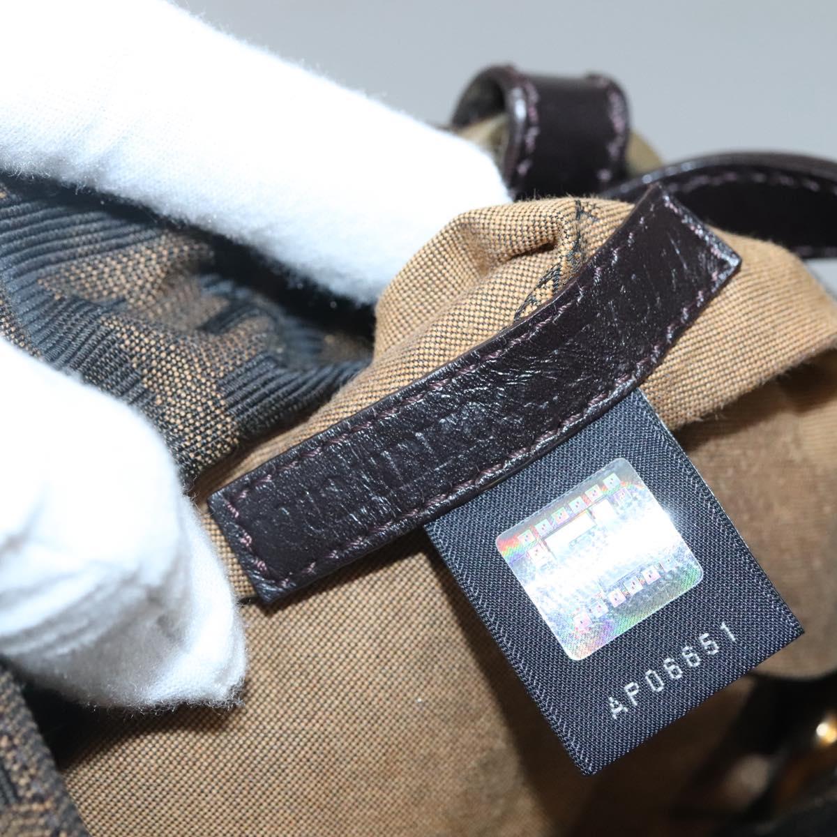 FENDI Zucca Canvas Hand Bag Brown Black gold Auth PP882