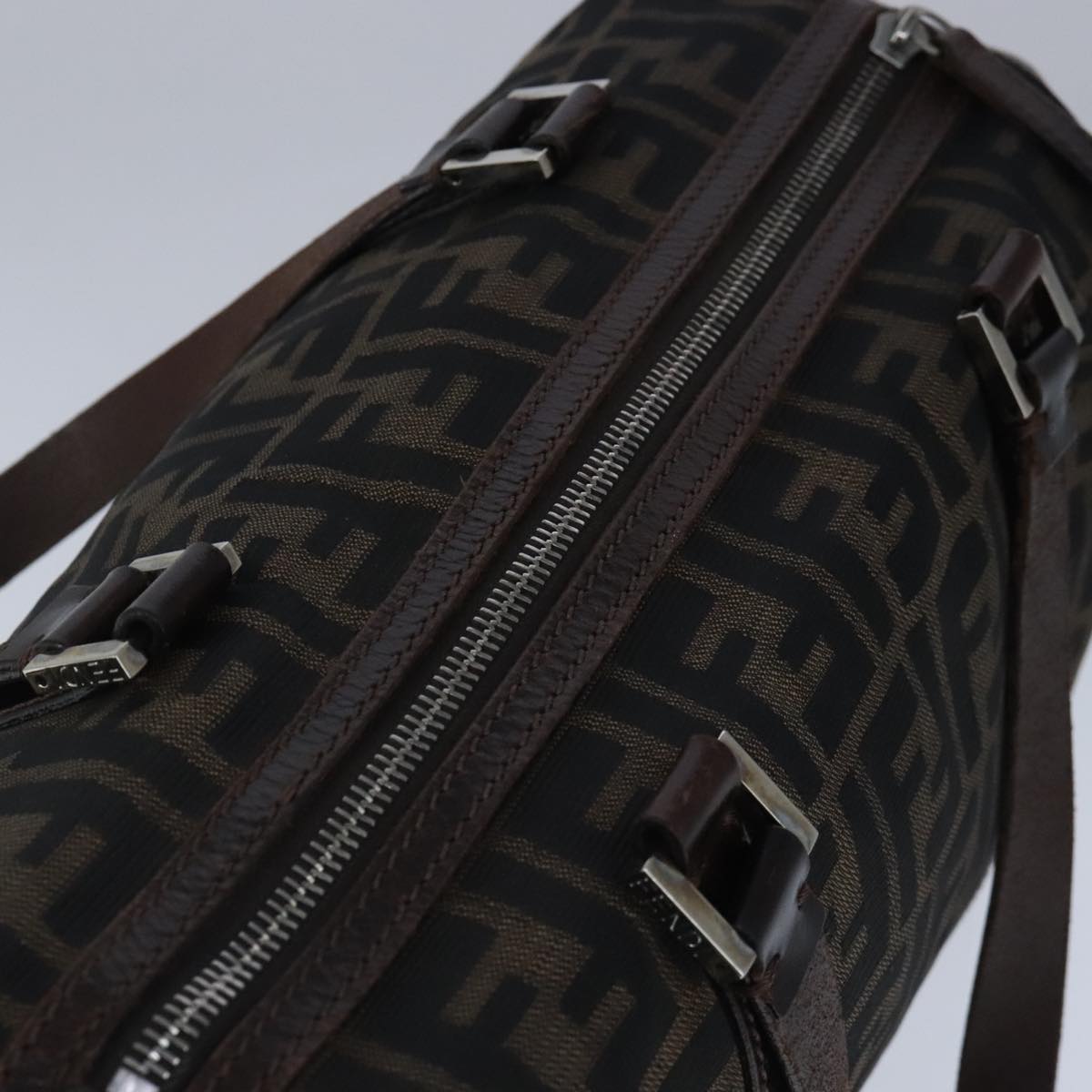 FENDI Zucca Canvas Hand Bag Brown Black Silver Auth ep6691