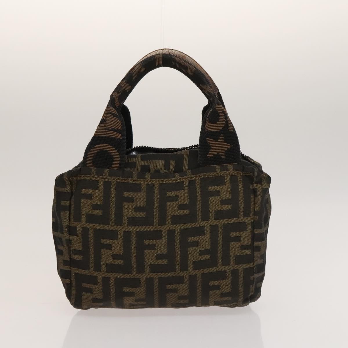FENDI Zucca Canvas Hand Bag Leather 2Set Light Blue Black Brown Auth 132508