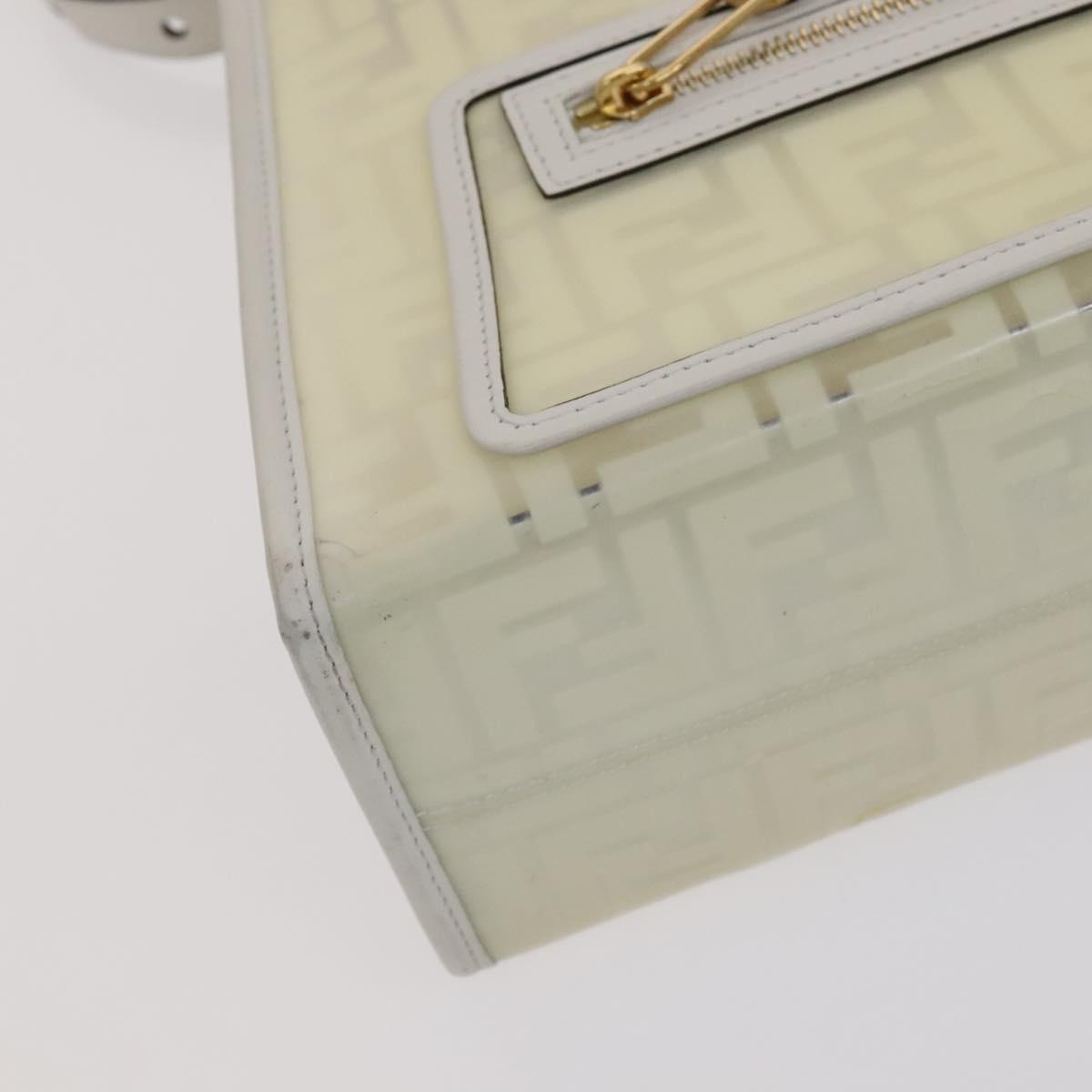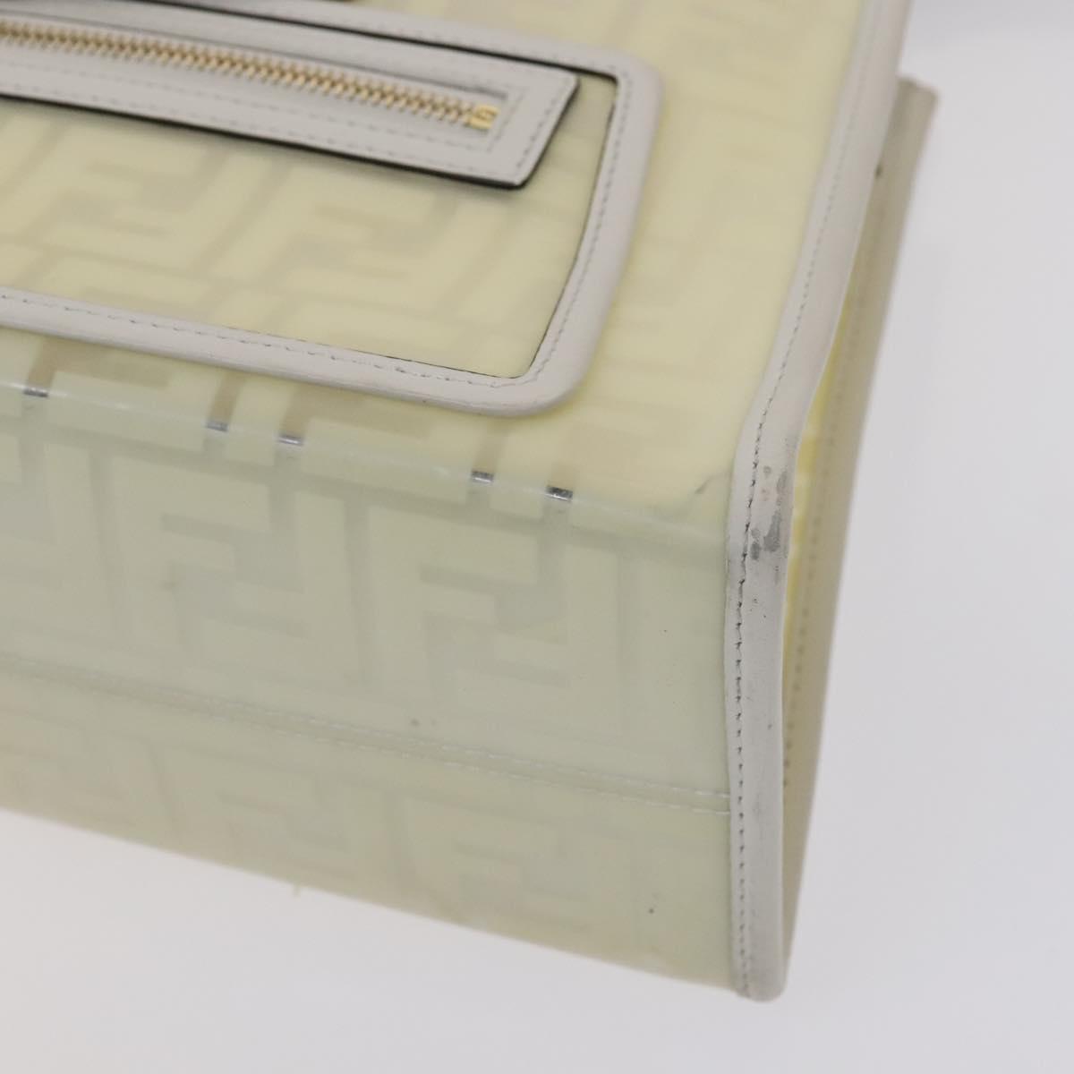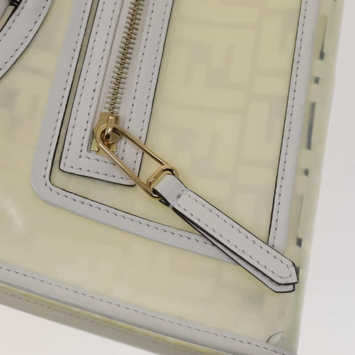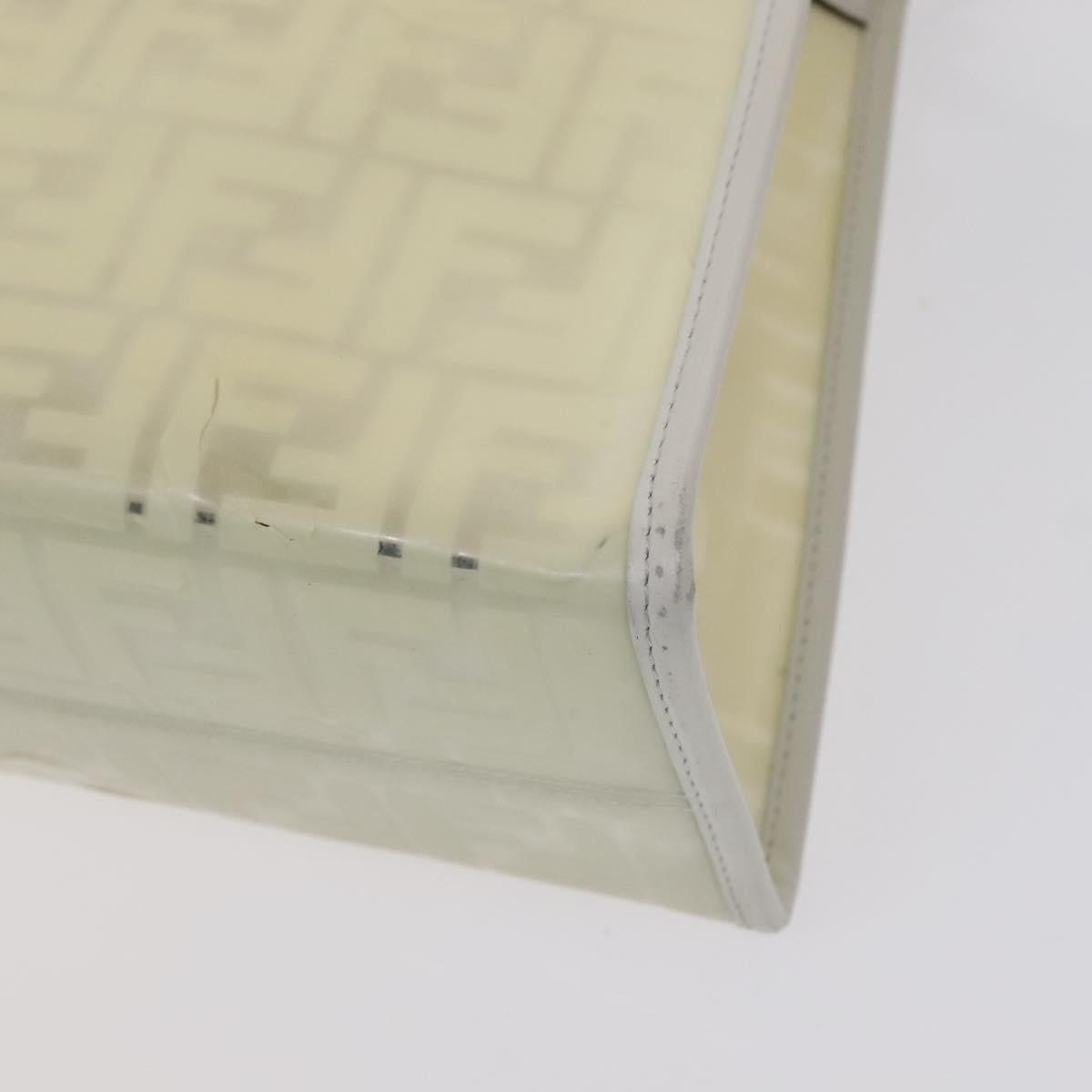 FENDI Zucca Canvas Hand Bag Vinyl Leather 2way Cream White gold Auth 112339