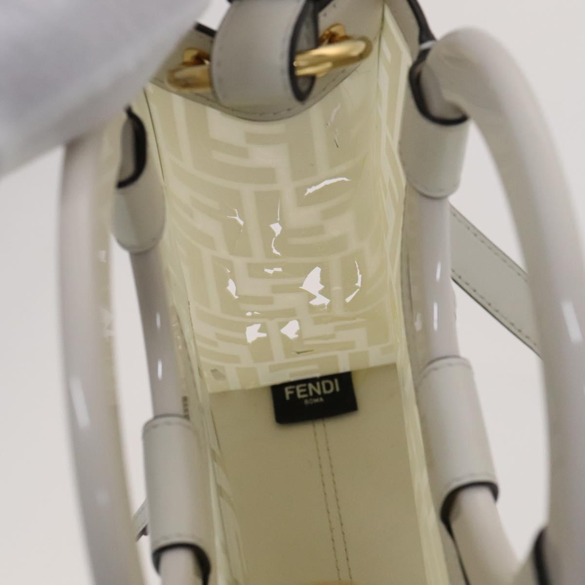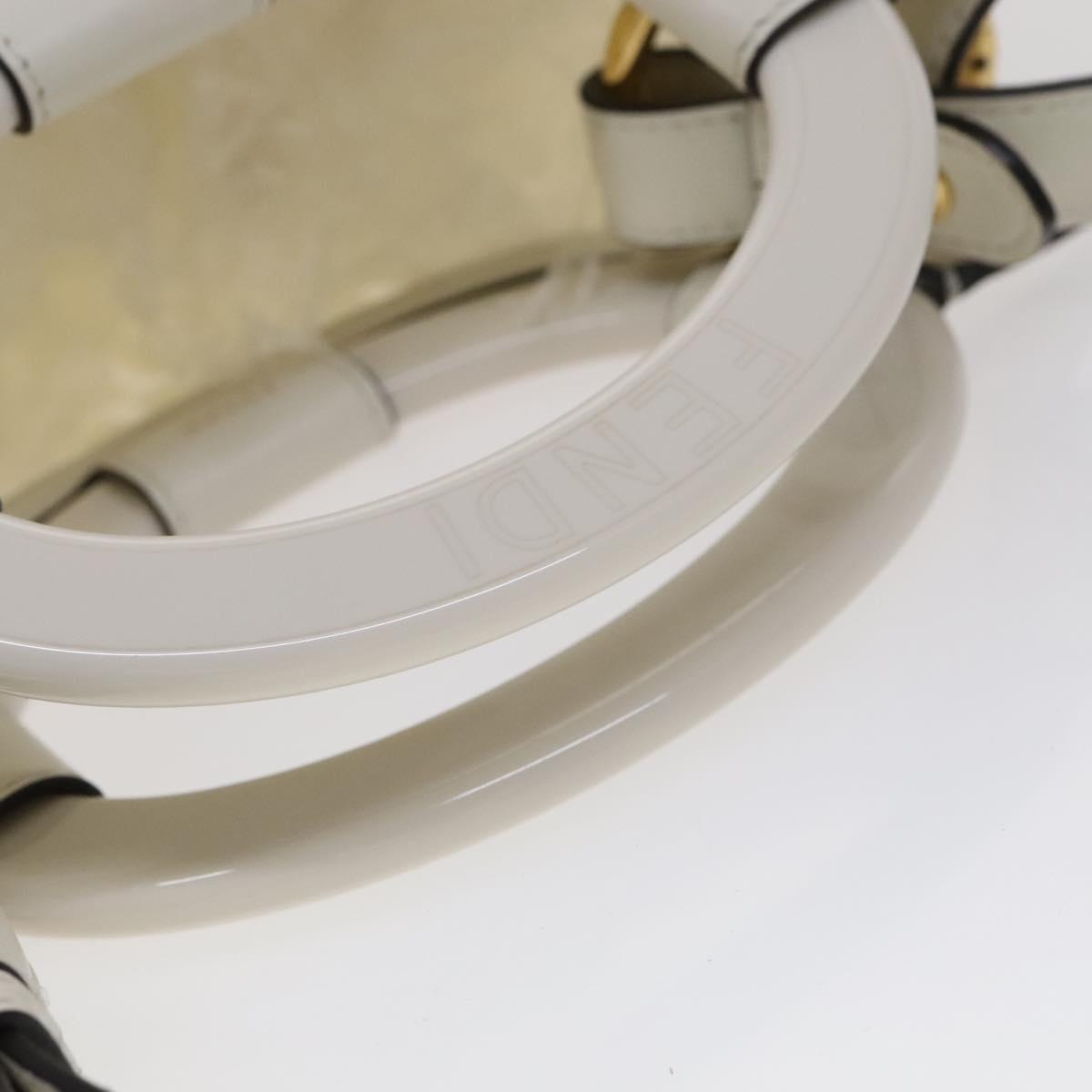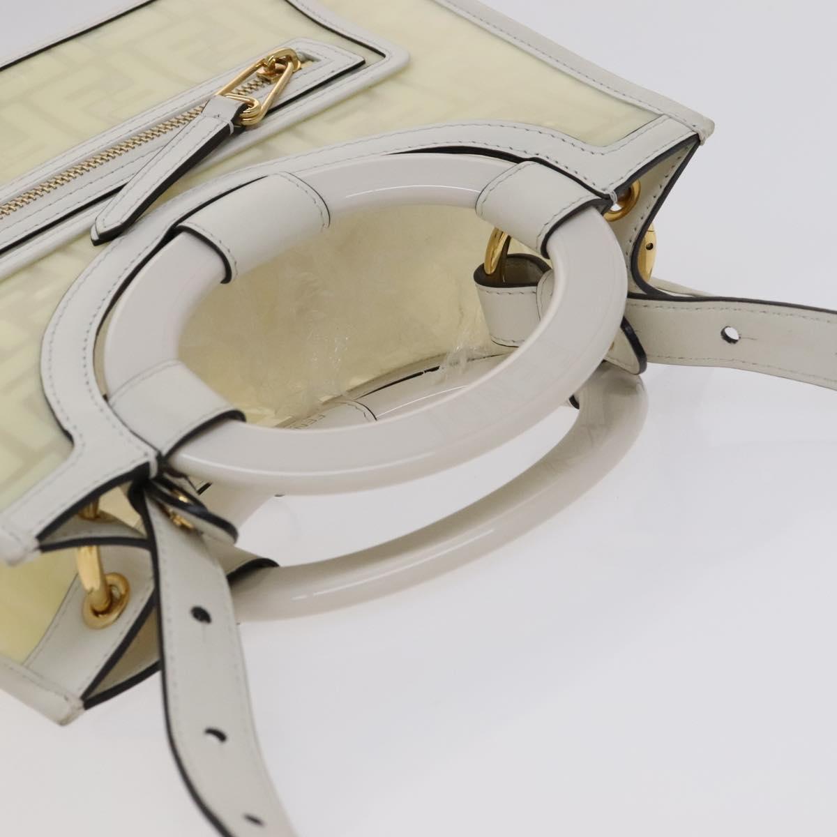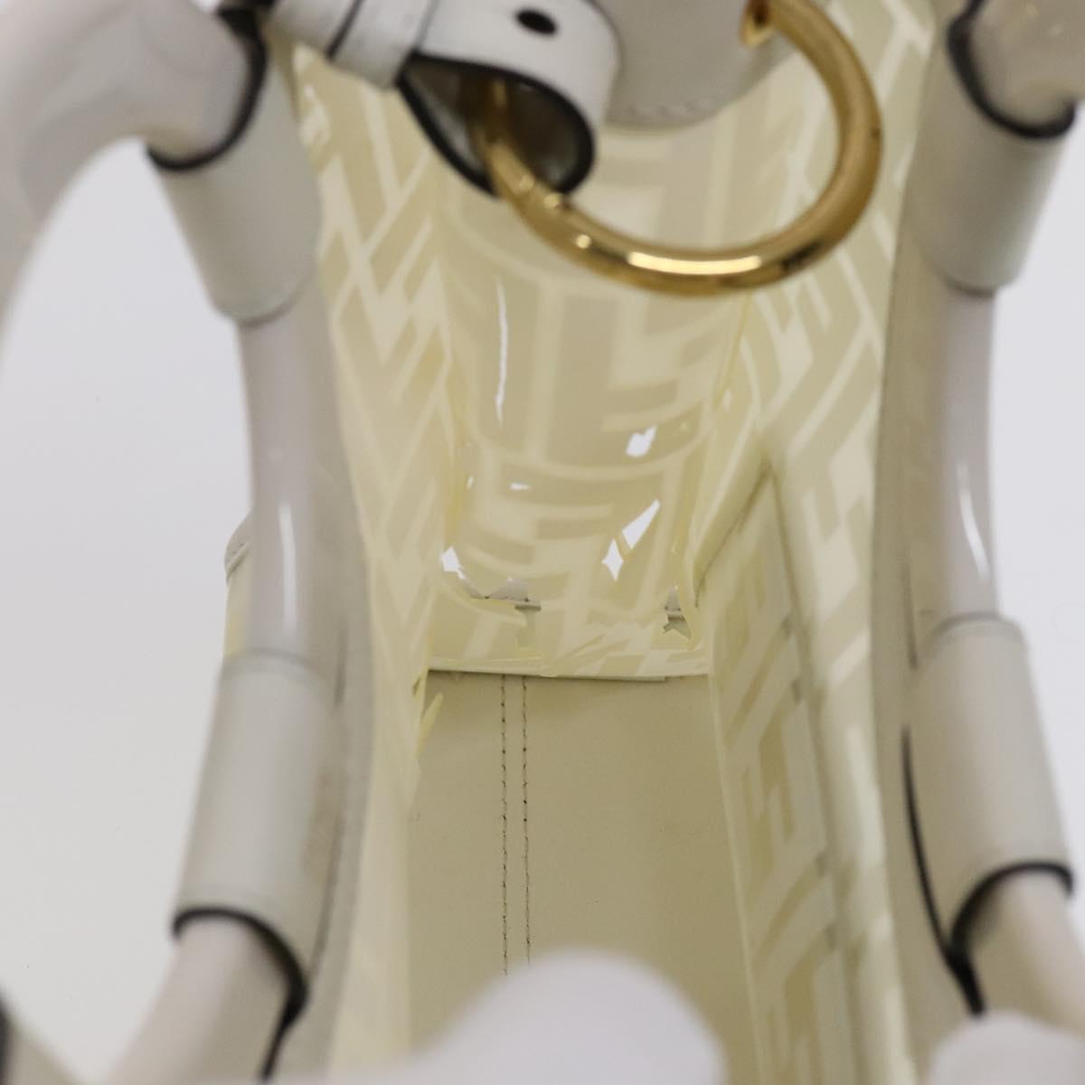 FENDI Zucca Canvas Hand Bag Vinyl Leather 2way Cream White gold Auth 112339
