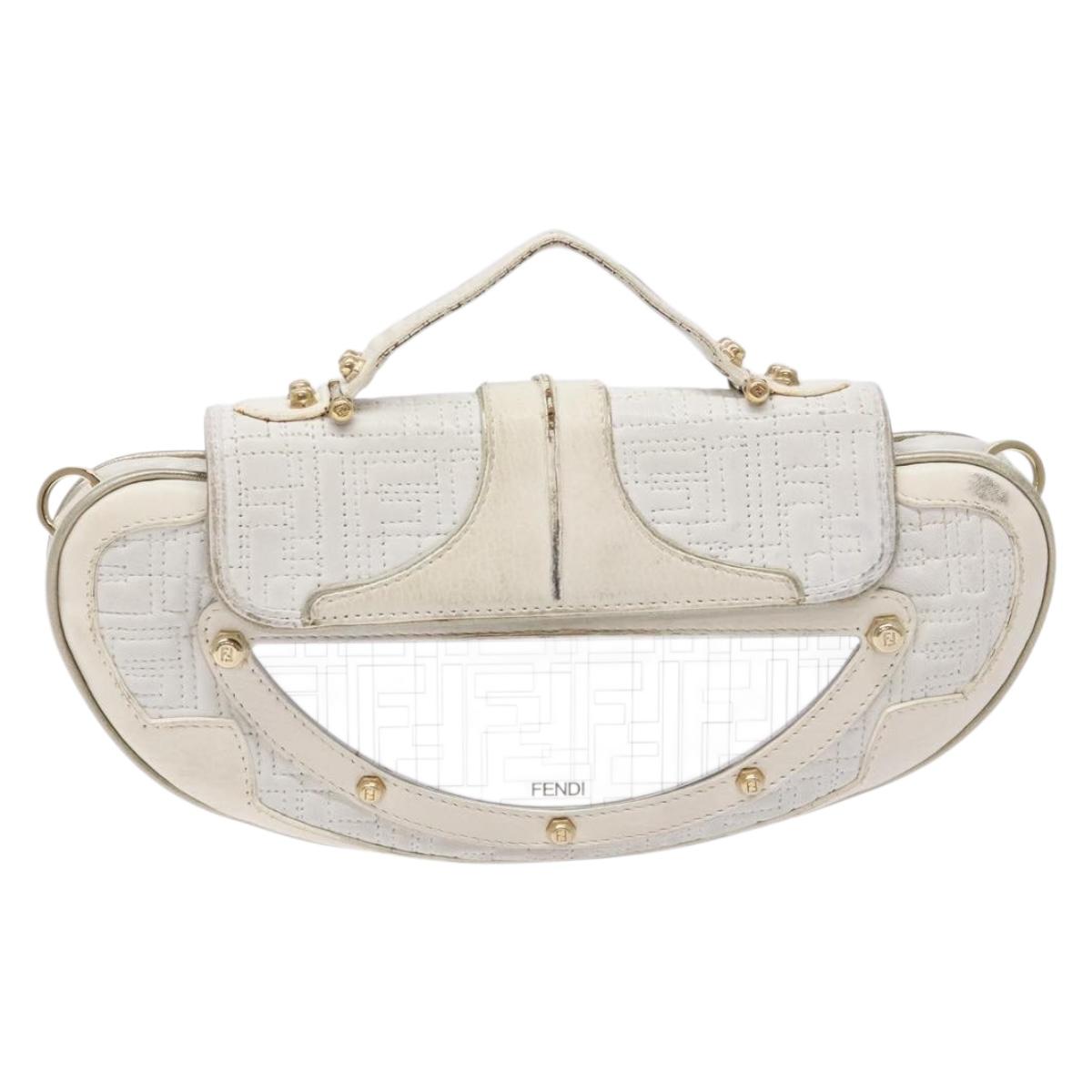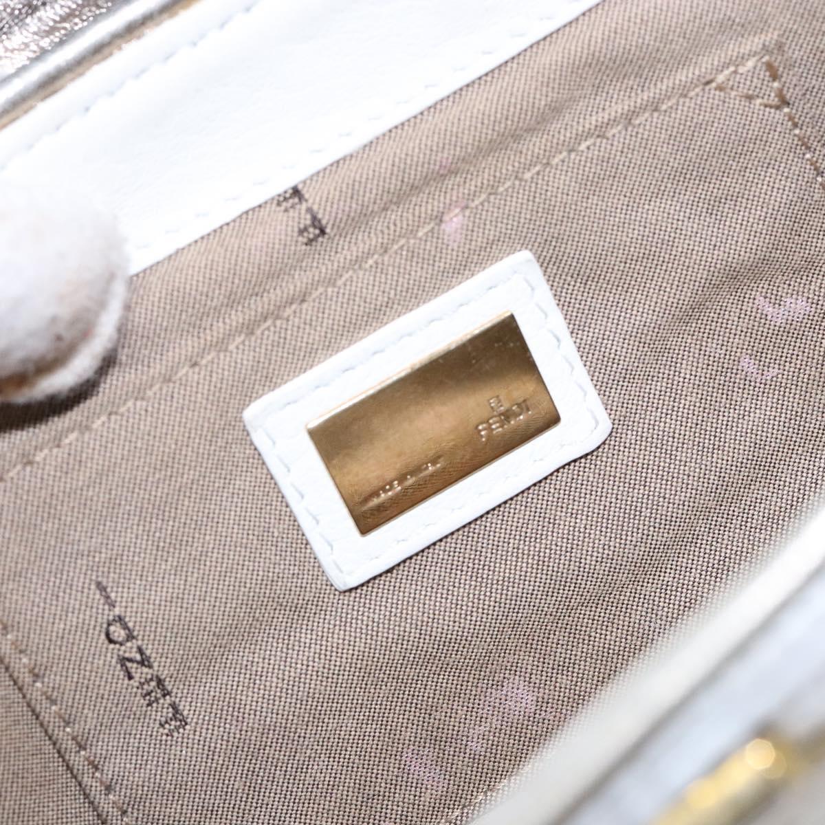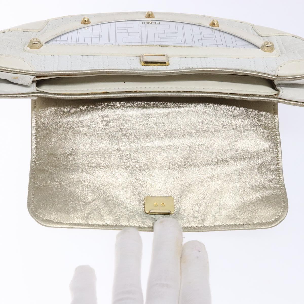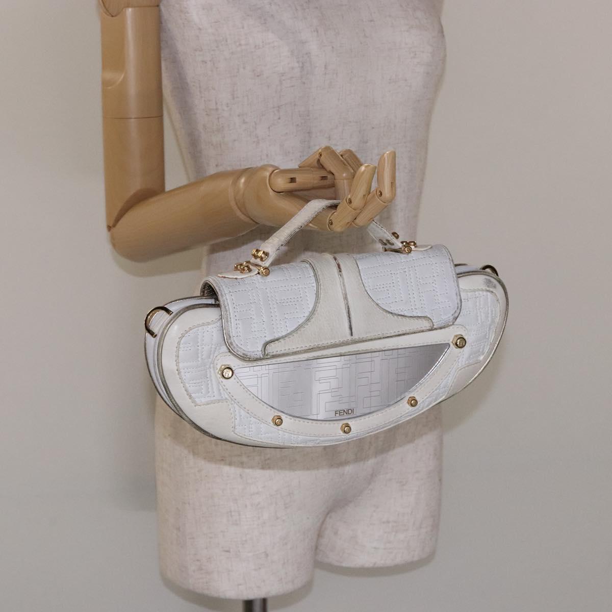 FENDI Zucca Canvas Hand Bag White Gold Auth 134574