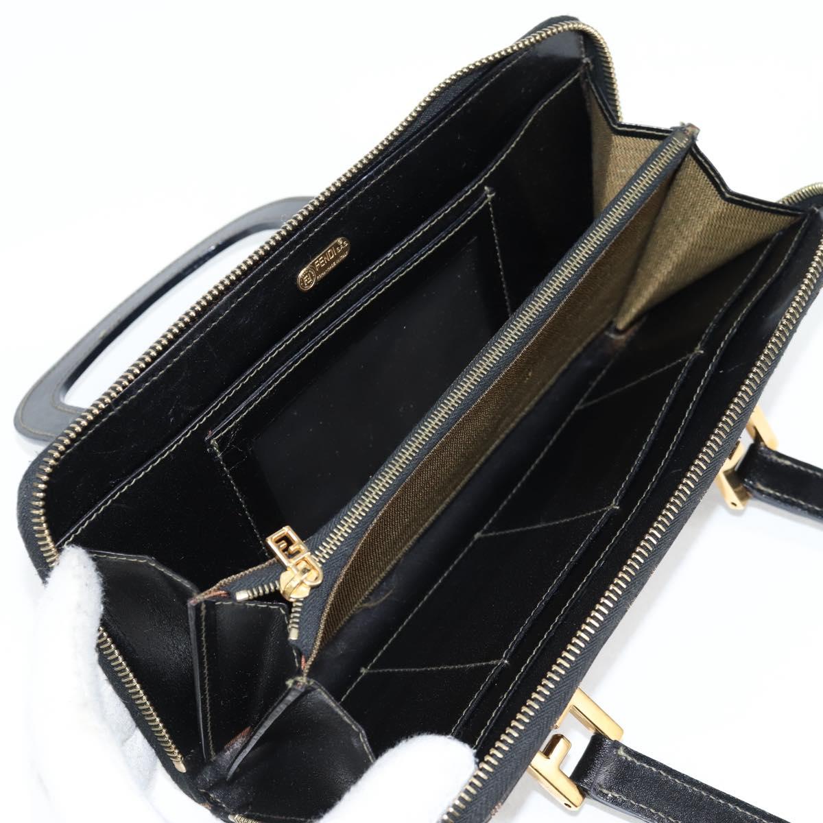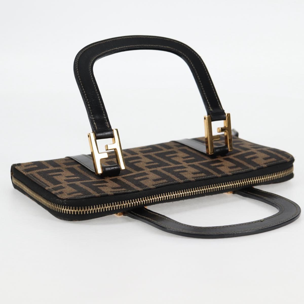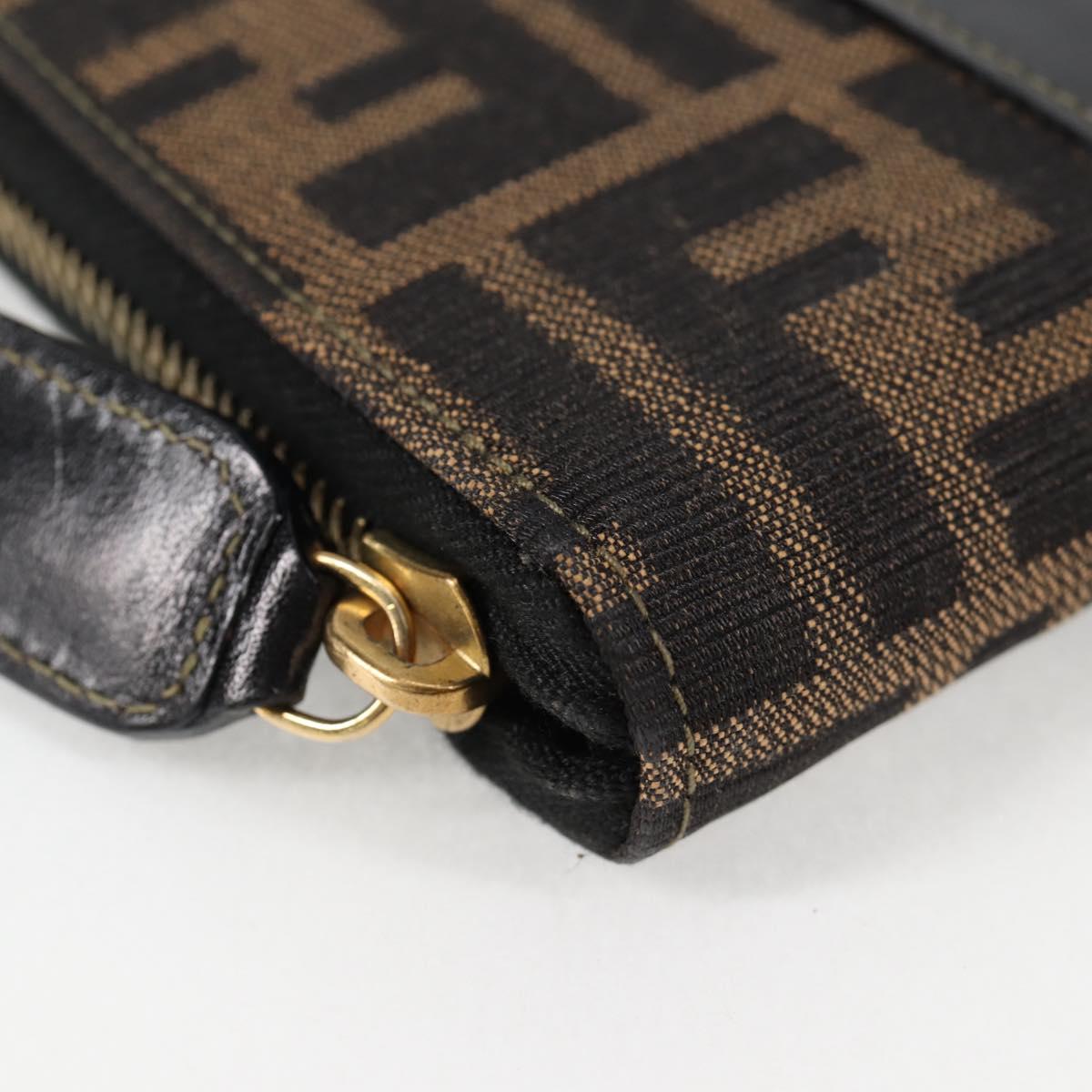 FENDI Zucca Canvas Hand Wallet Black Brown gold Auth 124173V