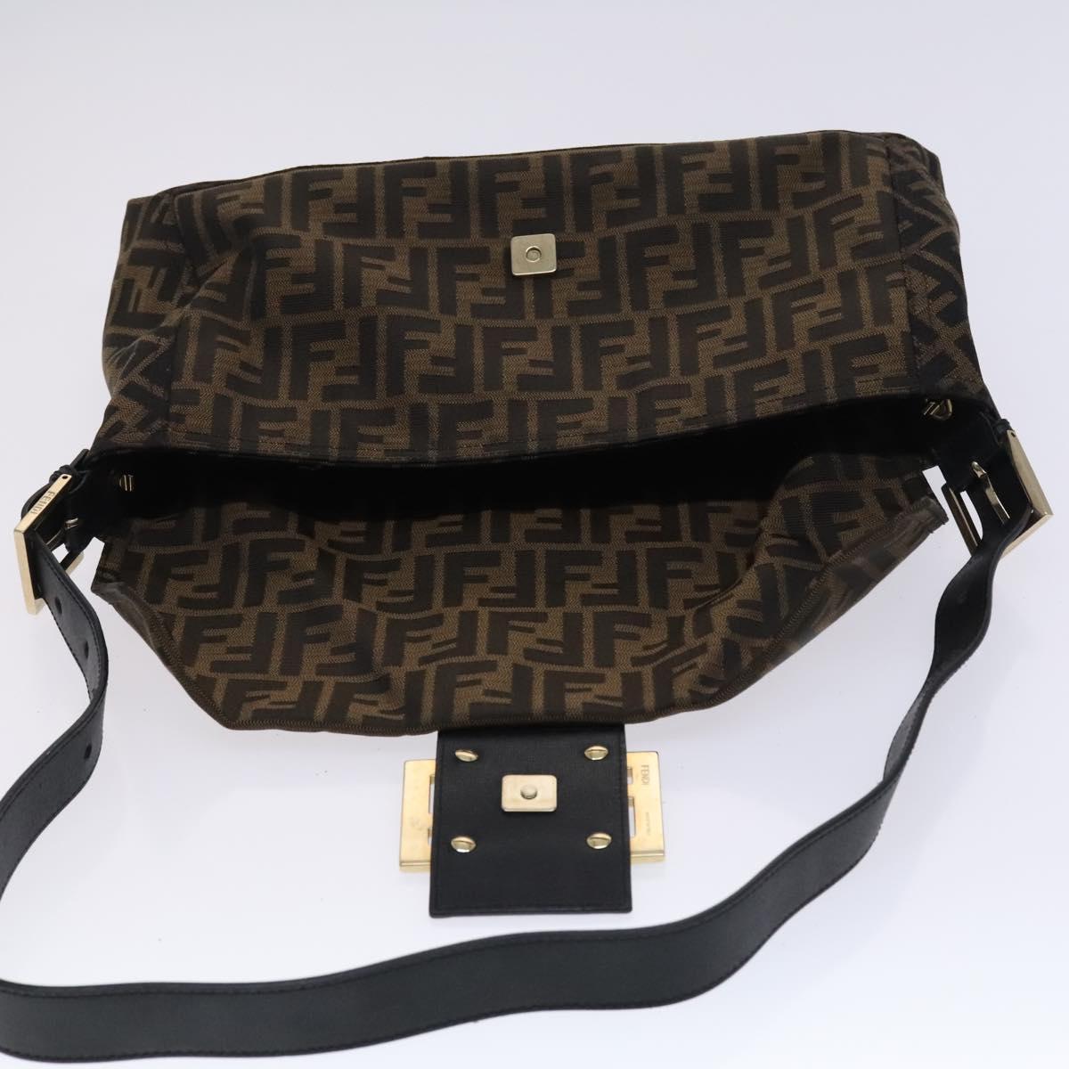 FENDI Zucca Canvas Mamma Baguette Bag Black Brown gold 8BT180 Auth mr1167V