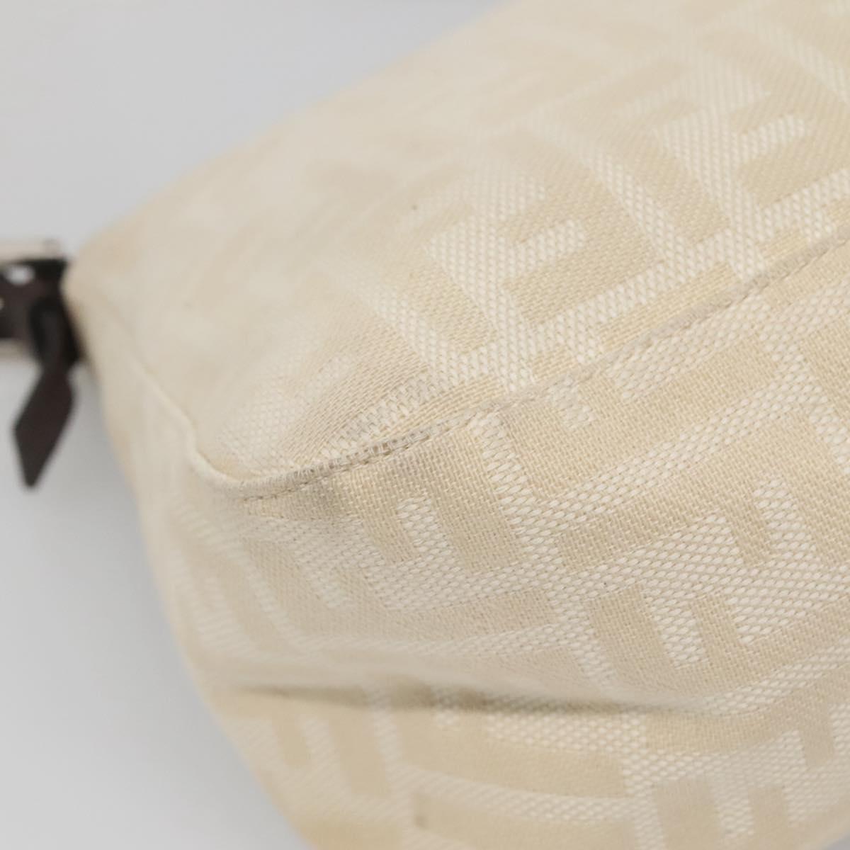 FENDI Zucca Canvas Mamma Baguette Shoulder Bag Beige Silver Auth 138371