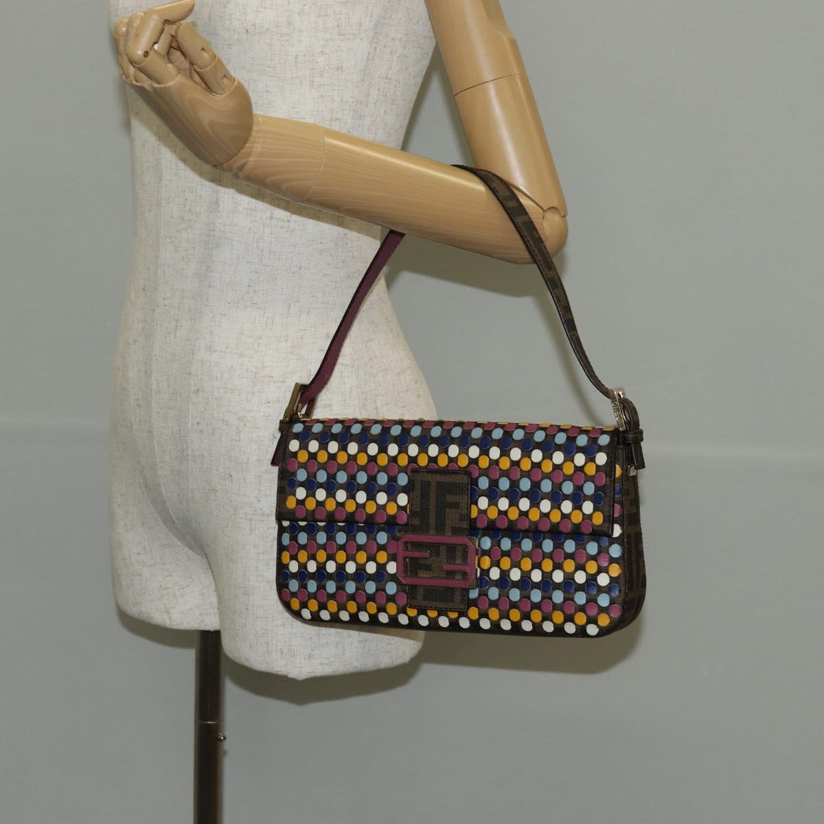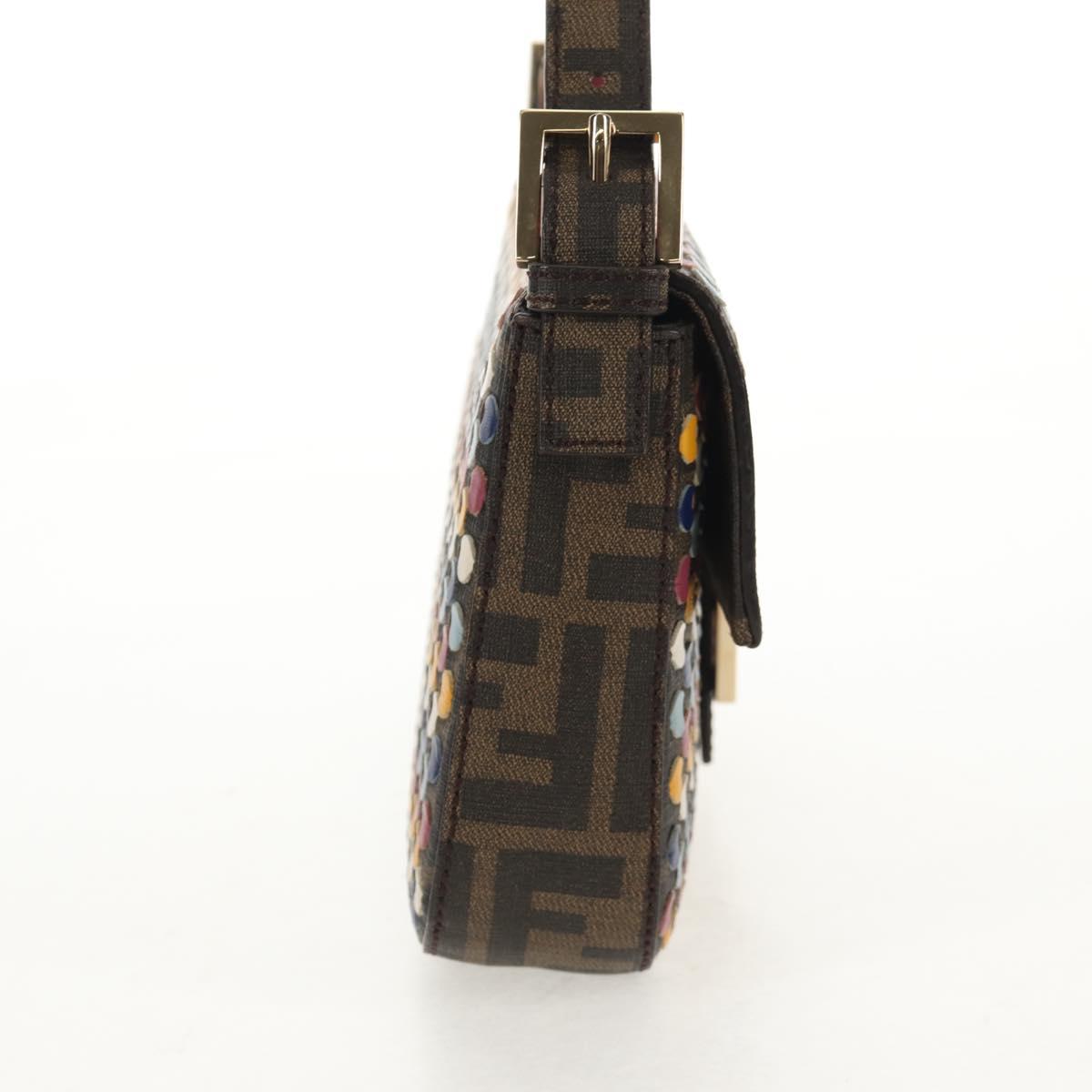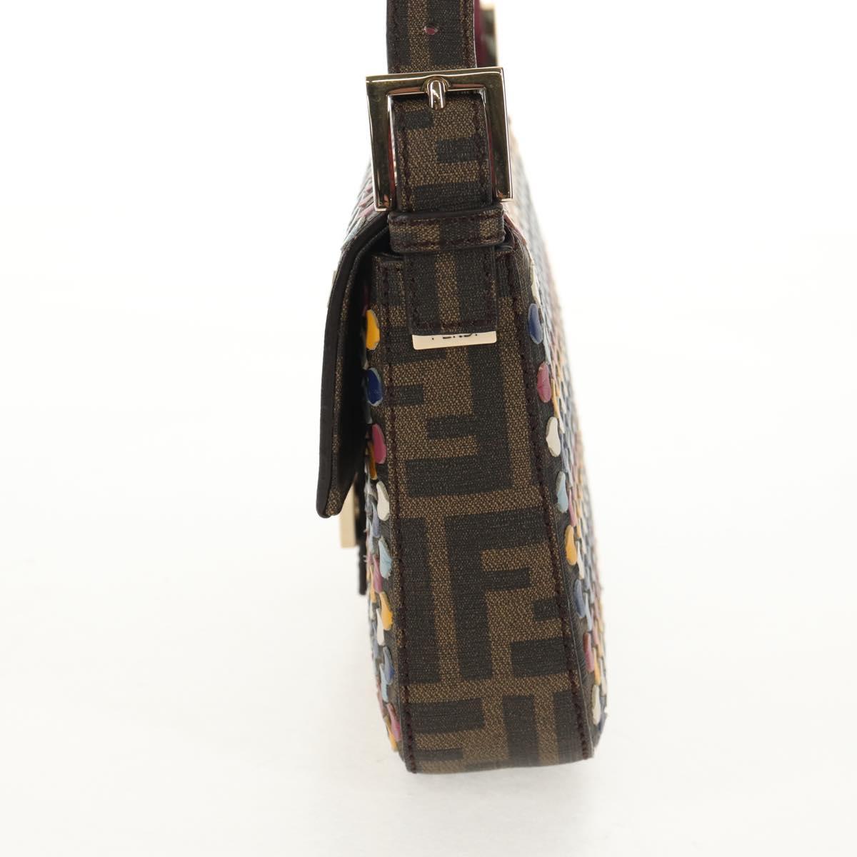FENDI Zucca Canvas Mamma Baguette Shoulder Bag Black Brown Auth 139132M