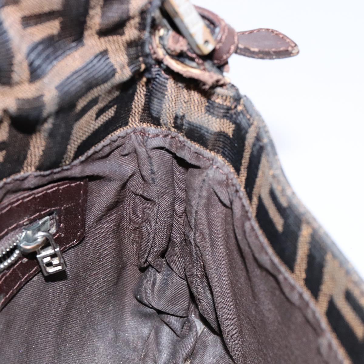 FENDI Zucca Canvas Mamma Baguette Shoulder Bag Black Brown Auth 139369