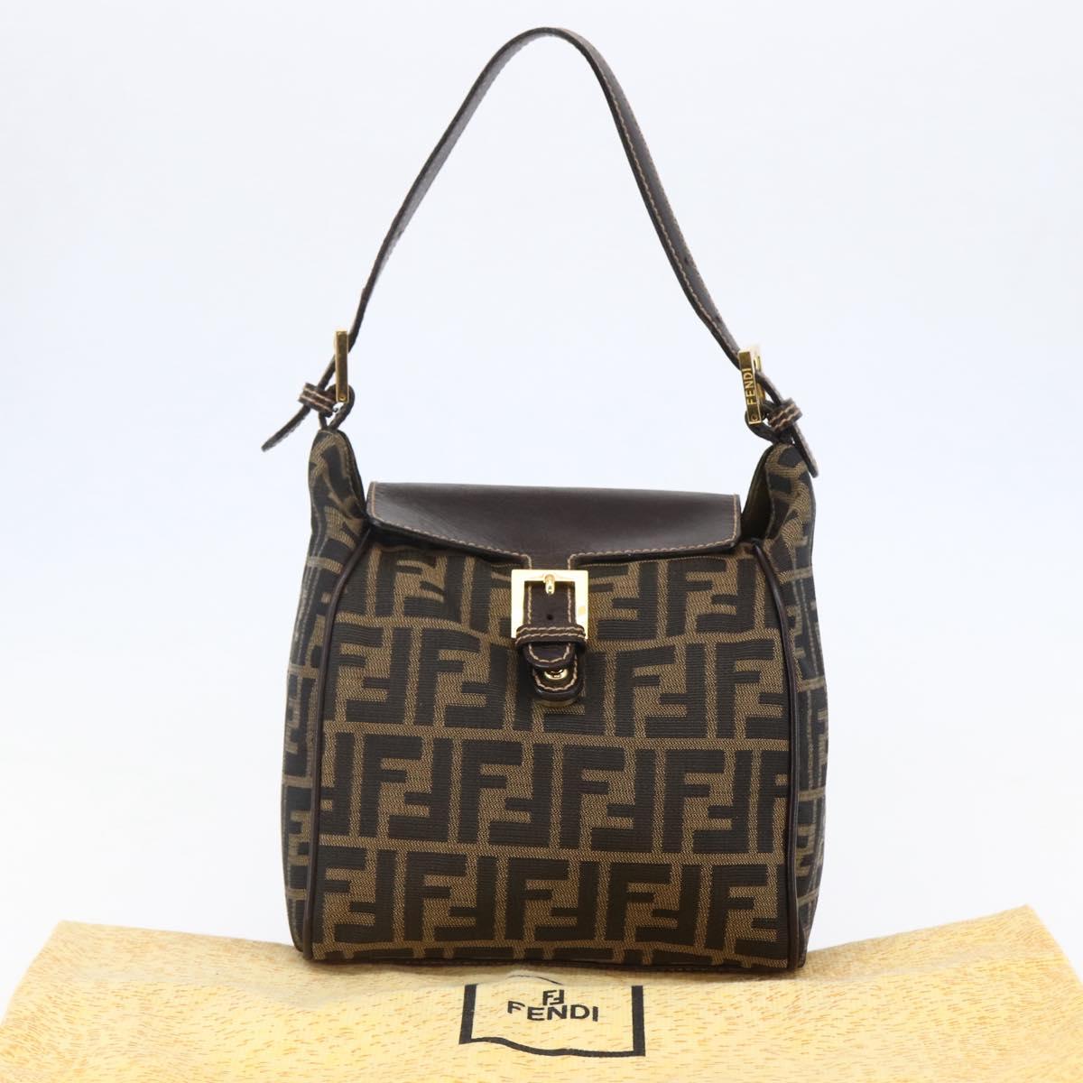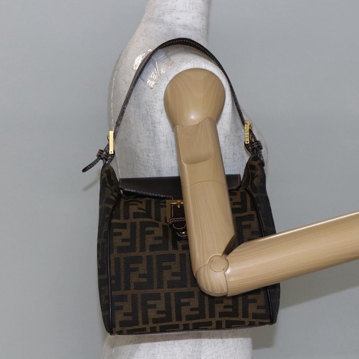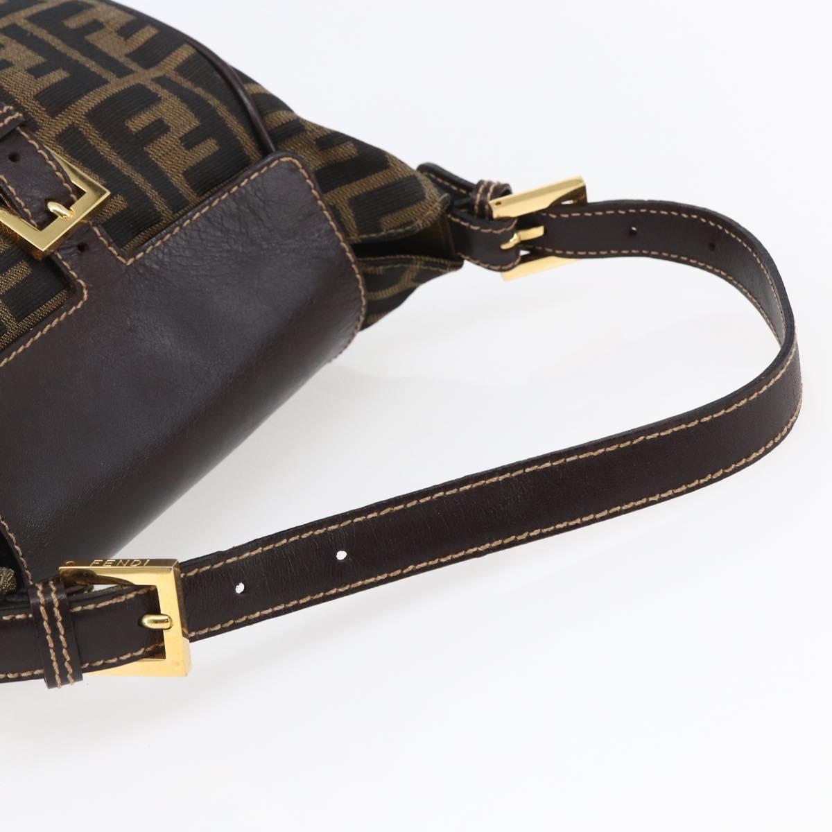 FENDI Zucca Canvas Mamma Baguette Shoulder Bag Black Brown gold Auth 145884V