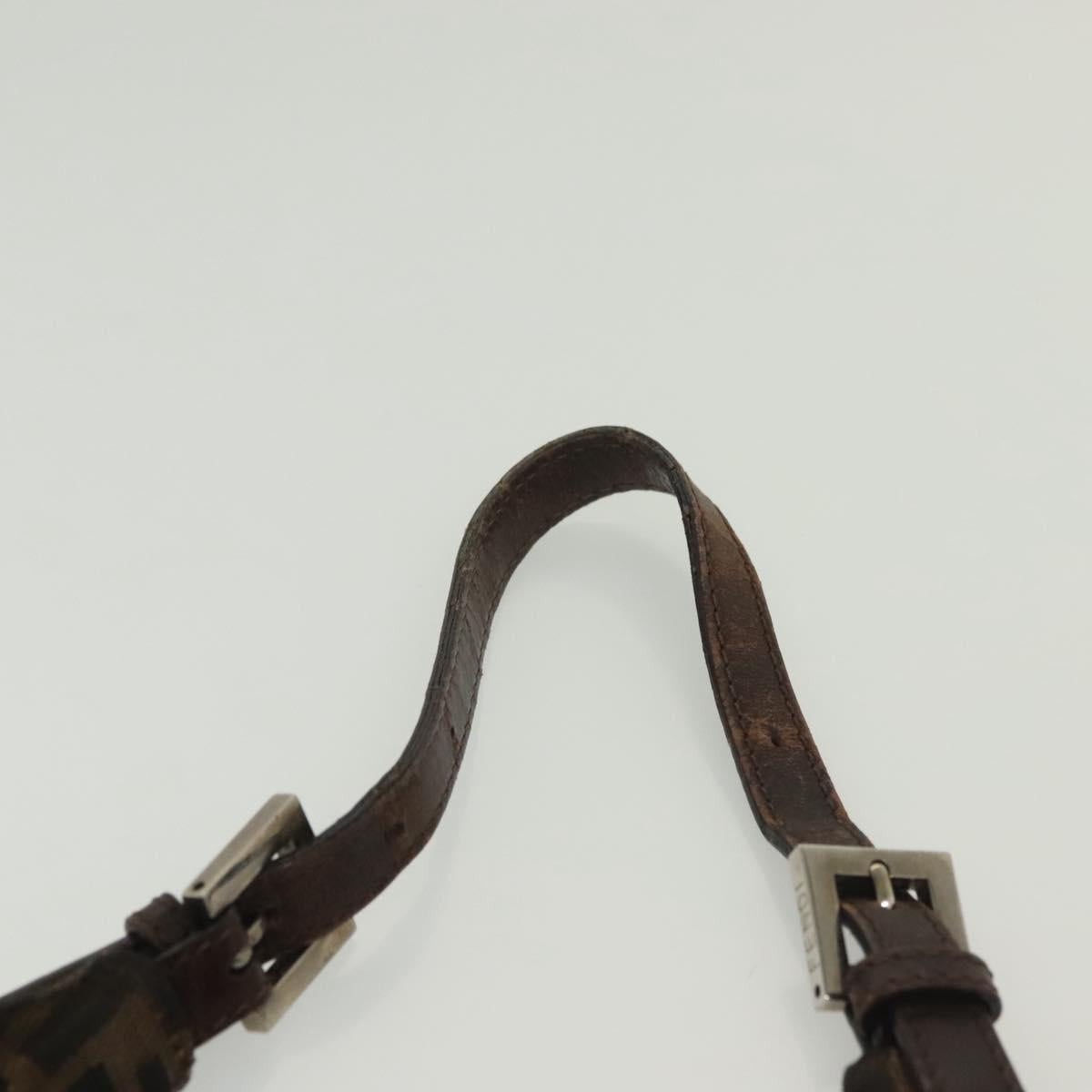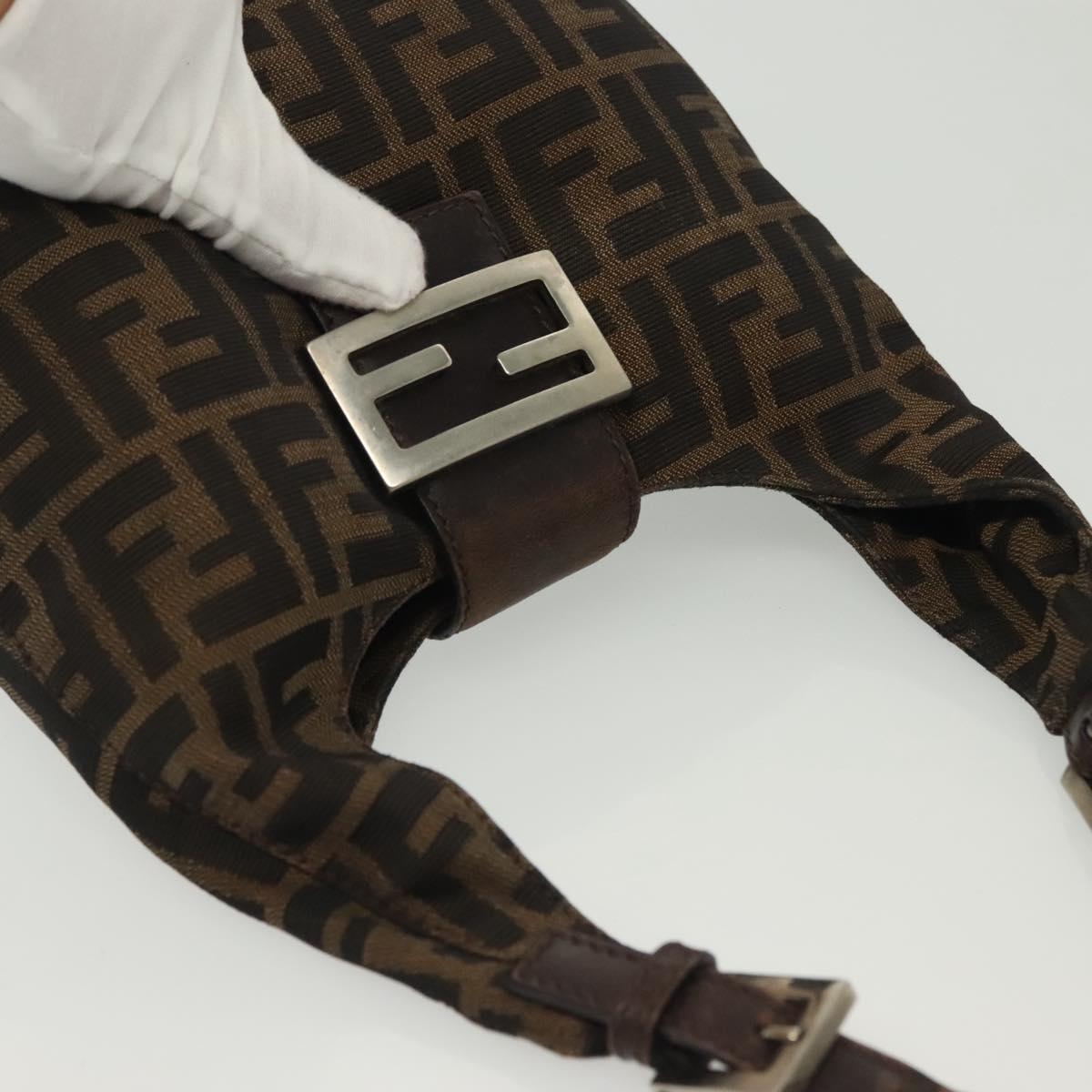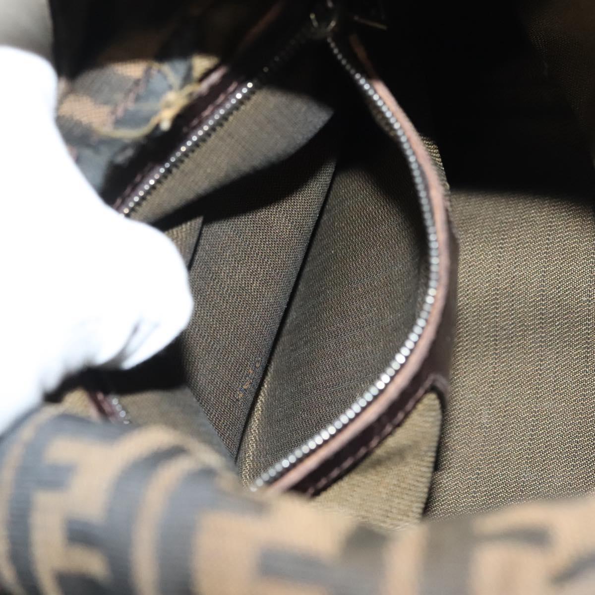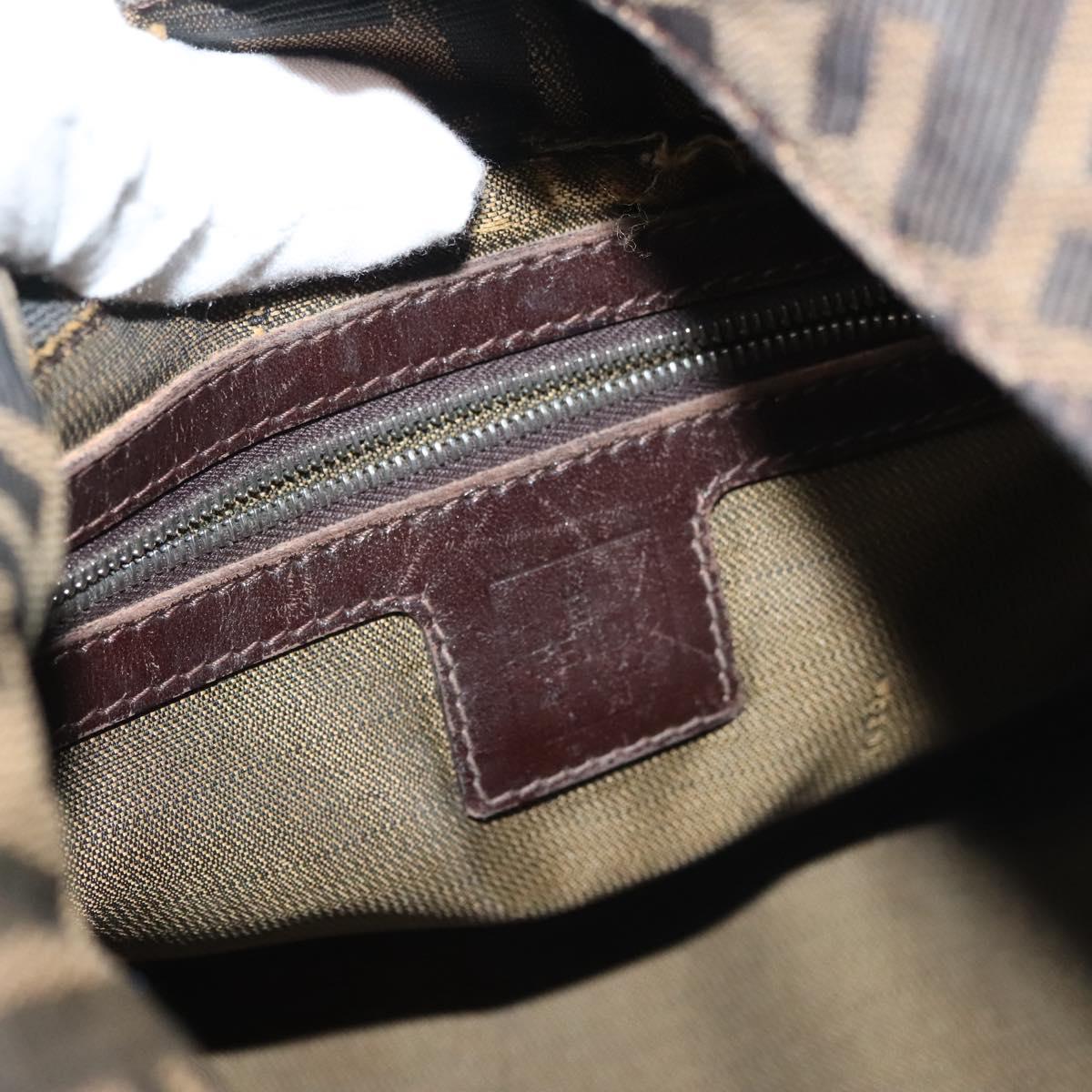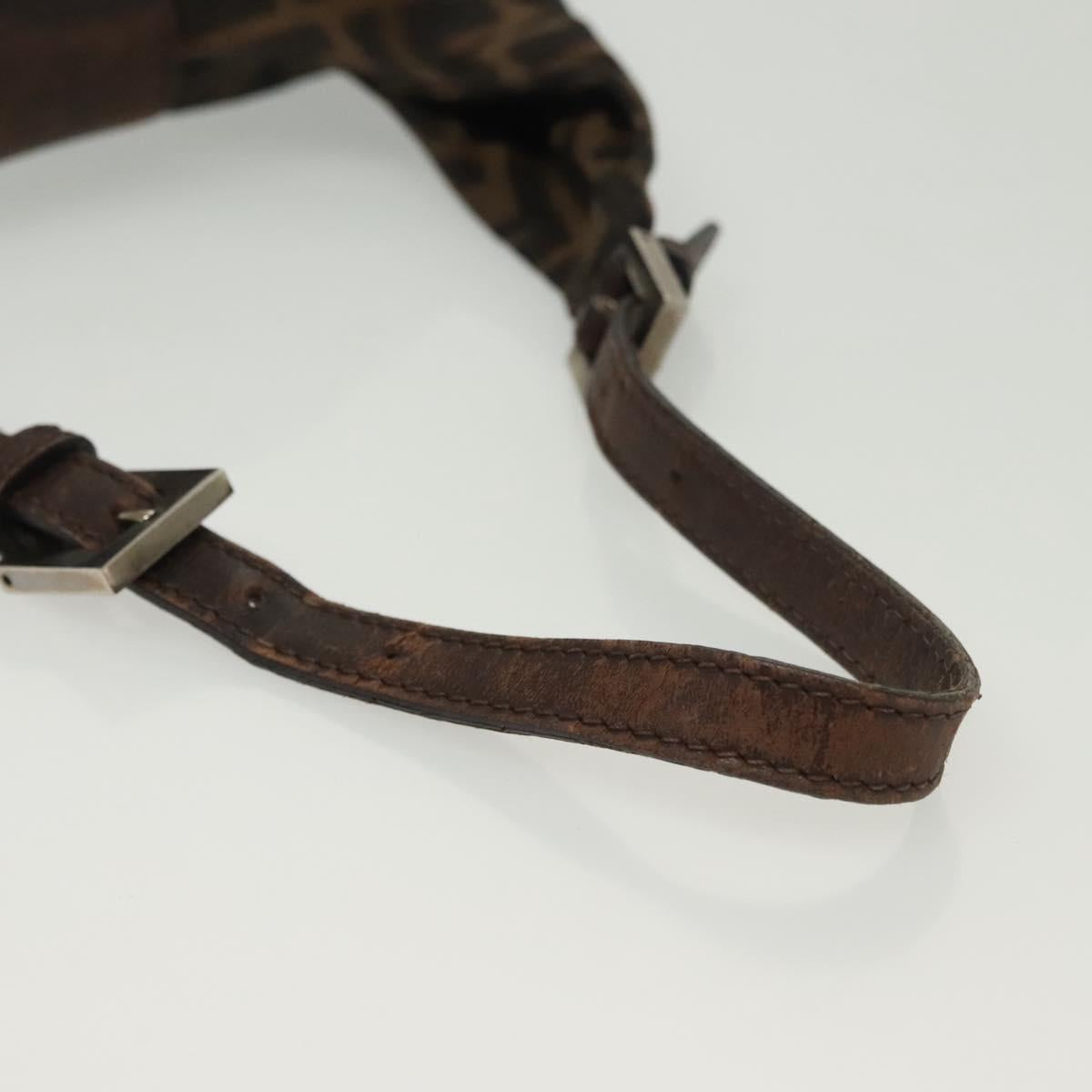 FENDI Zucca Canvas Mamma Baguette Shoulder Bag Brown Black Silver Auth 139842