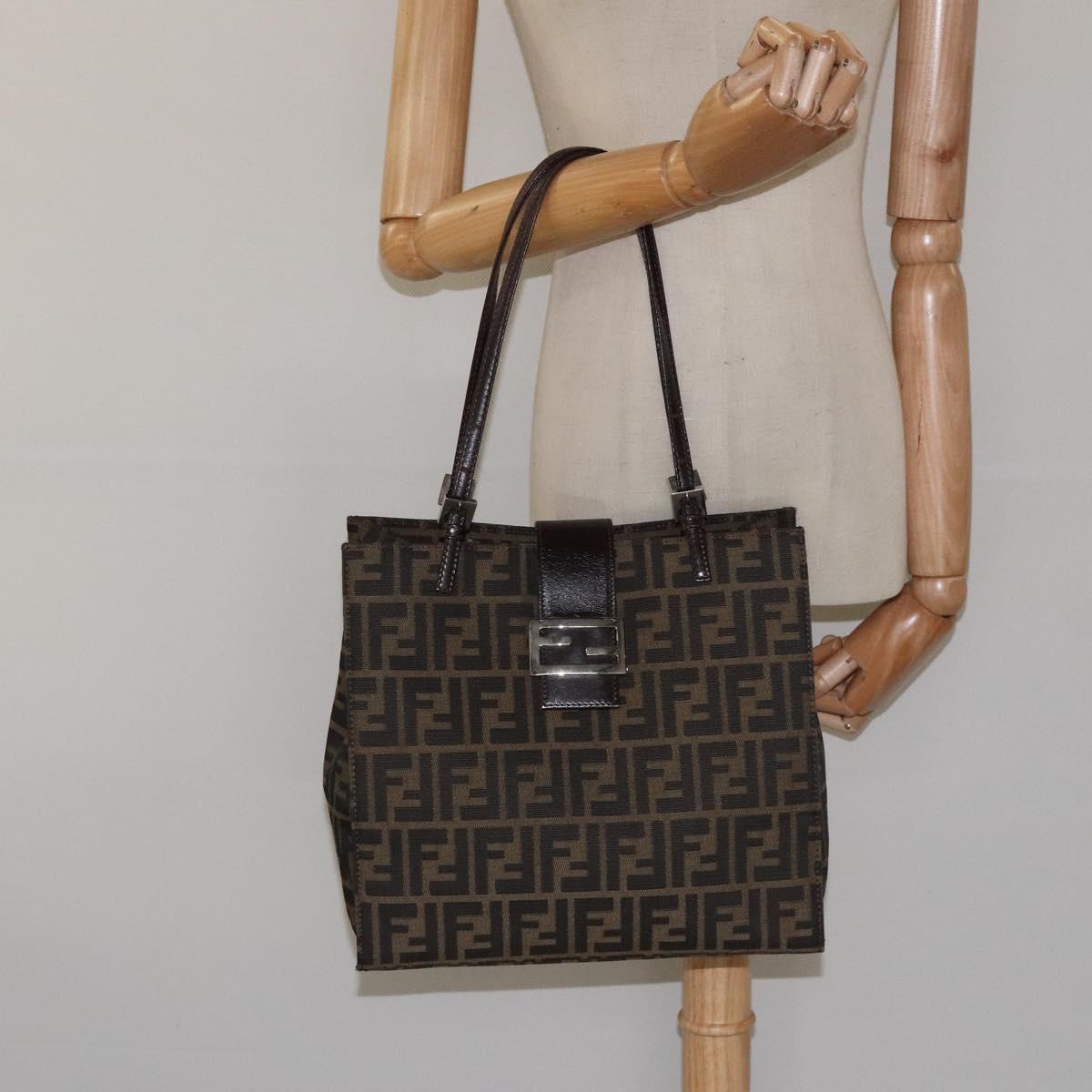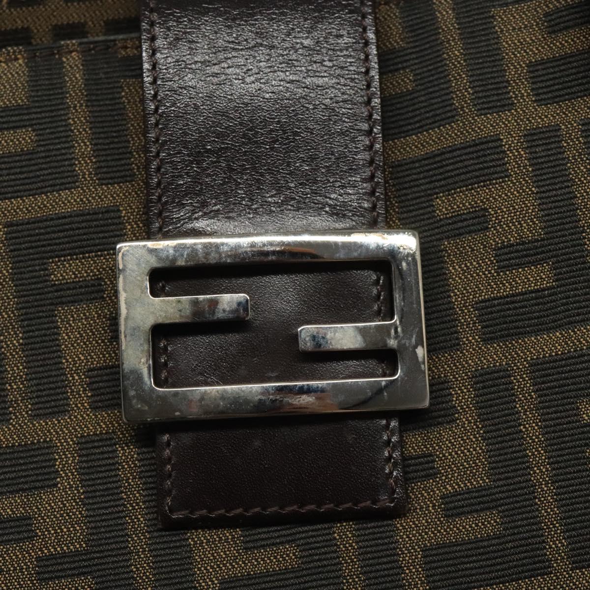 FENDI Zucca Canvas Mamma Baguette Tote Bag Black Brown Silver Auth BD1155
