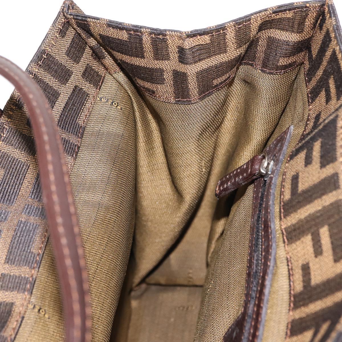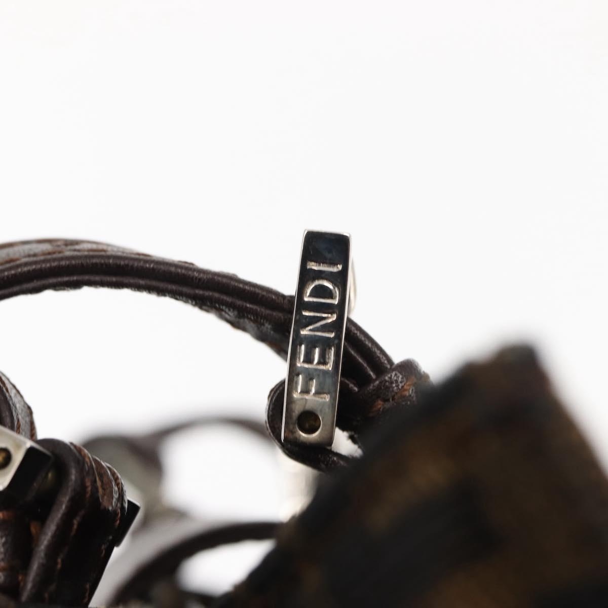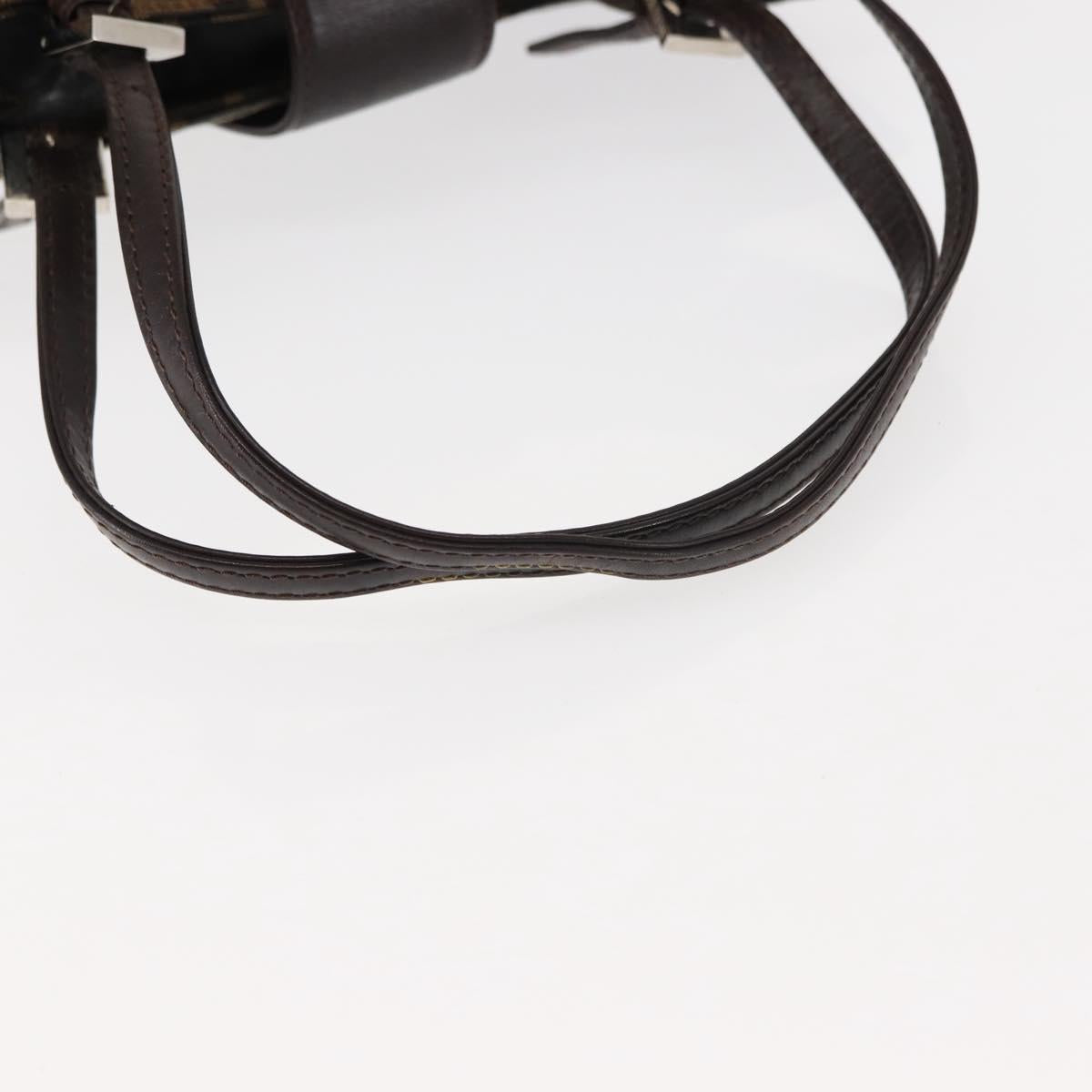 FENDI Zucca Canvas Mamma Baguette Tote Bag Black Silver Brown Auth 145493