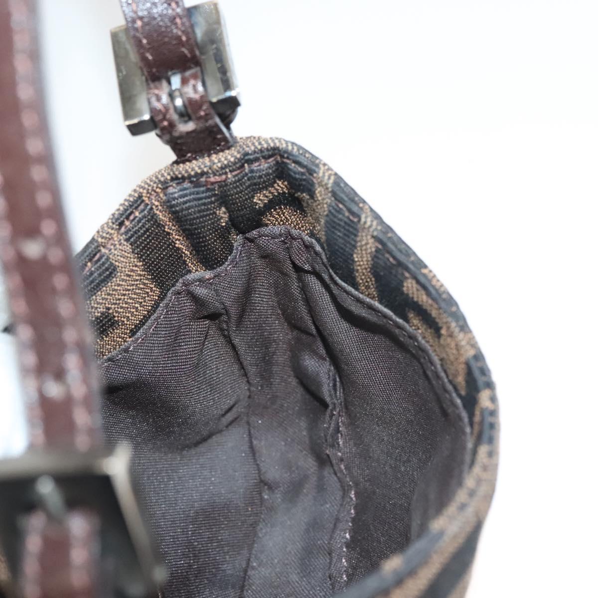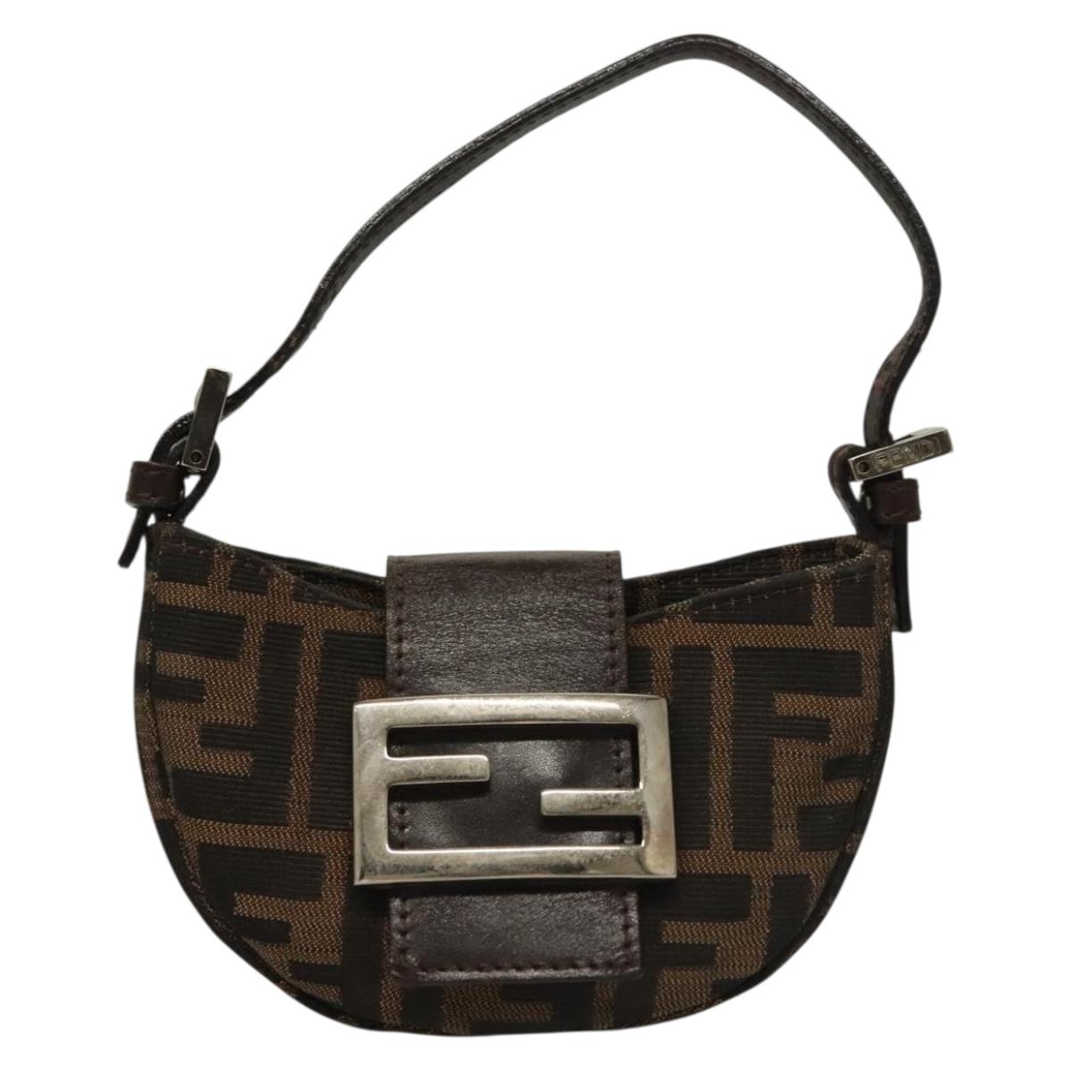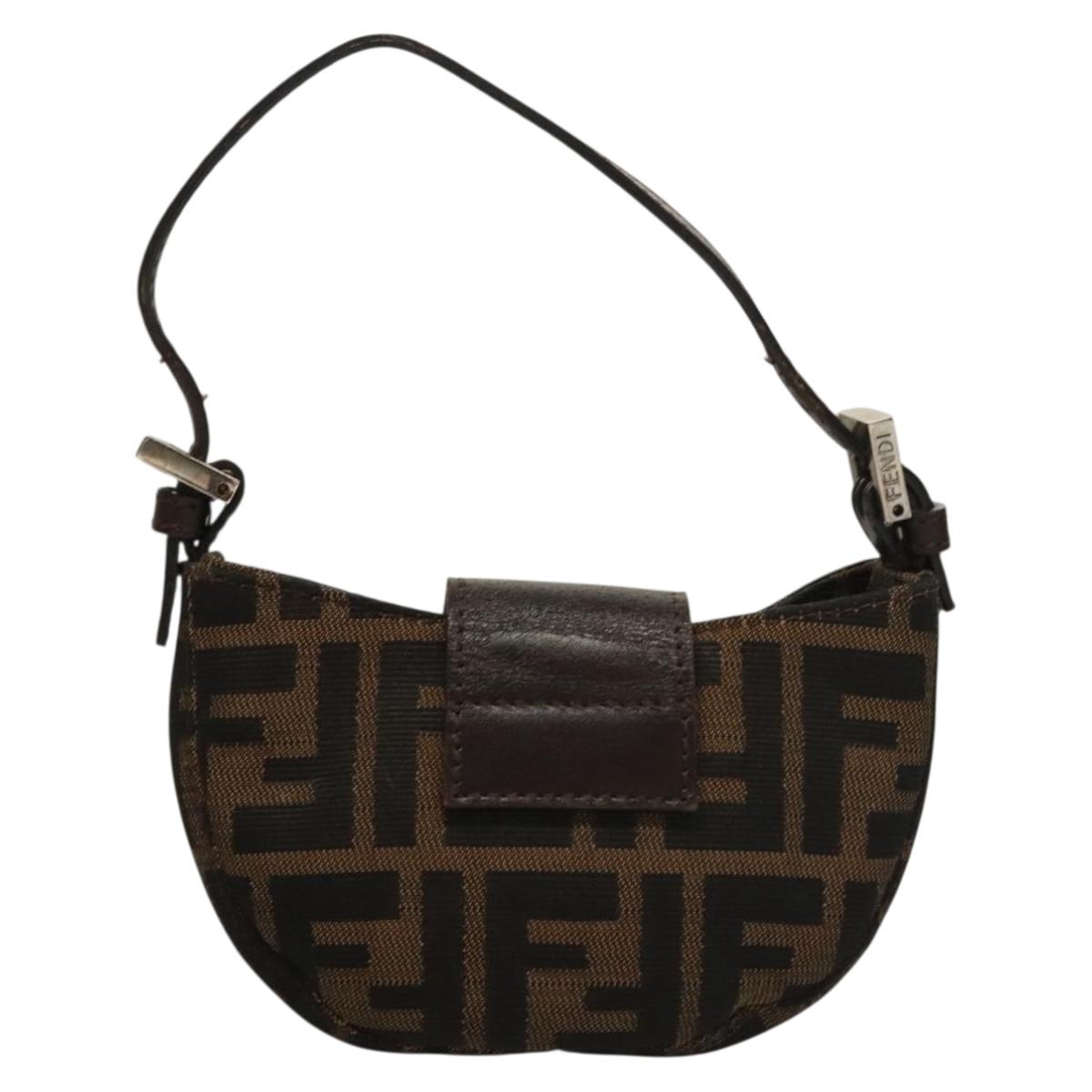 FENDI Zucca Canvas Mini Croissant Hand Bag Black Brown Silver Auth 133195
