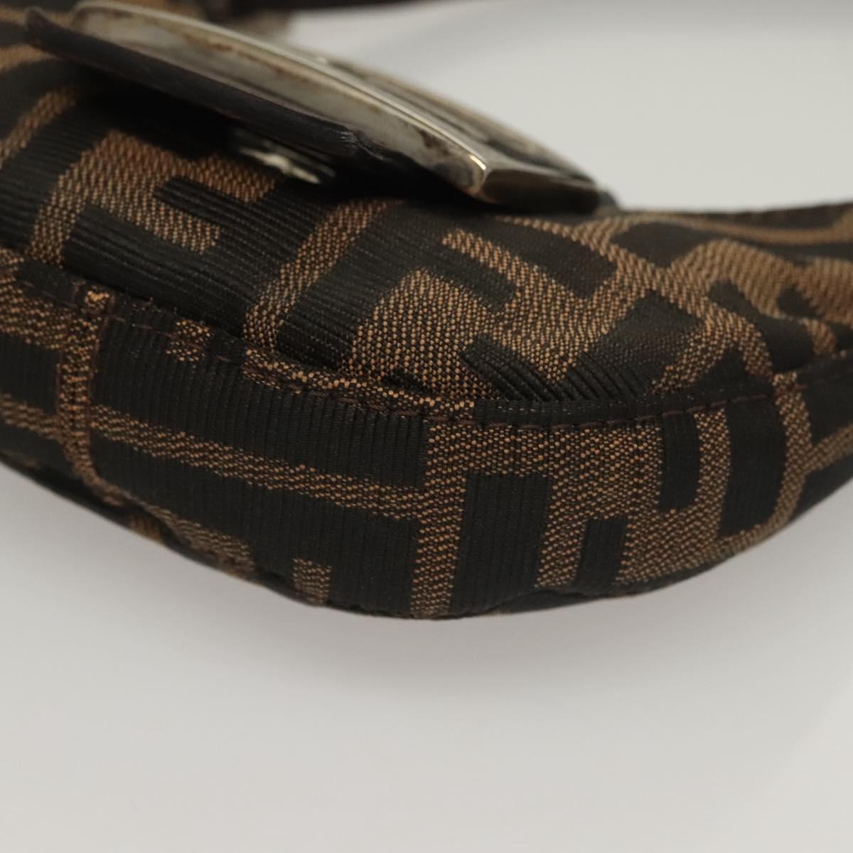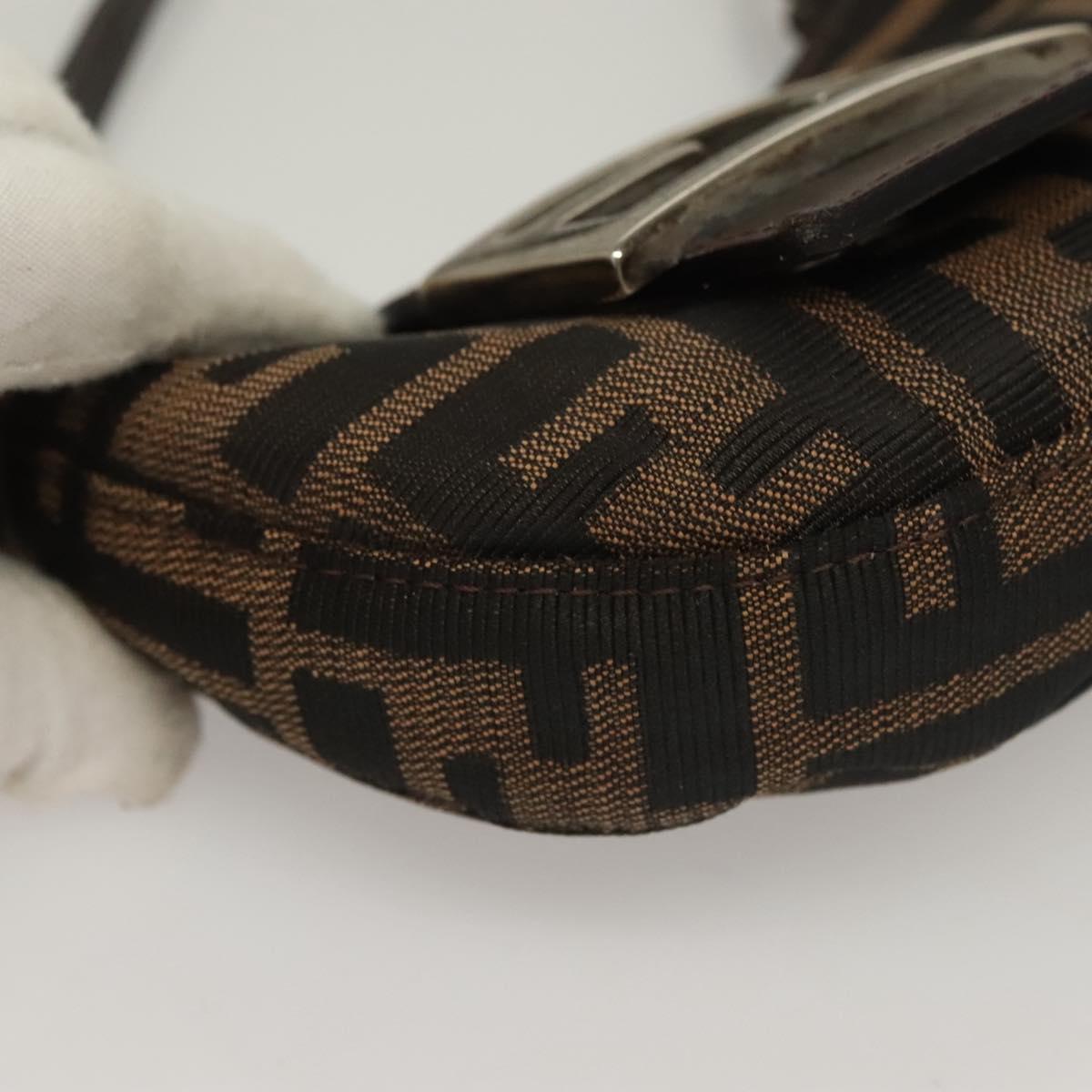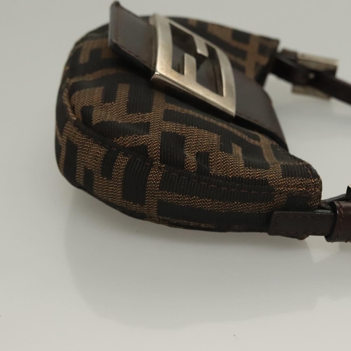 FENDI Zucca Canvas Mini Croissant Hand Bag Black Brown Silver Auth 133195