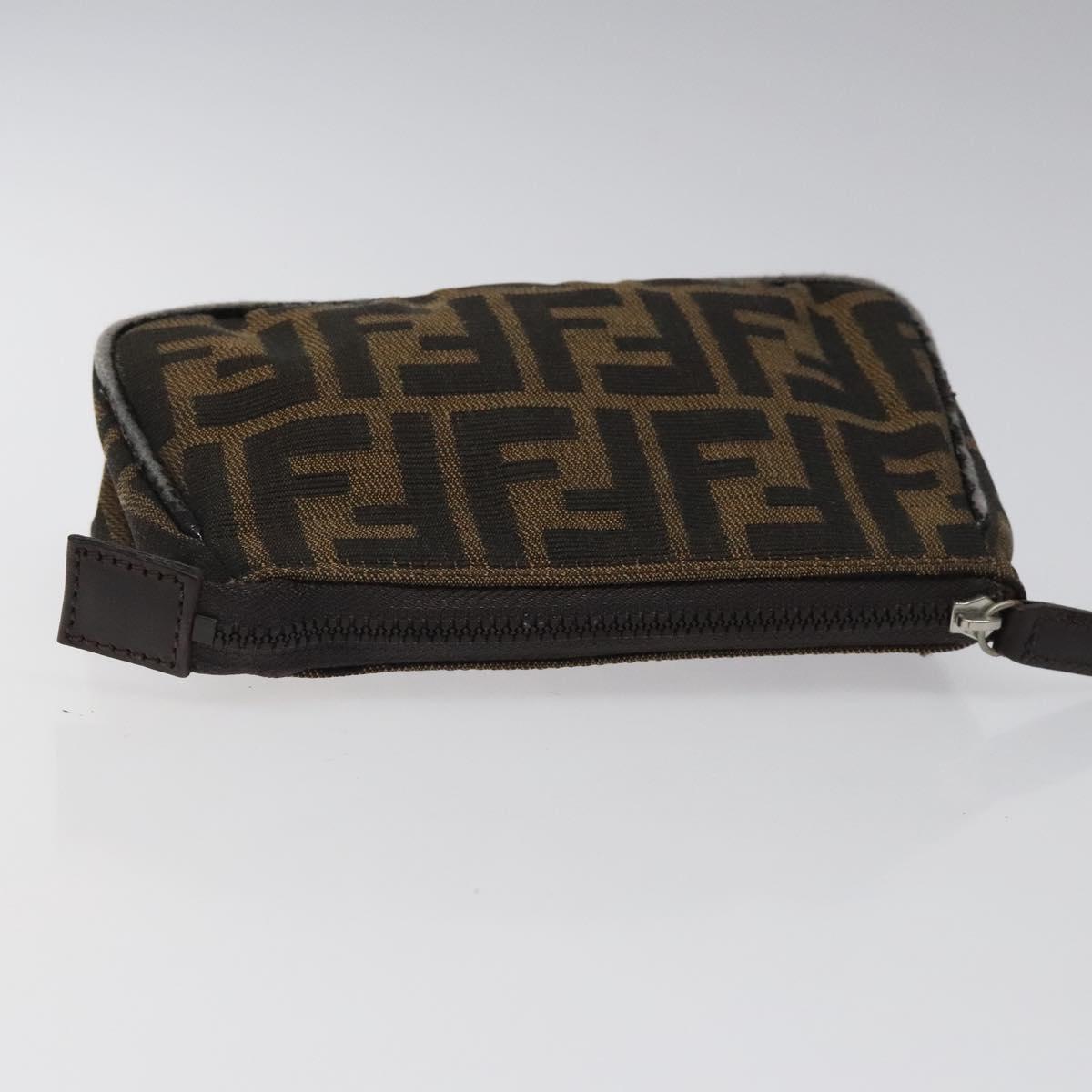 FENDI Zucca Canvas Pouch Black Brown Auth 117119