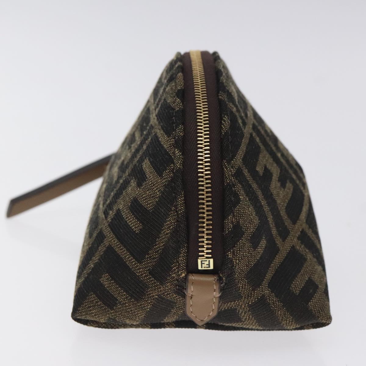FENDI Zucca Canvas Pouch Black Brown Auth 130225V
