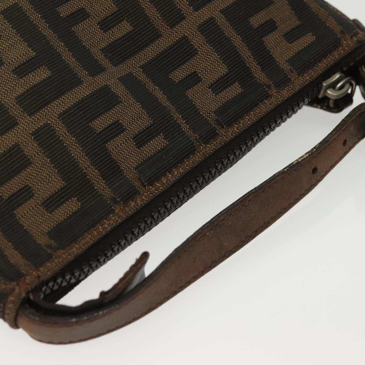 FENDI Zucca Canvas Pouch Black Brown Auth sw1438