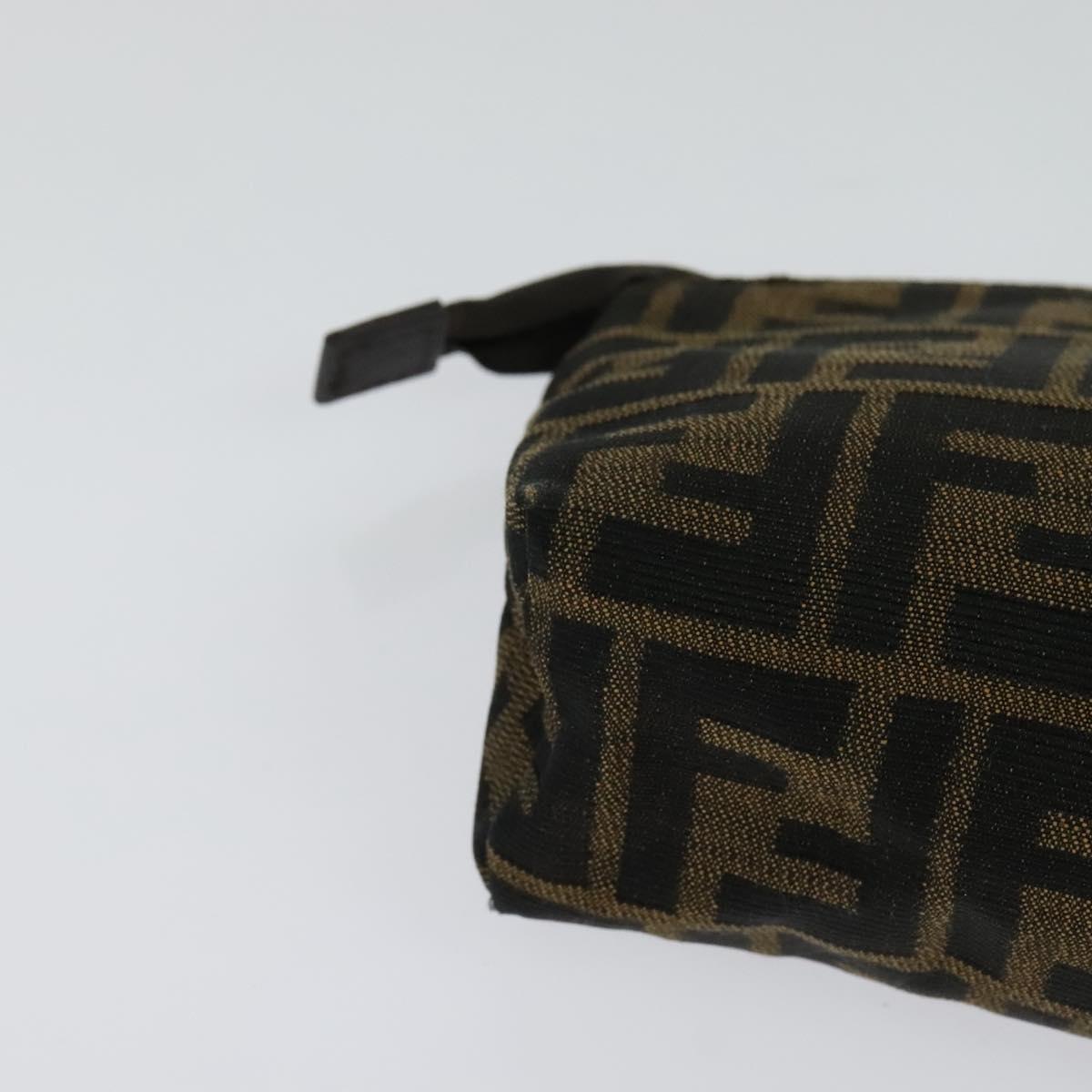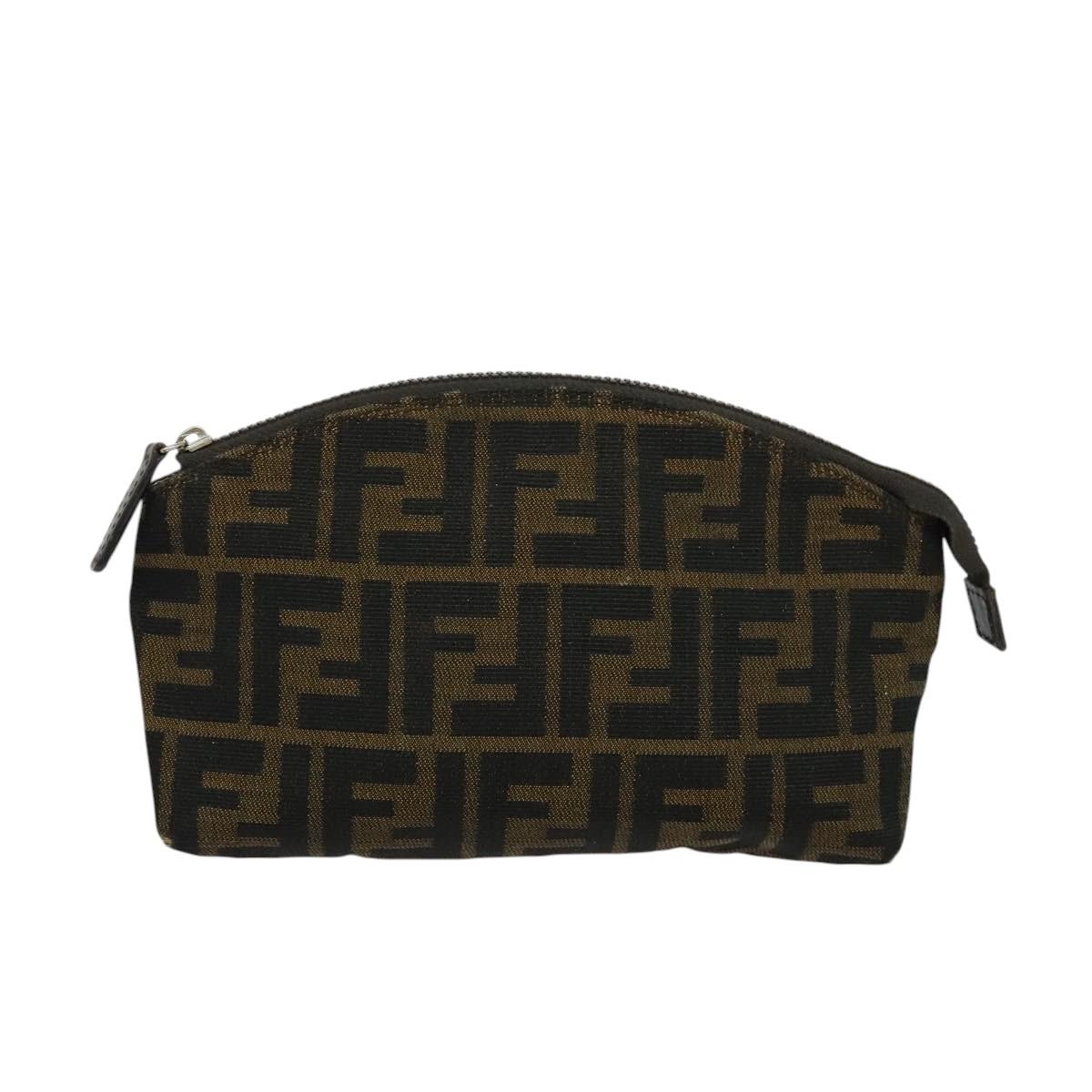 FENDI Zucca Canvas Pouch Black Brown Silver Auth ar13615
