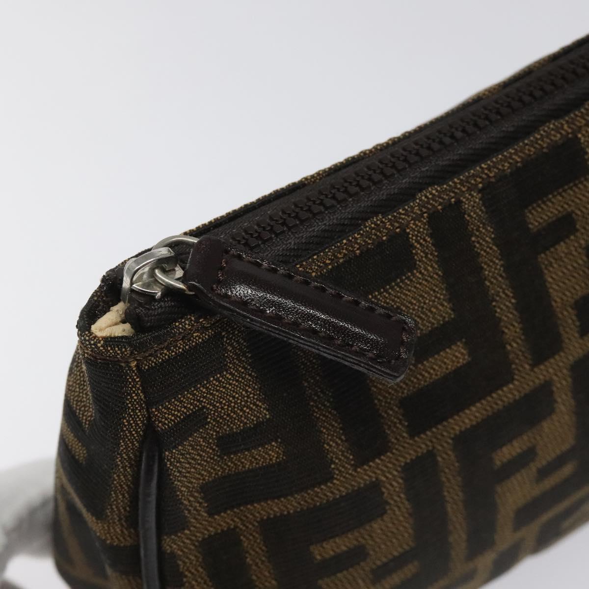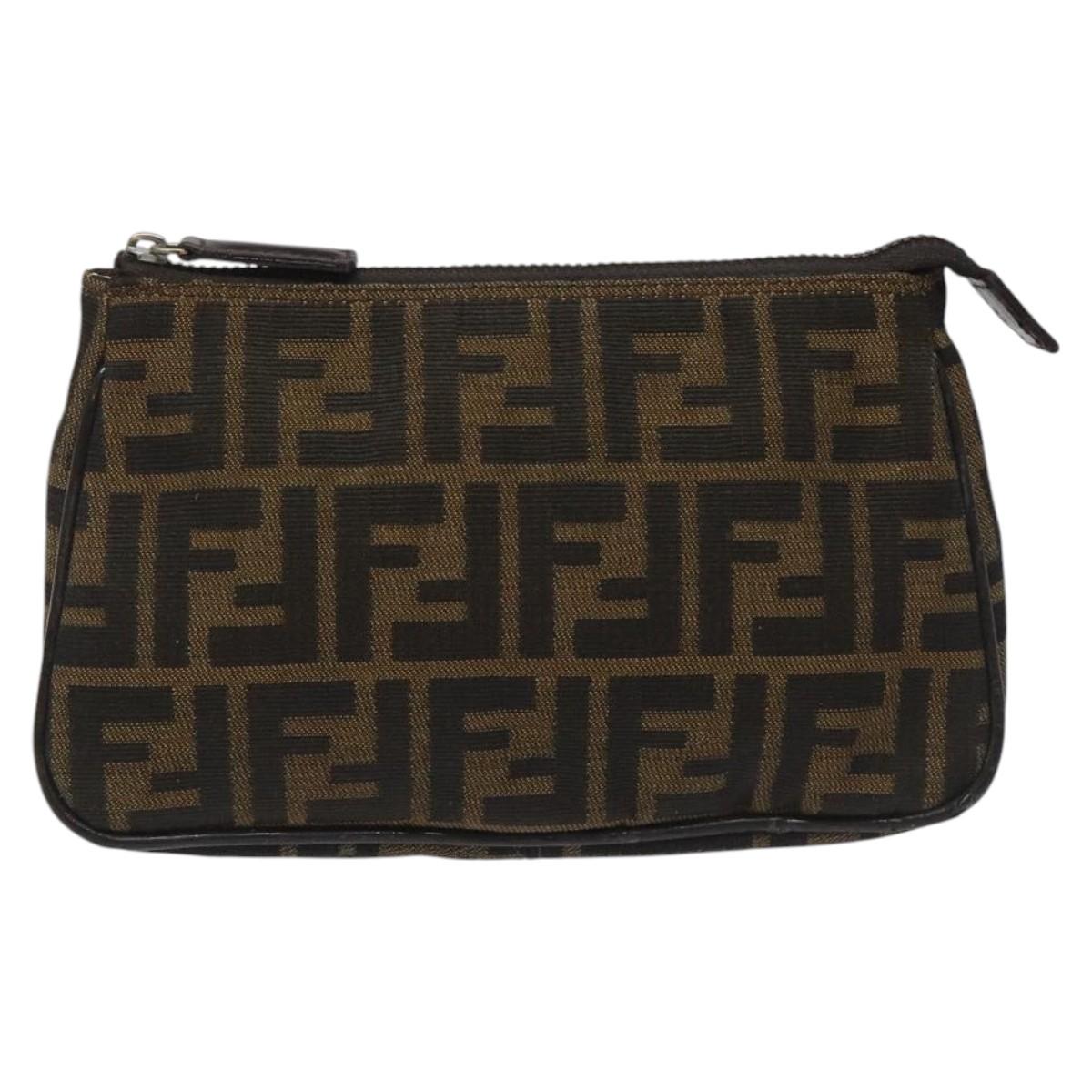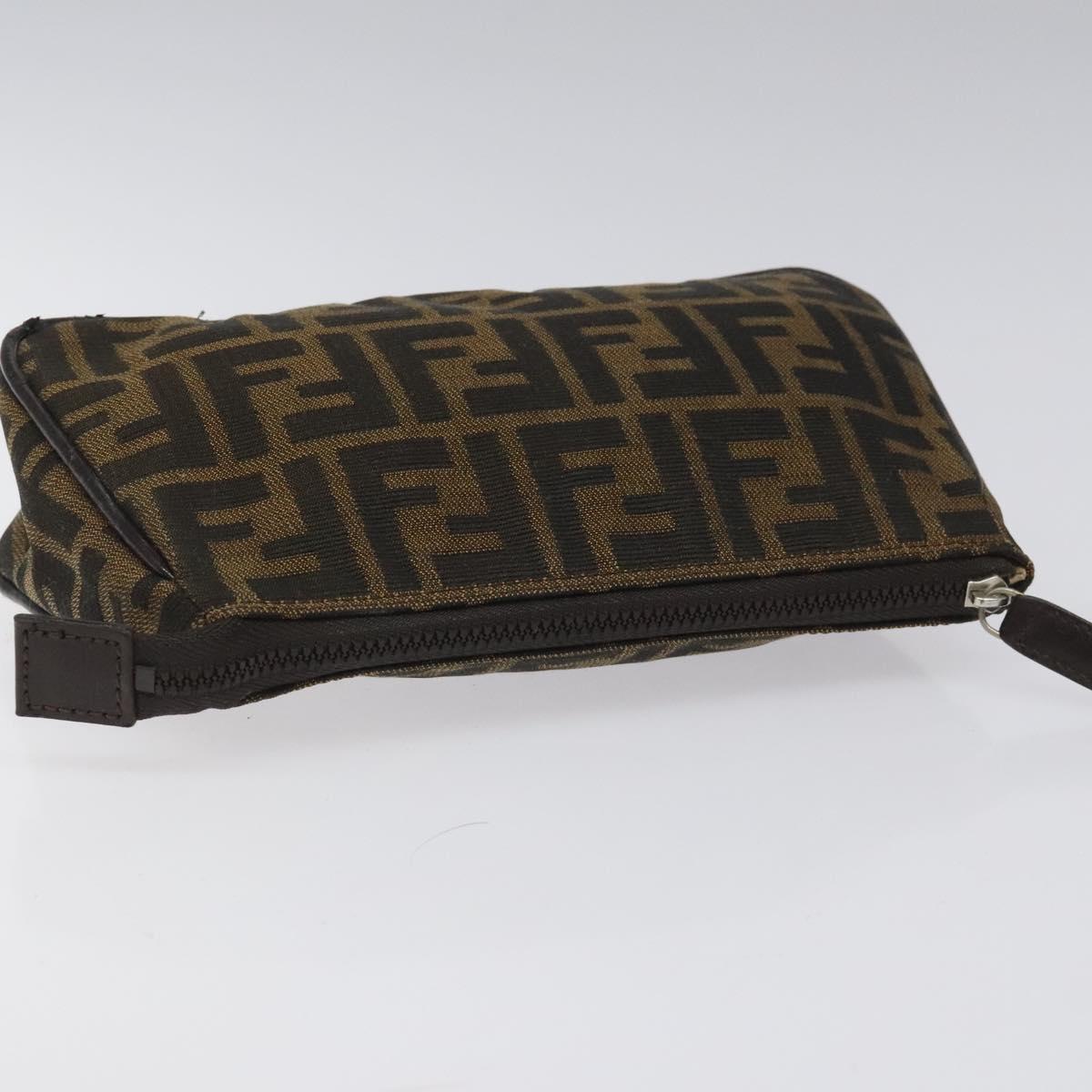 FENDI Zucca Canvas Pouch Brown Black Auth 114794