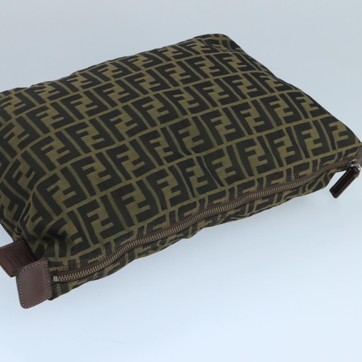 FENDI Zucca Canvas Pouch Brown Black Auth fm4183