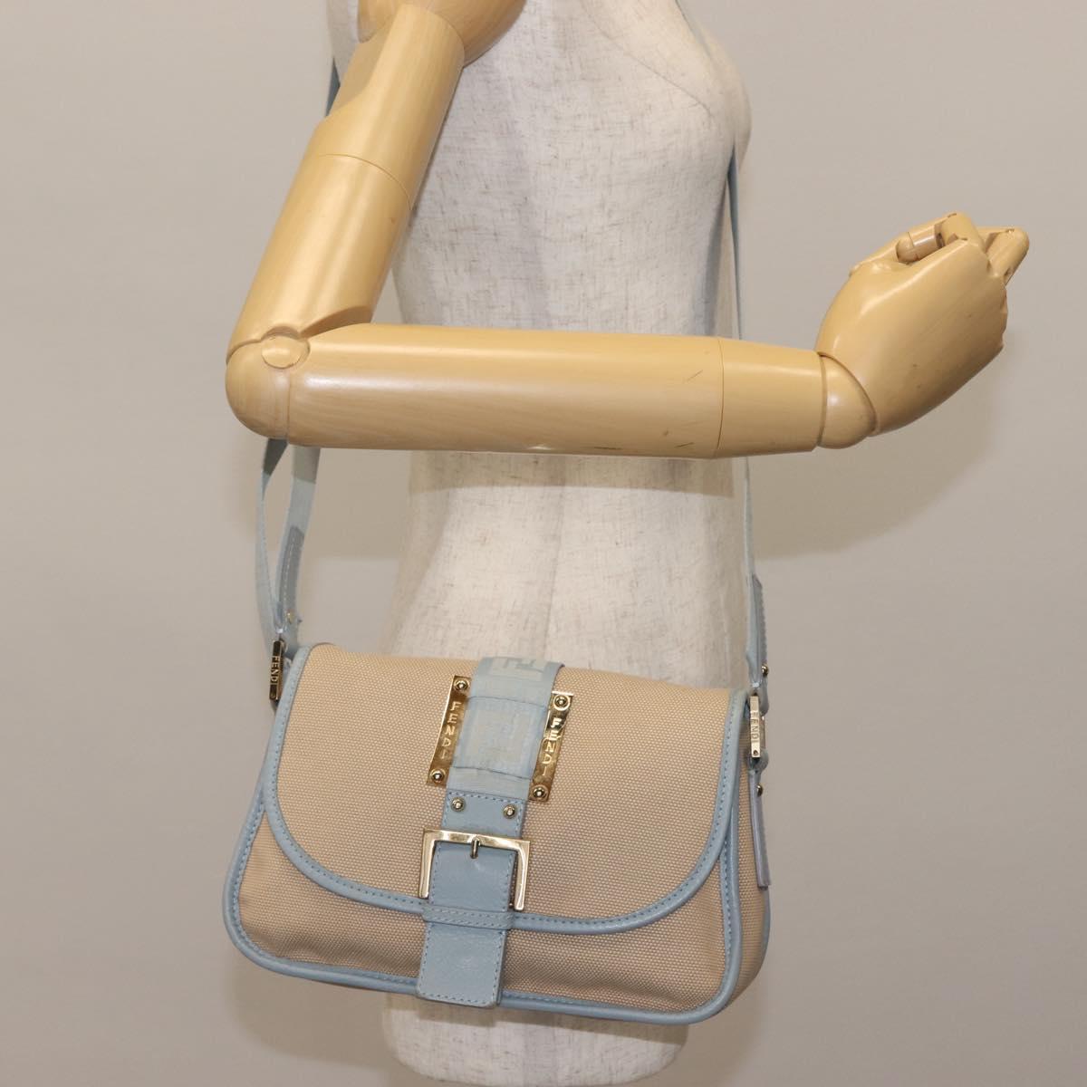 FENDI Zucca Canvas Shoulder Bag Beige Gold Auth 144250