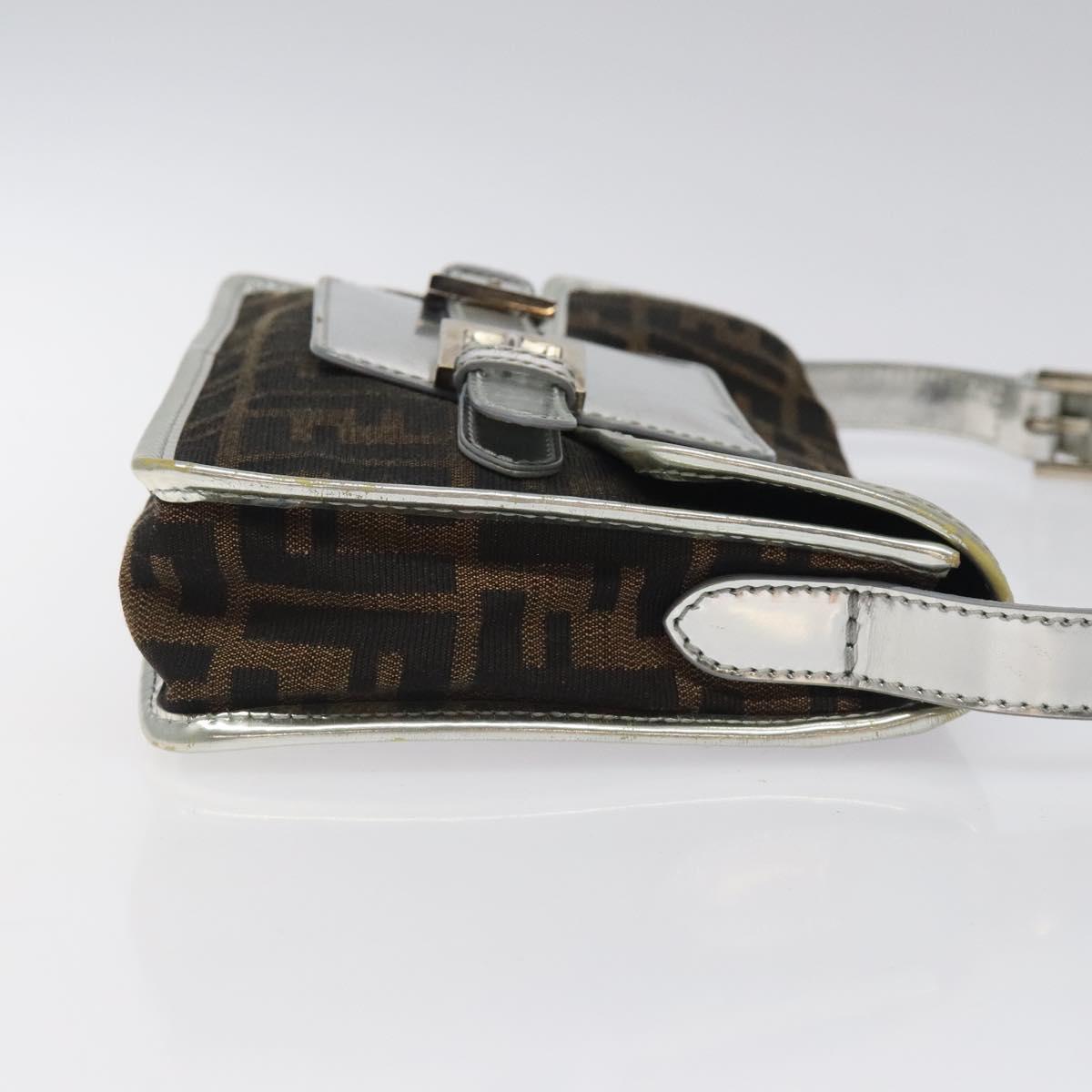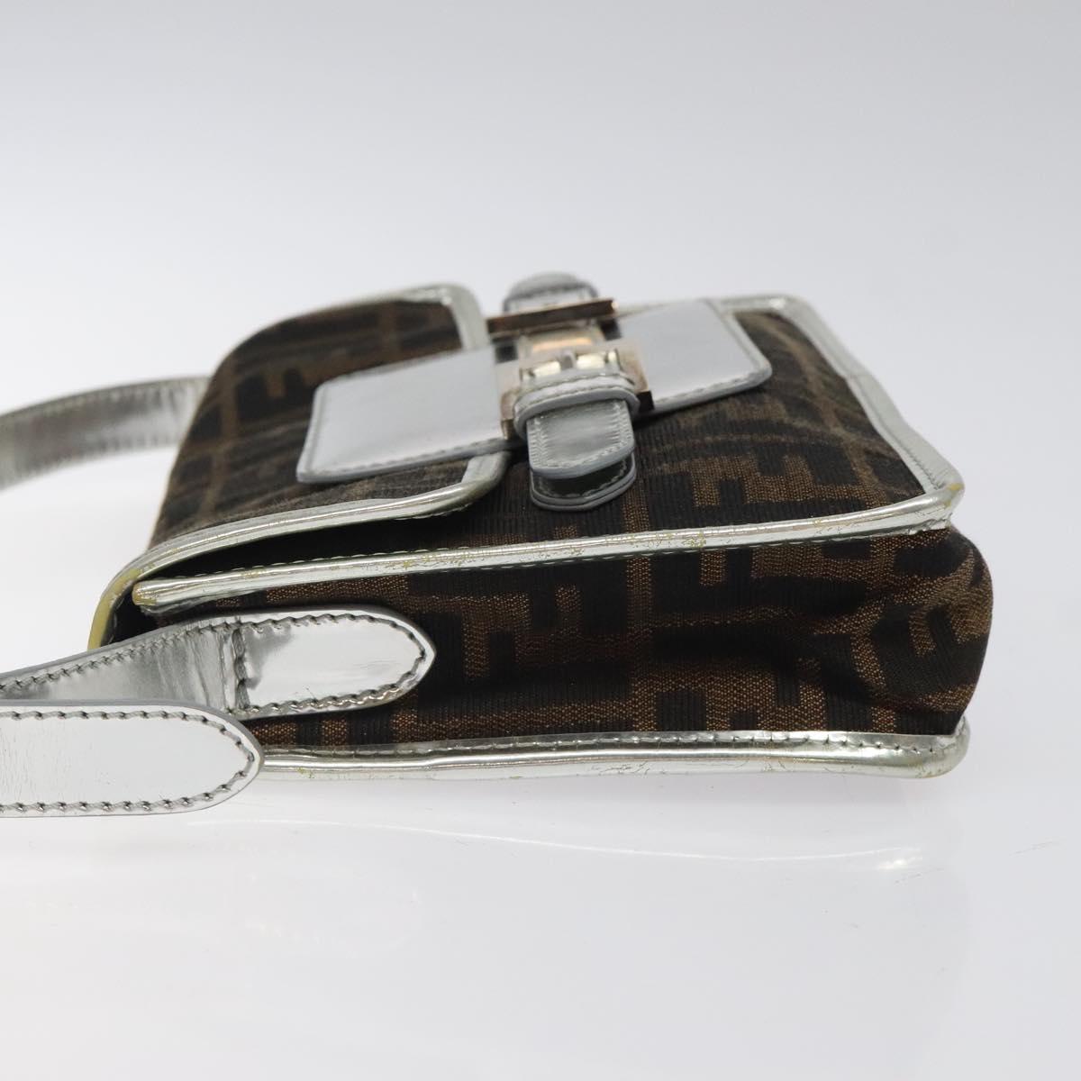 FENDI Zucca Canvas Shoulder Bag Black Brown Auth 118071