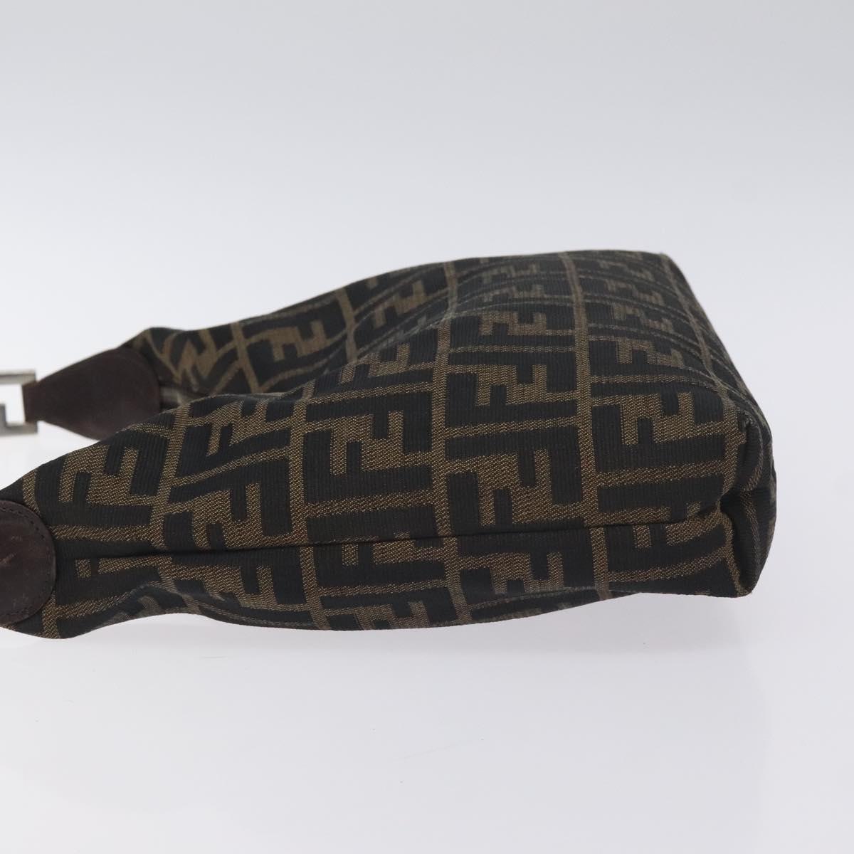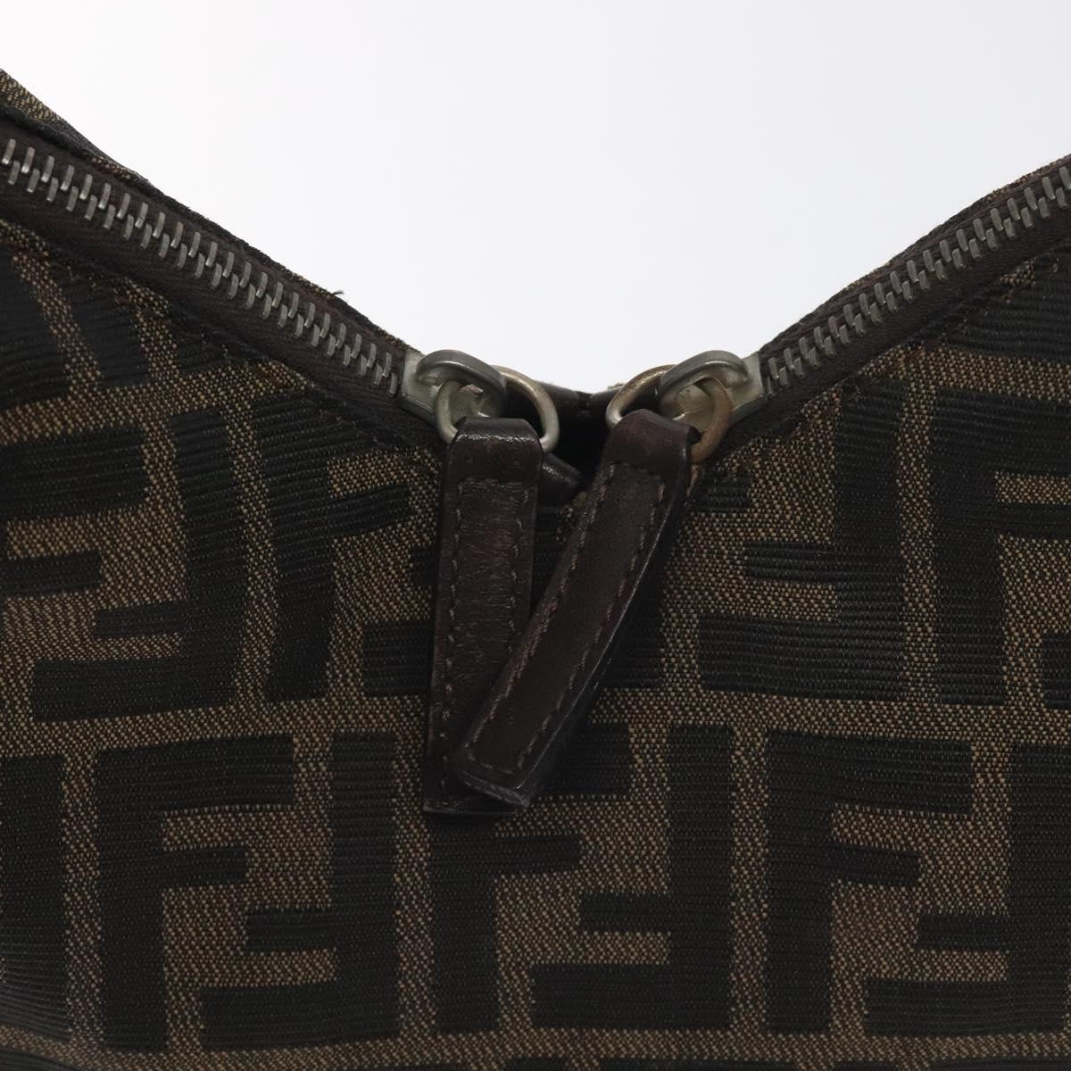 FENDI Zucca Canvas Shoulder Bag Black Brown Auth 129931