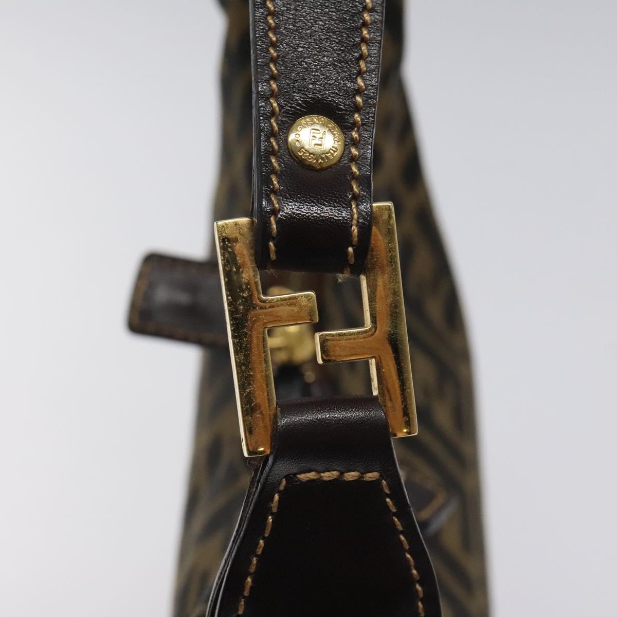 FENDI Zucca Canvas Shoulder Bag Black Brown Auth BD1193