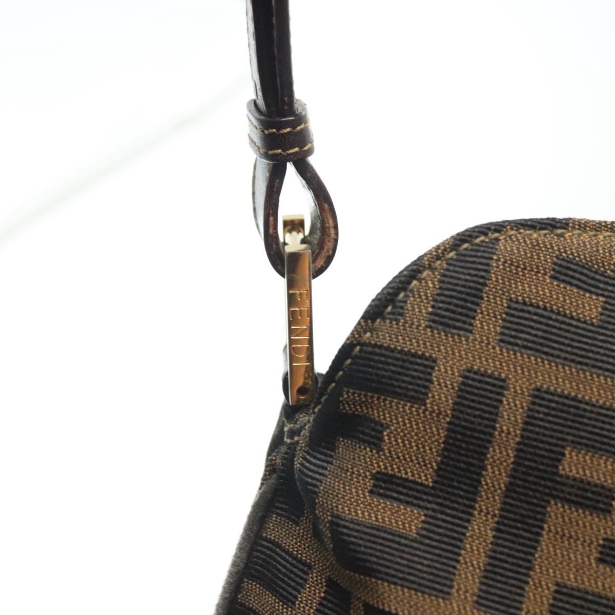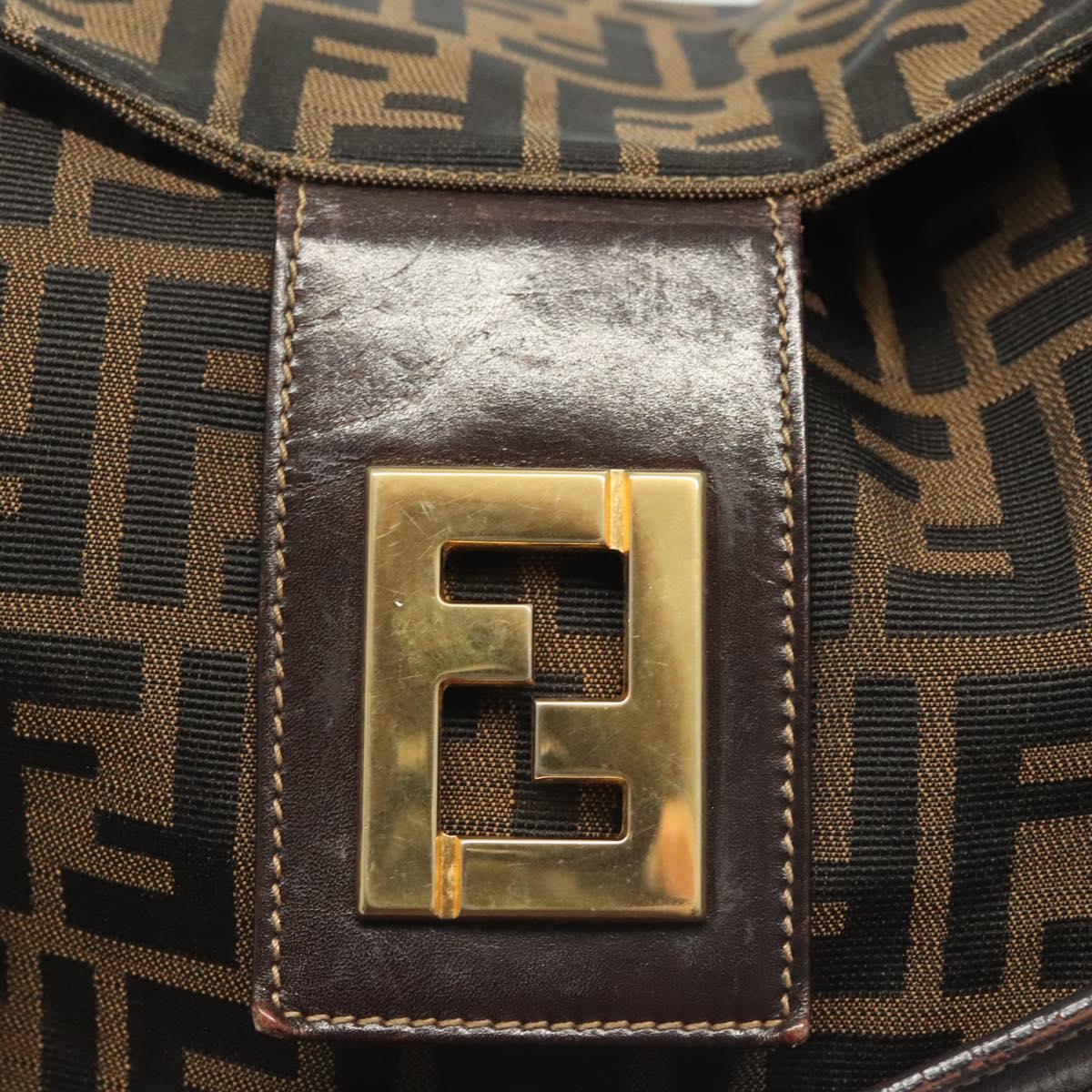 FENDI Zucca Canvas Shoulder Bag Black Brown gold Auth 141407
