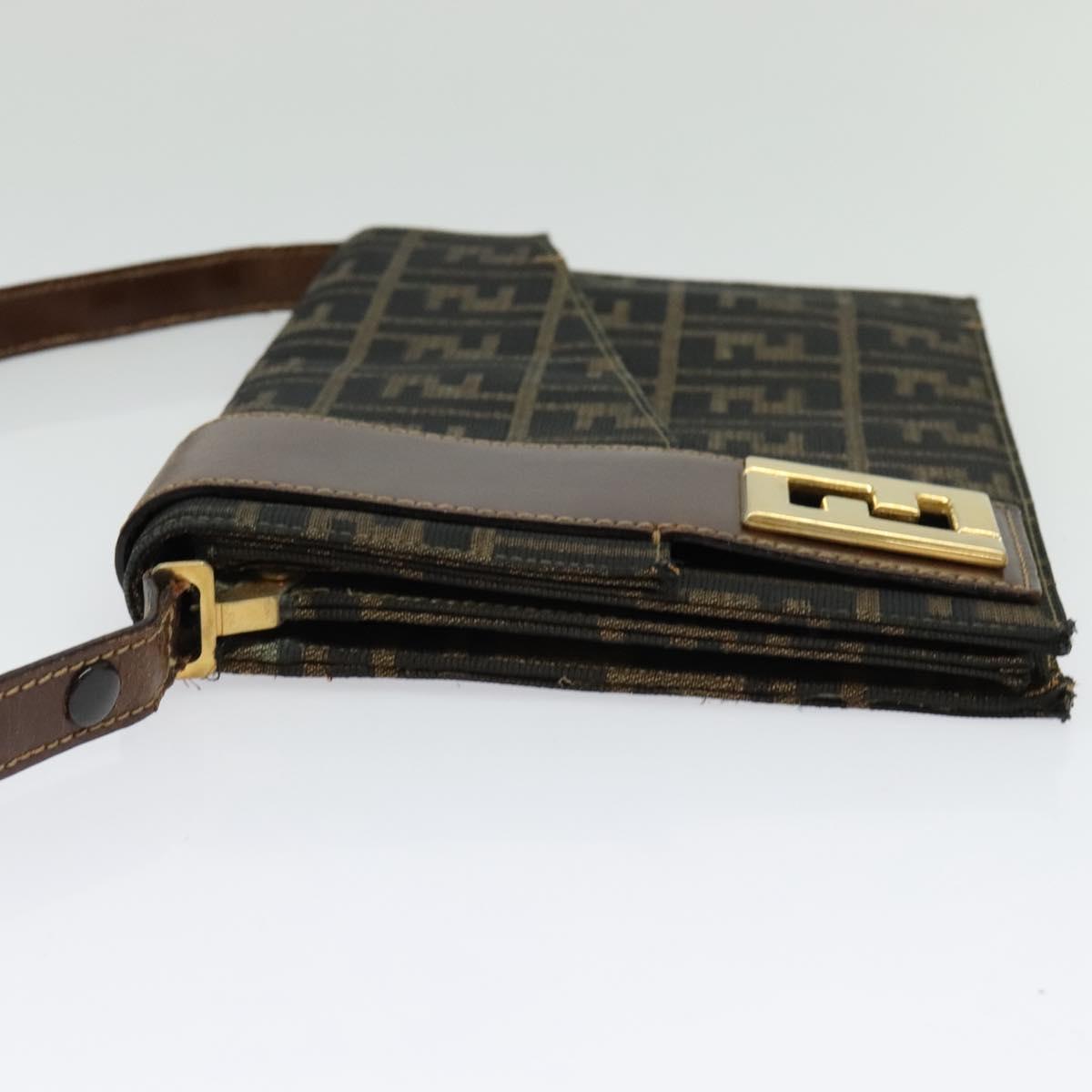 FENDI Zucca Canvas Shoulder Bag Black Brown gold Auth 141634