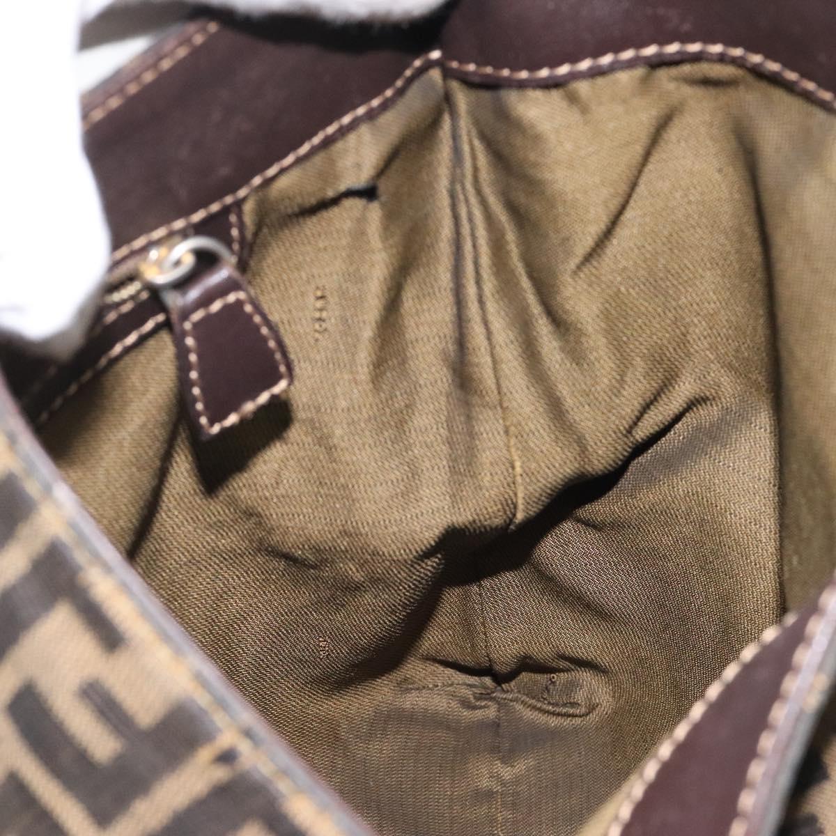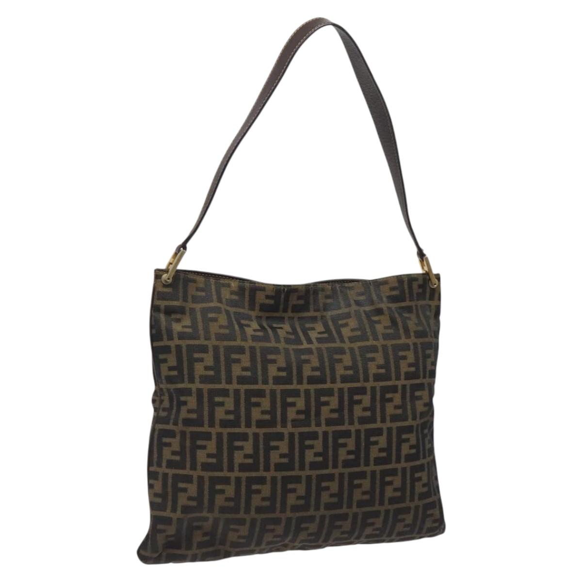 FENDI Zucca Canvas Shoulder Bag Brown Black gold Auth mr1286