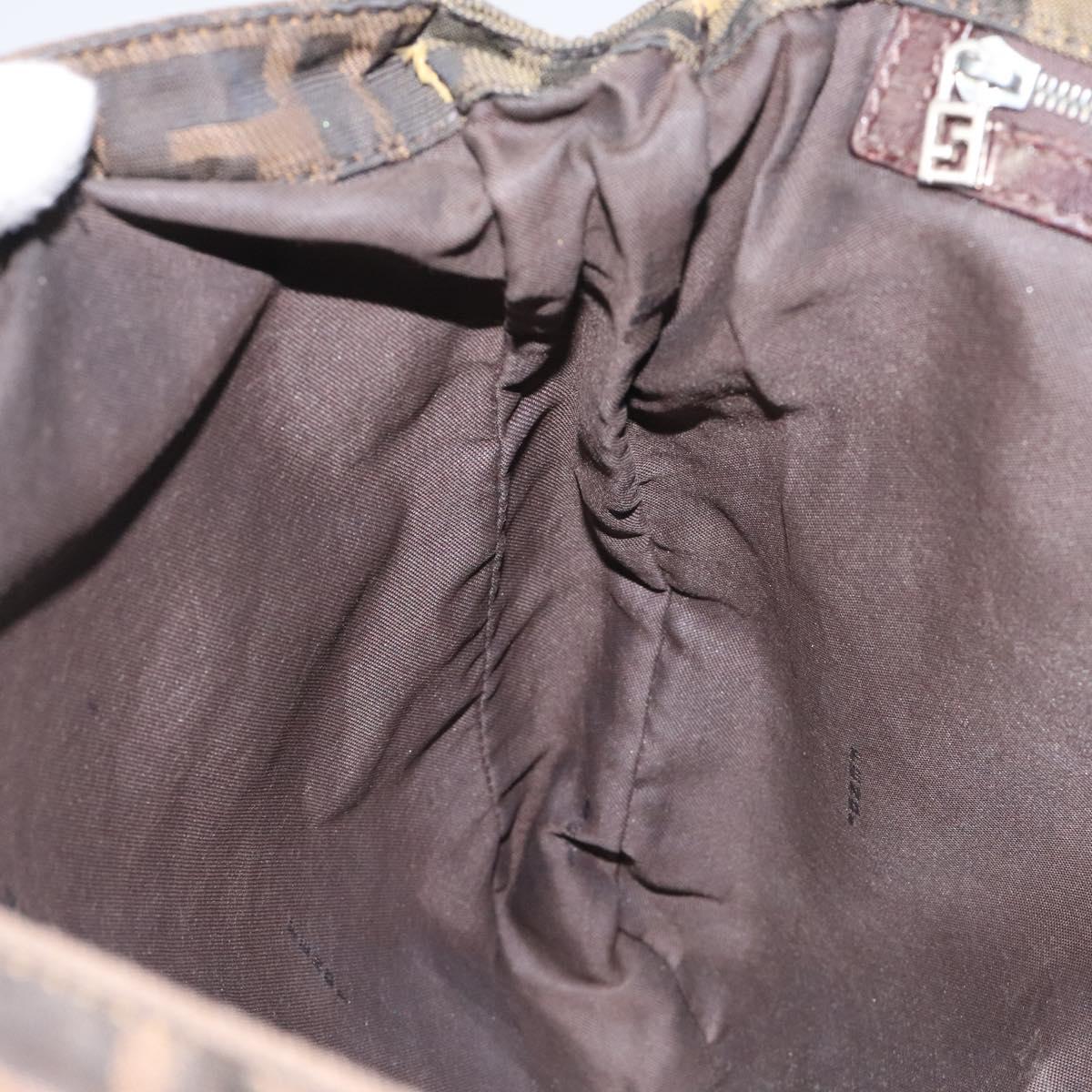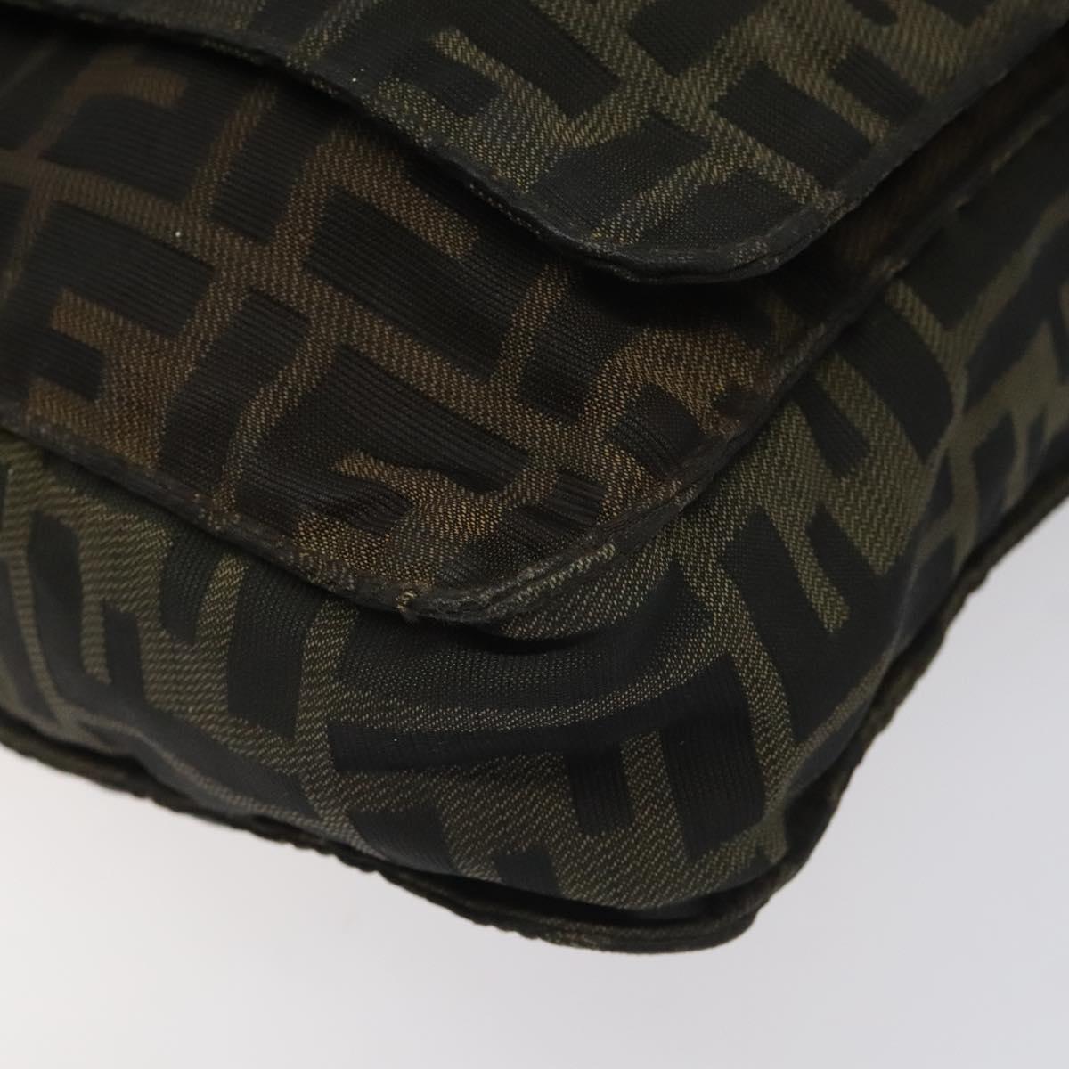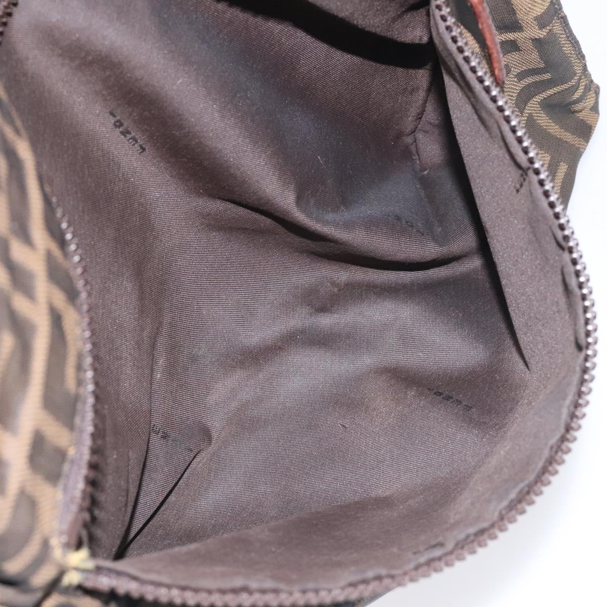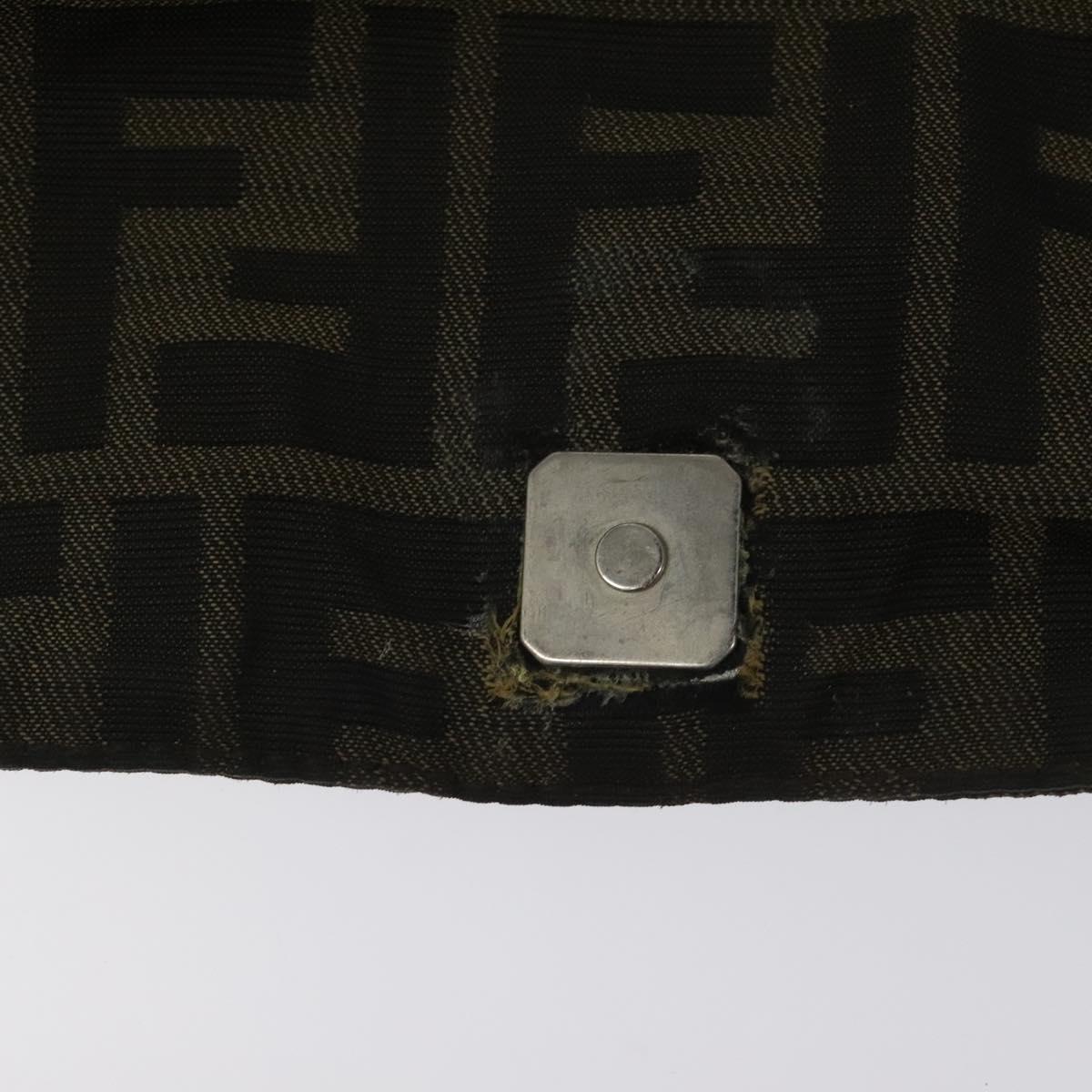 FENDI Zucca Canvas Shoulder Bag Brown Black Silver Auth bs22190
