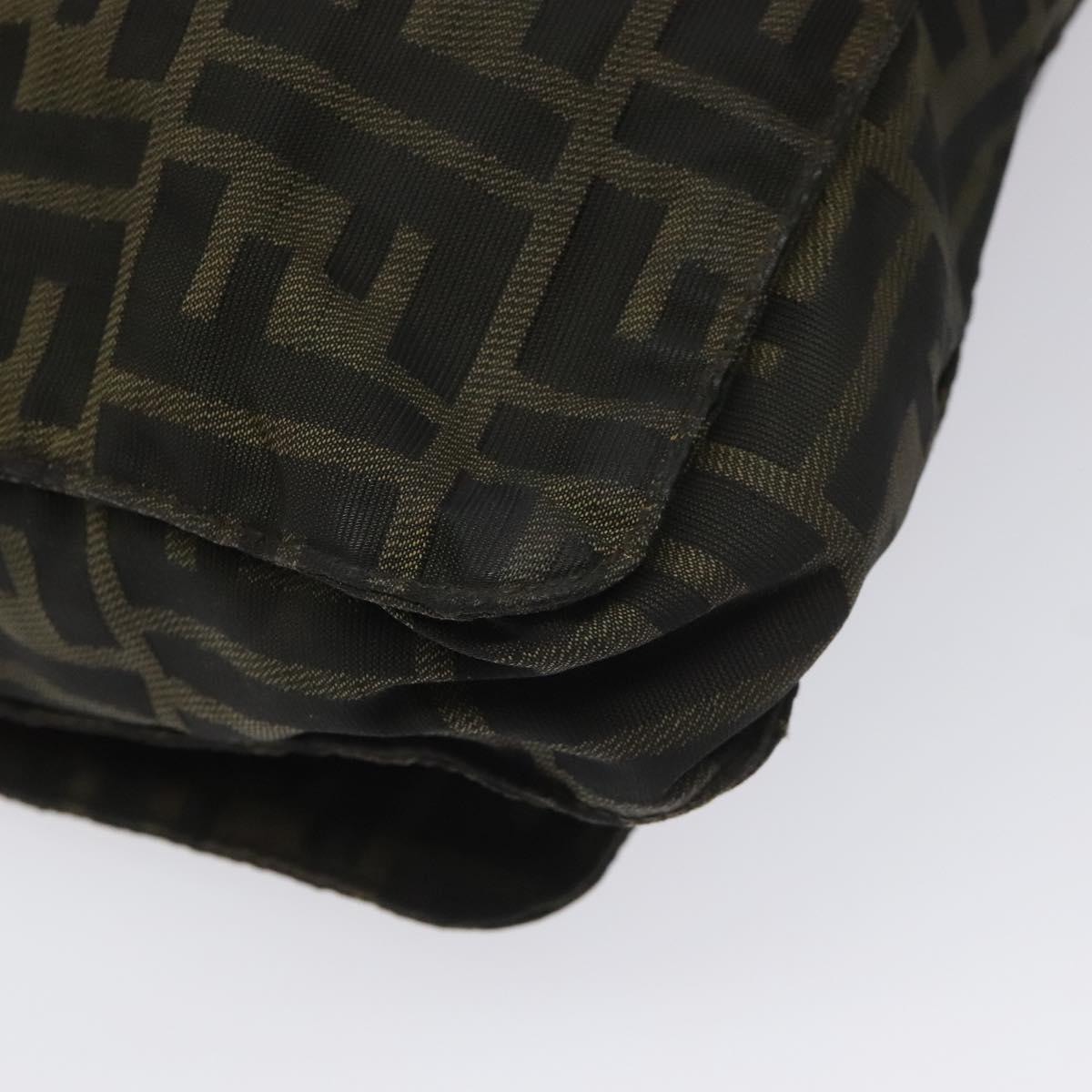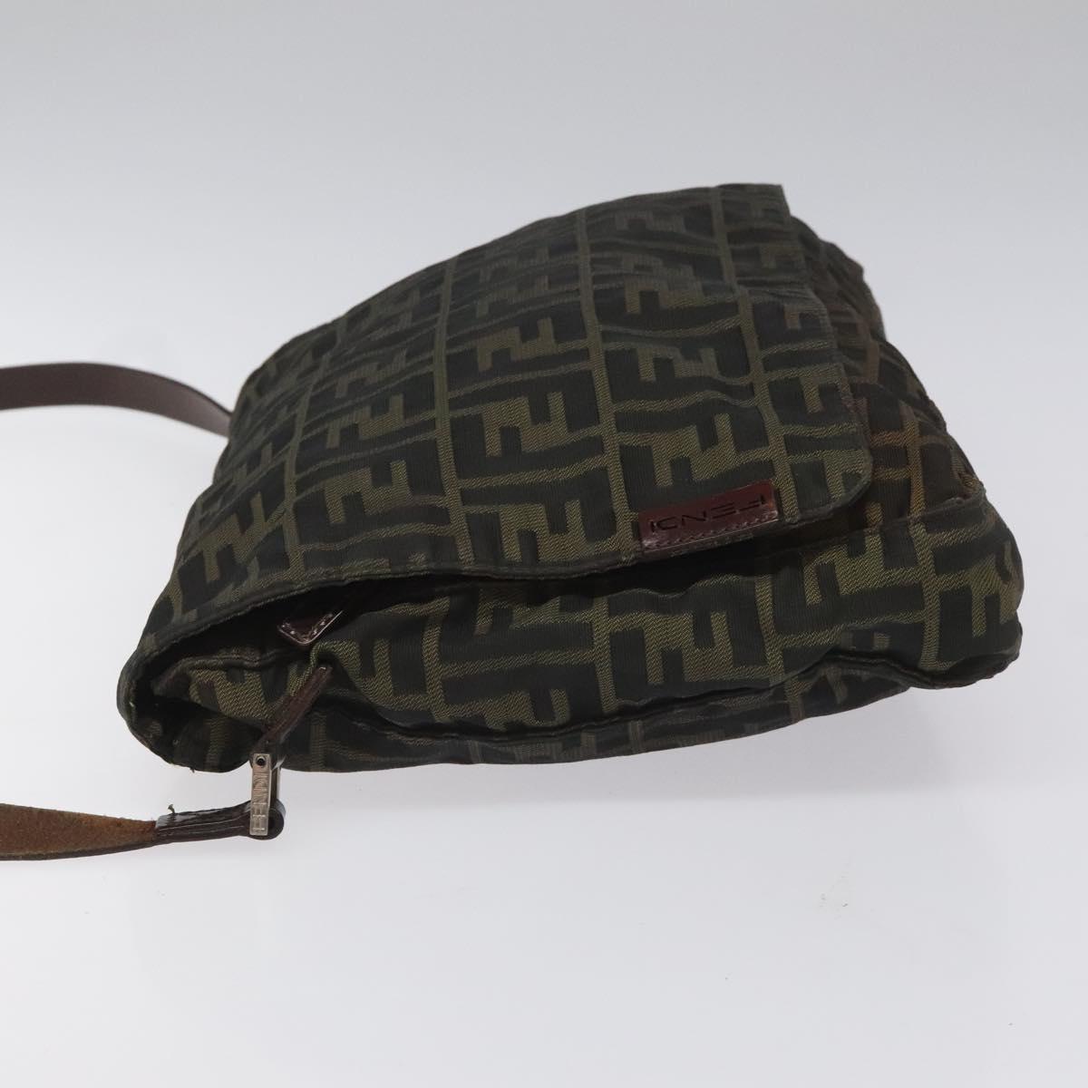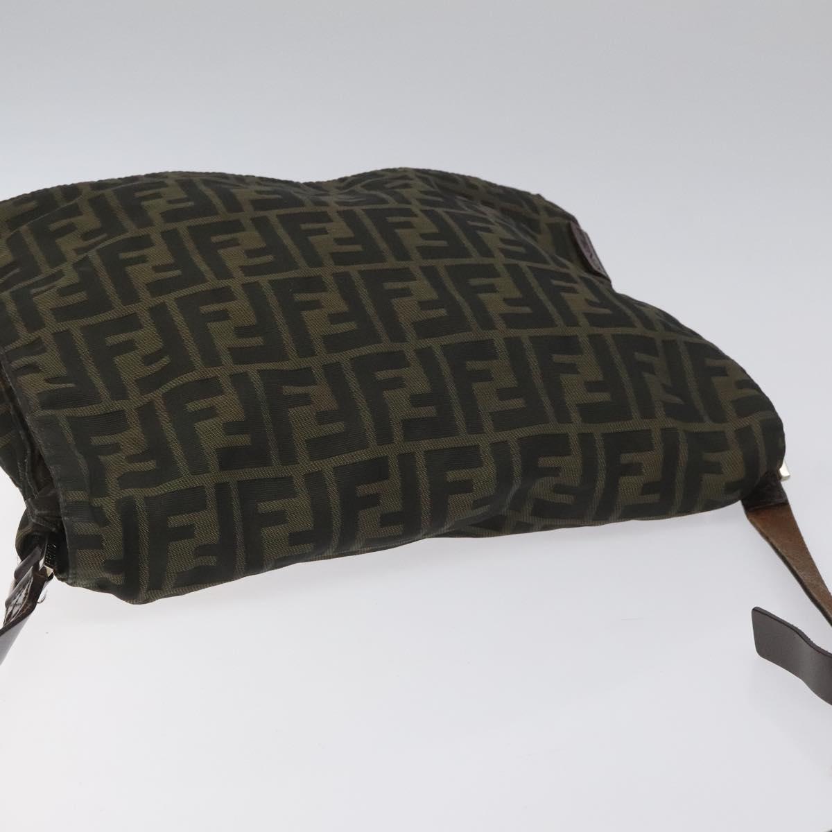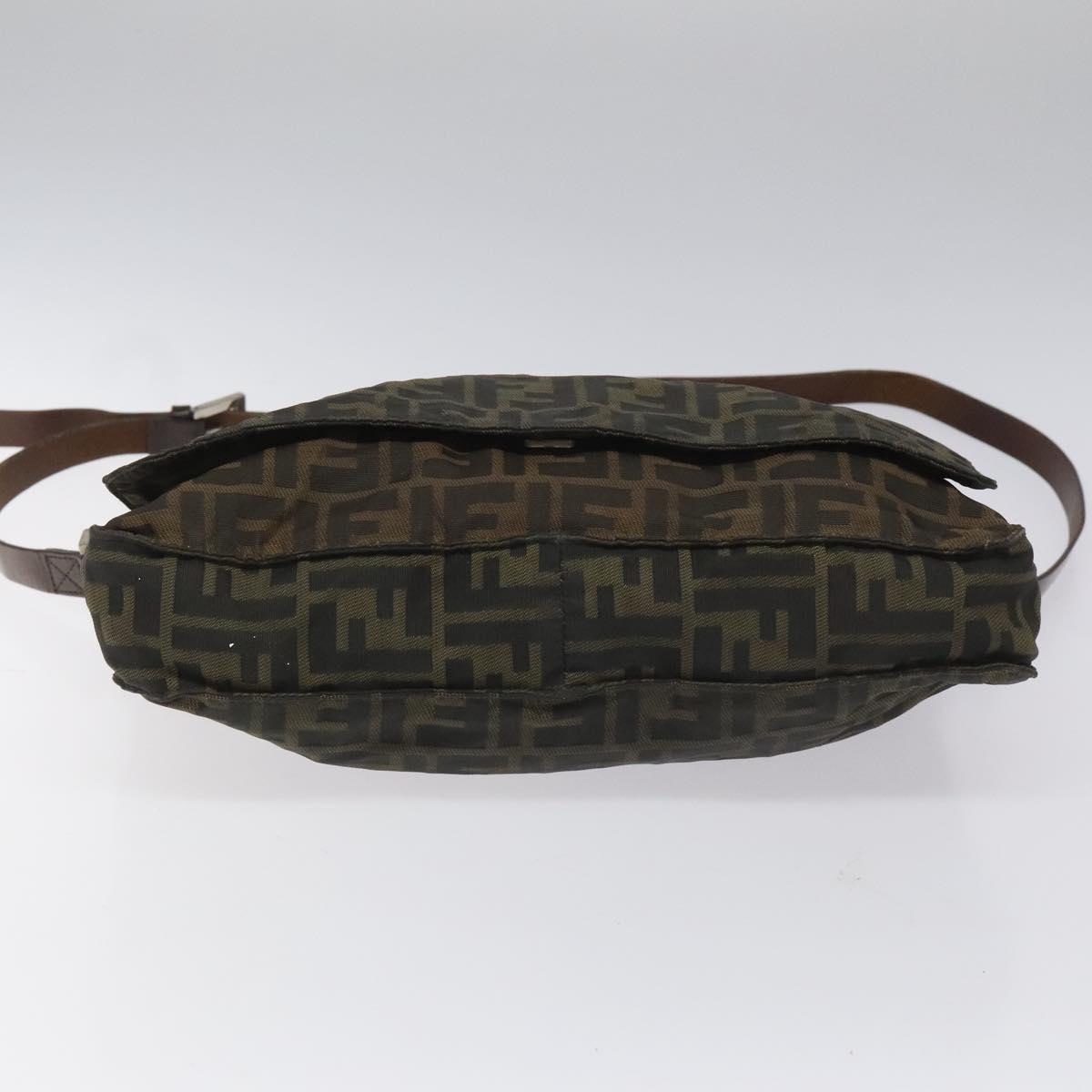 FENDI Zucca Canvas Shoulder Bag Brown Black Silver Auth bs22190