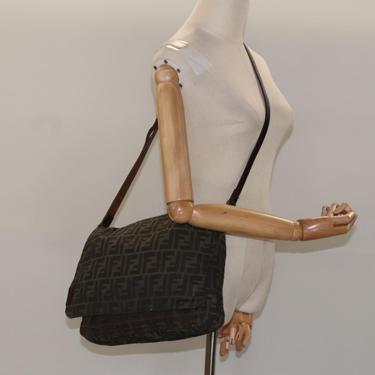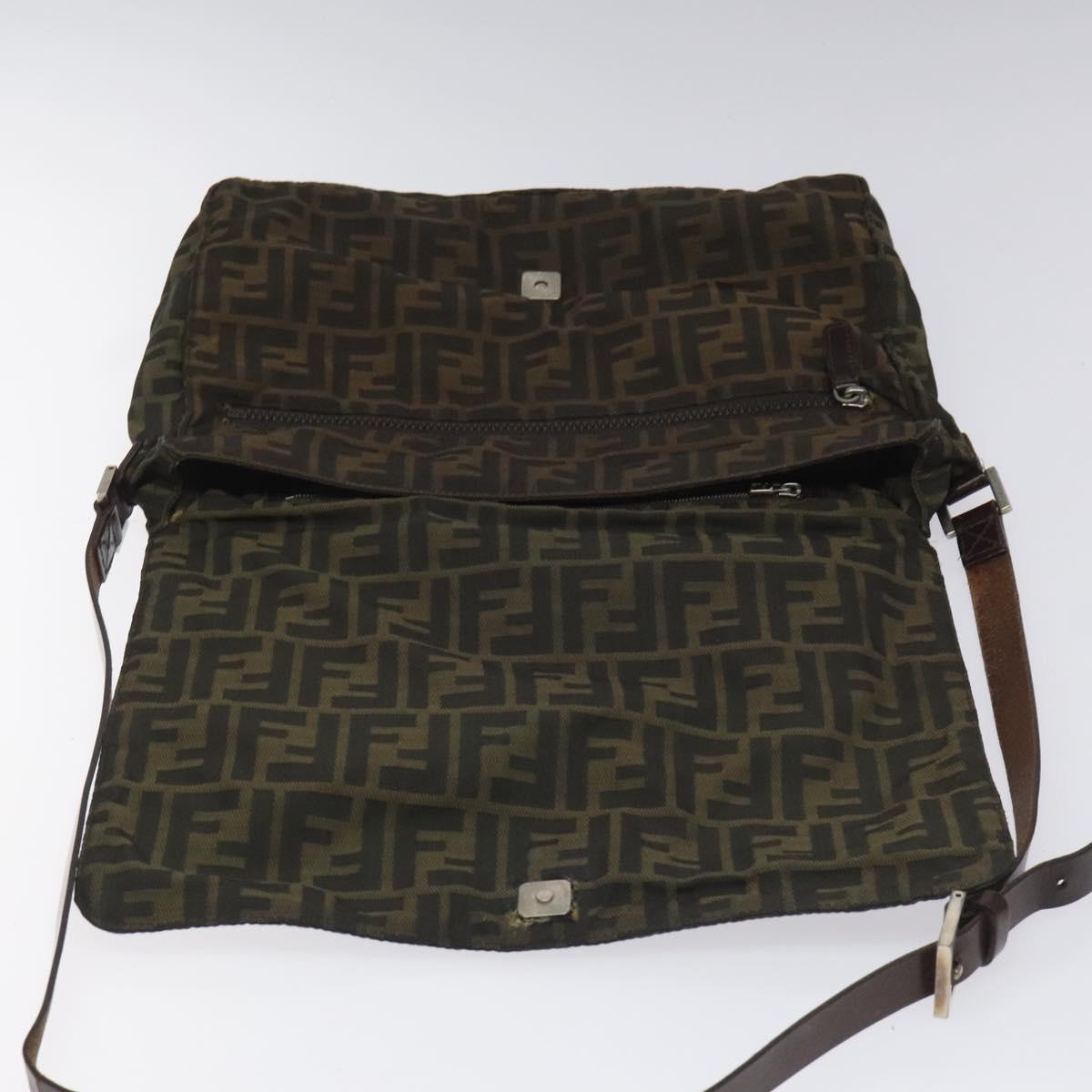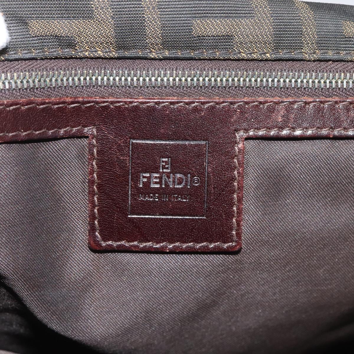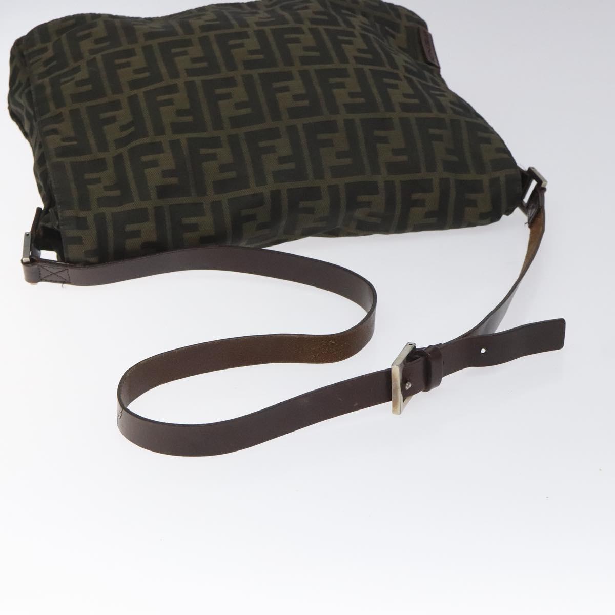 FENDI Zucca Canvas Shoulder Bag Brown Black Silver Auth bs22190
