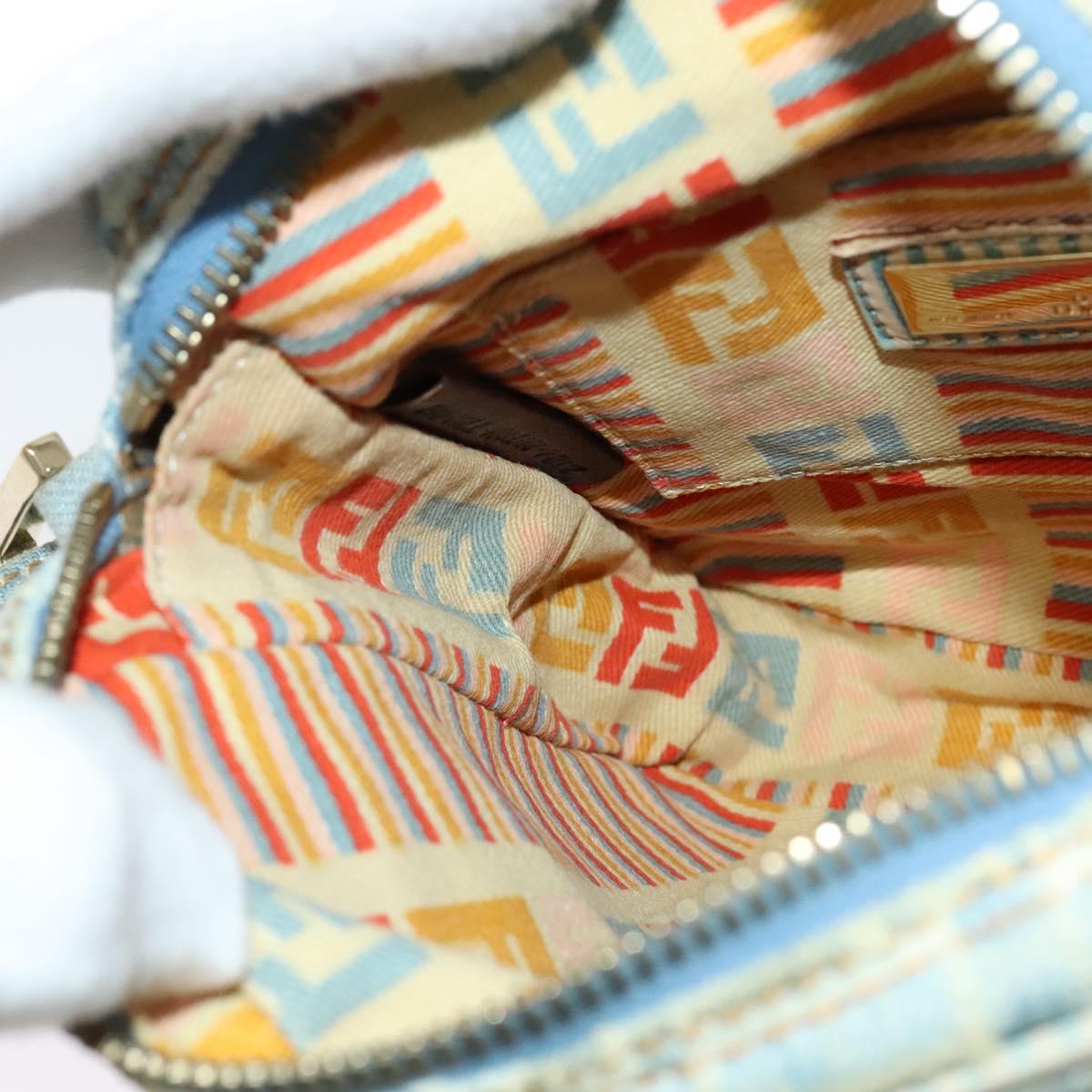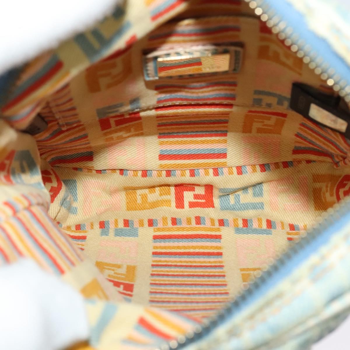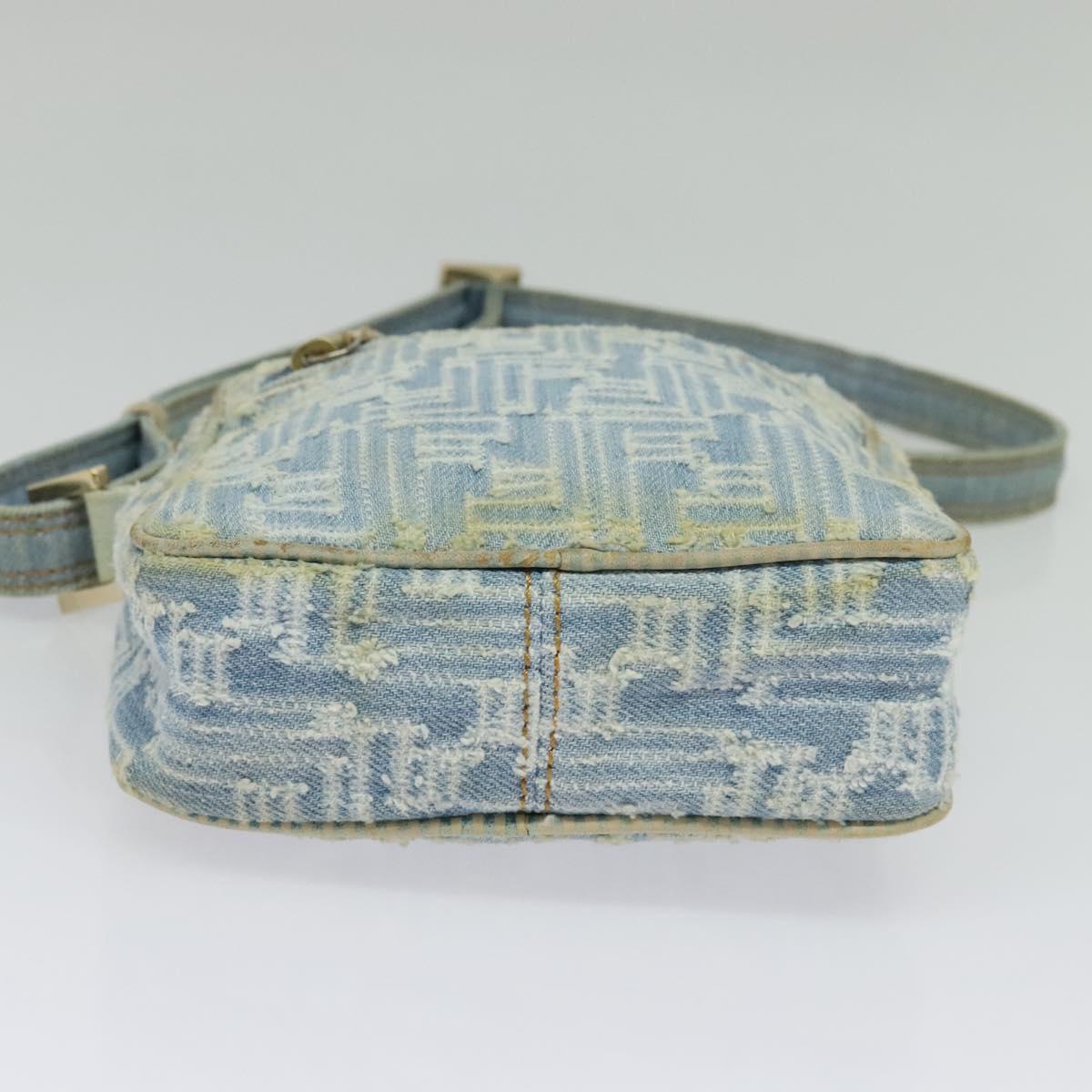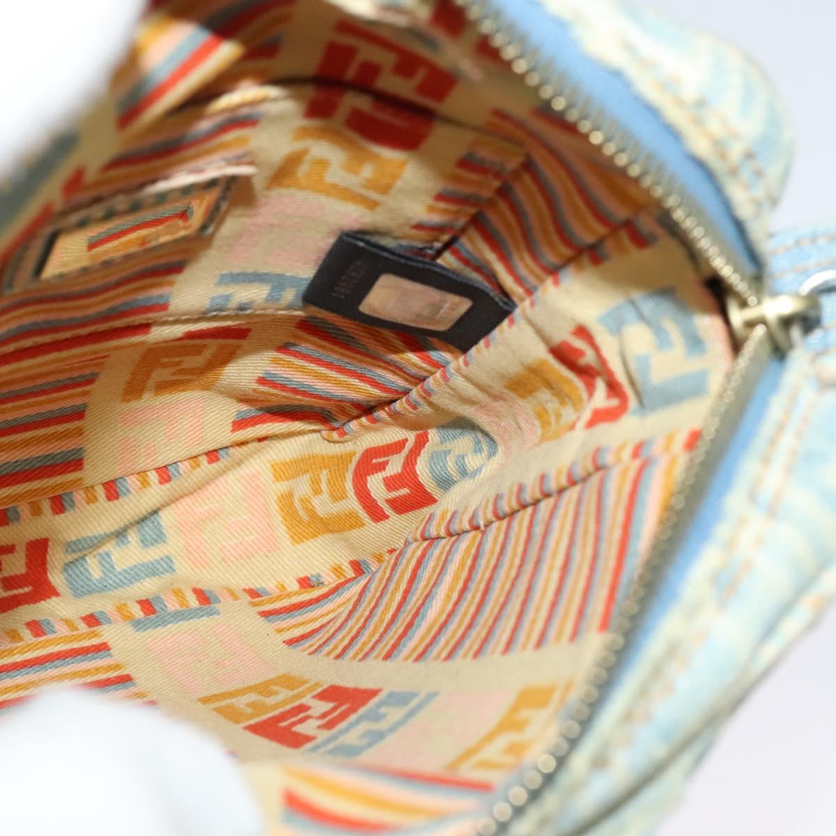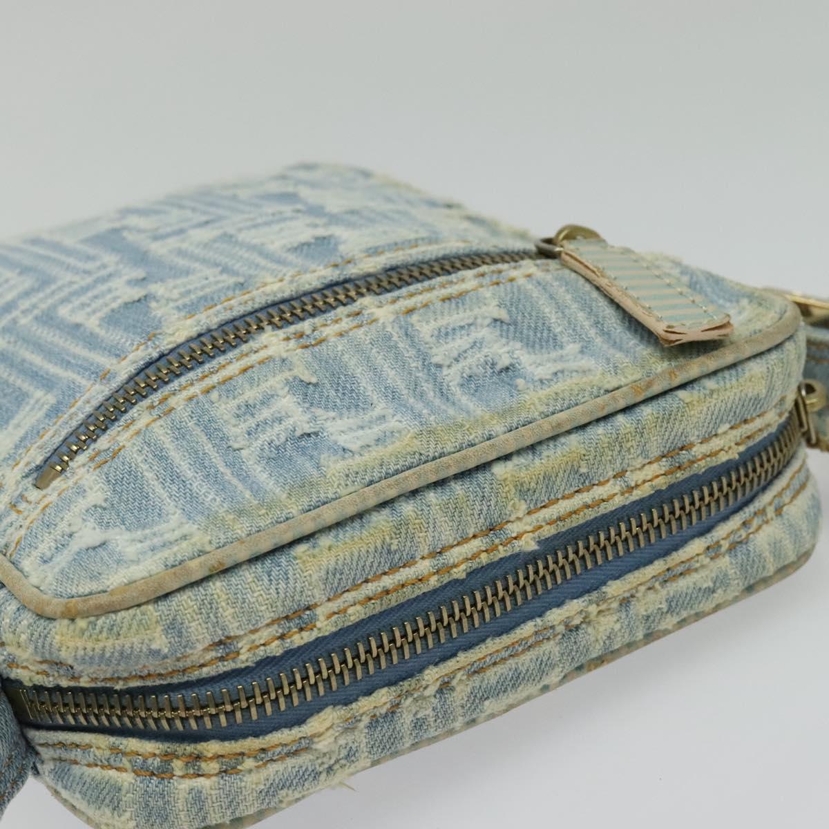FENDI Zucca Canvas Shoulder Bag Denim Light Blue Gold Auth 140722