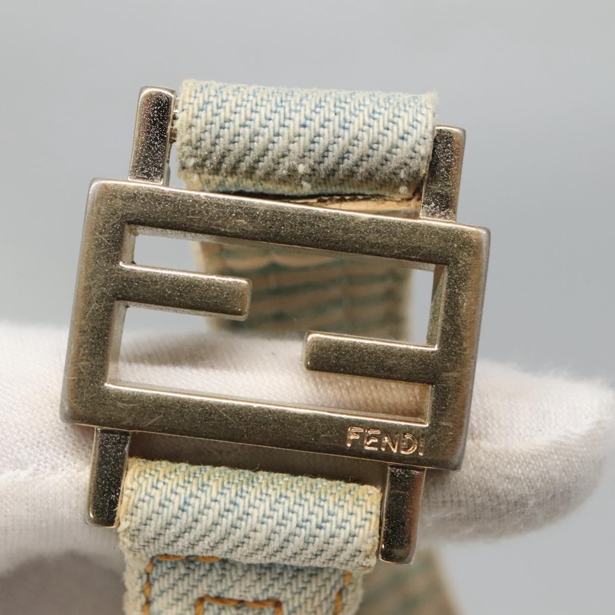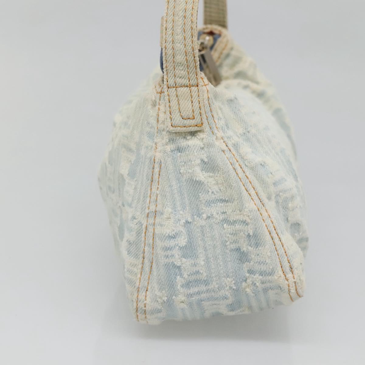 FENDI Zucca Canvas Shoulder Bag Denim Light Blue Gold Auth 140817