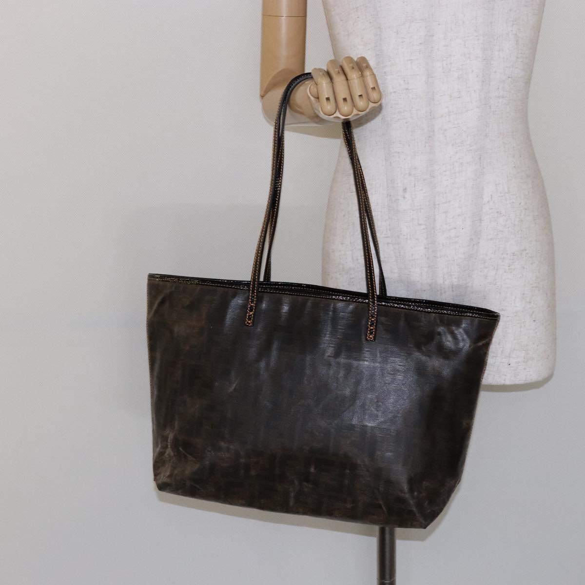 FENDI Zucca Canvas Tote Bag Black Brown Auth 141633