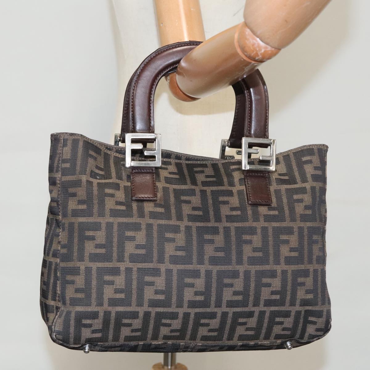 FENDI Zucca Canvas Tote Bag Brown Black Auth mr764