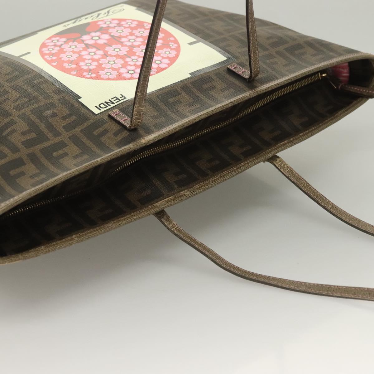 FENDI Zucca Canvas Tote Bag PVC Brown Black Auth BA3024