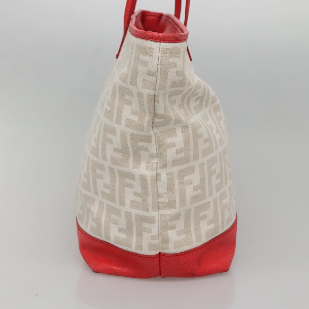 FENDI Zucca Canvas Tote Bag PVC White Gold Auth 142189