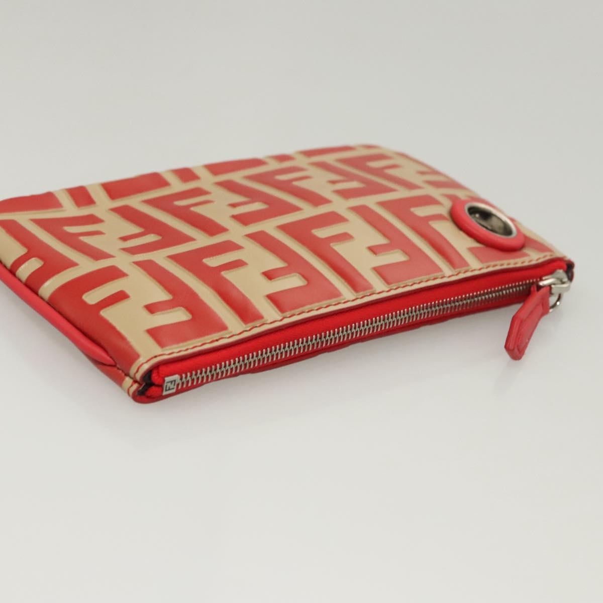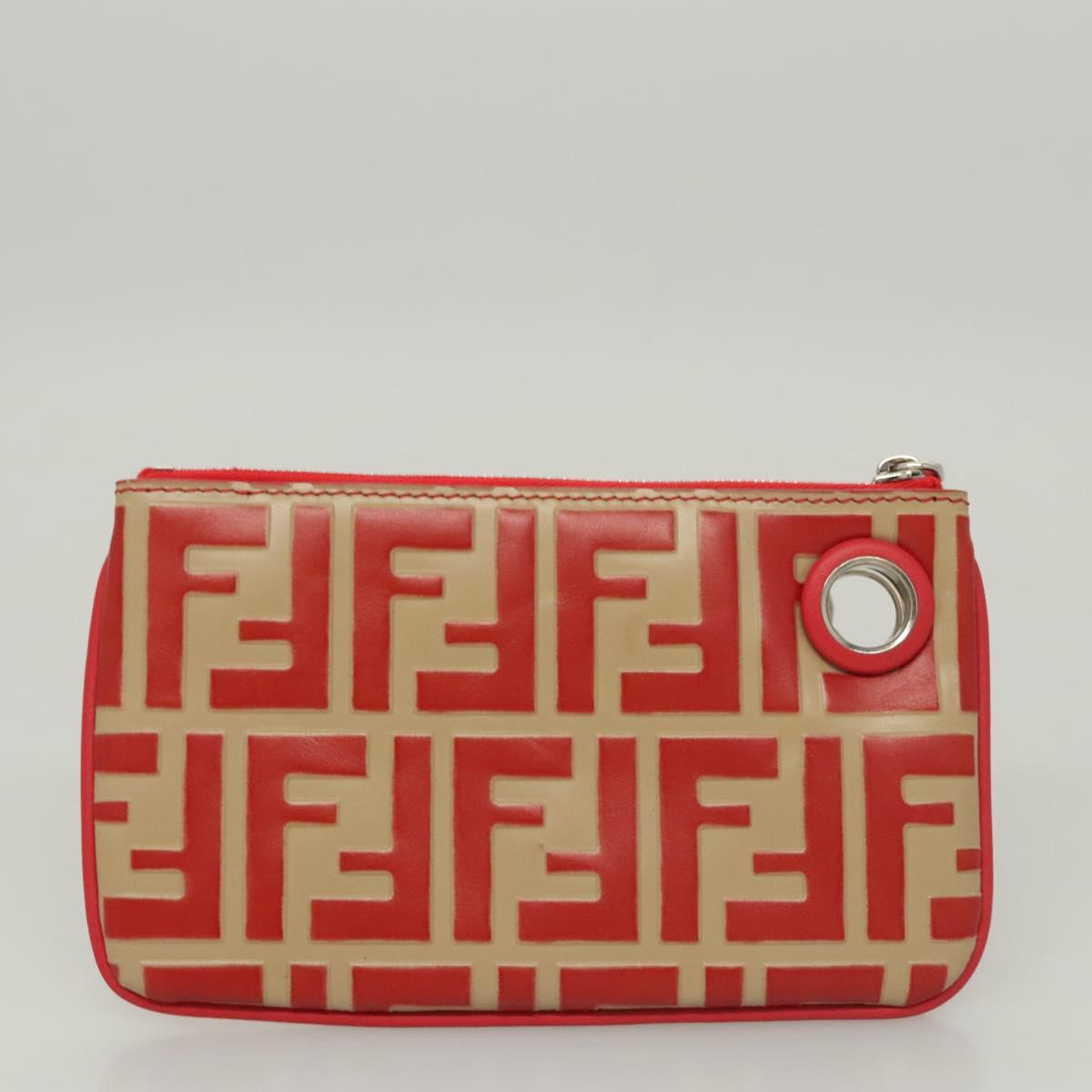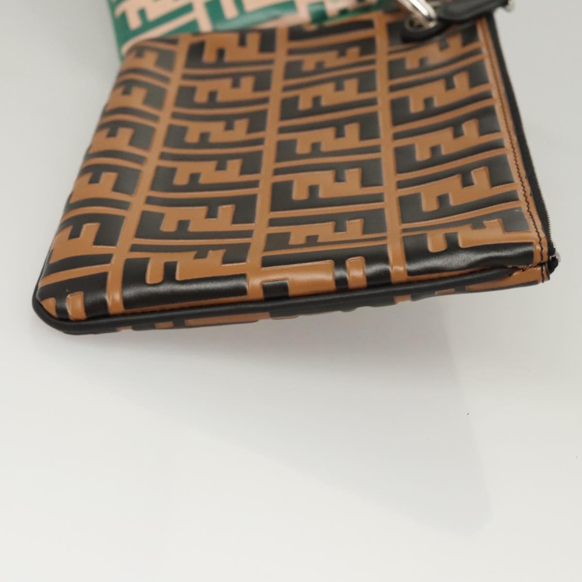 FENDI Zucca Canvas Triplet Pouch Black Brown Red Auth ac3770