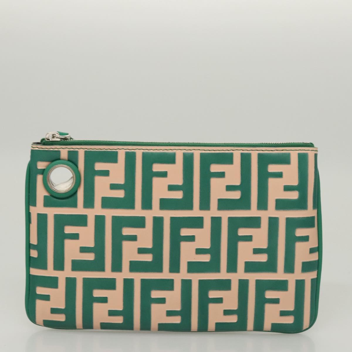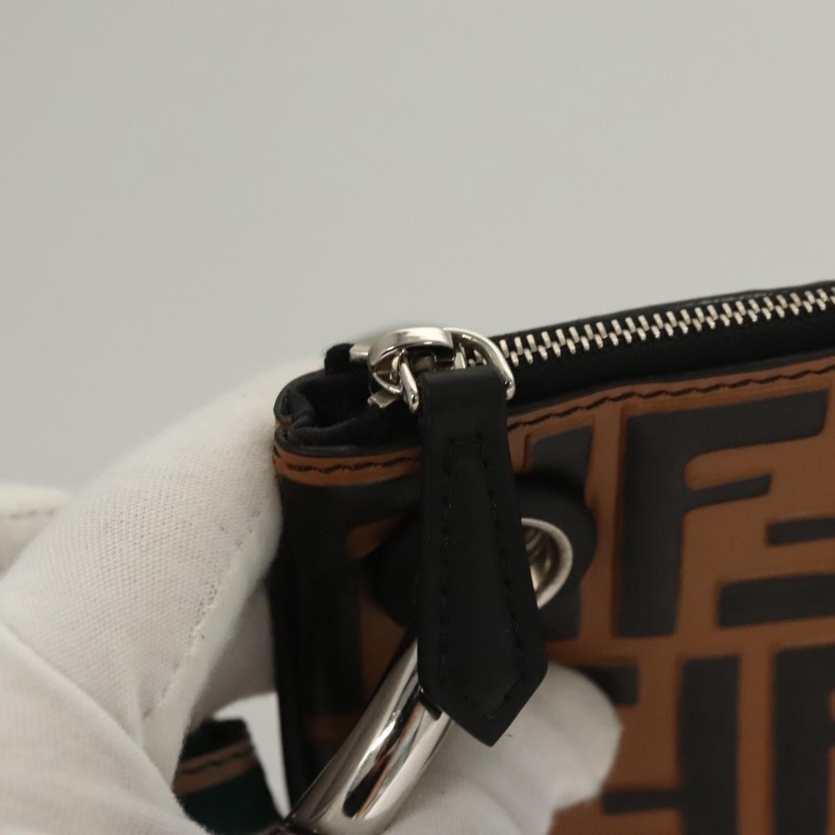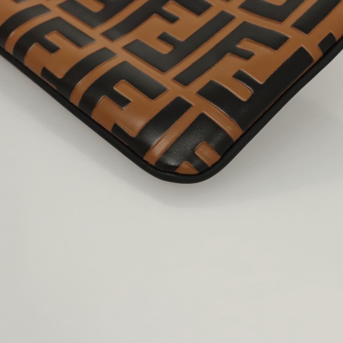FENDI Zucca Canvas Triplet Pouch Black Brown Red Auth ac3770